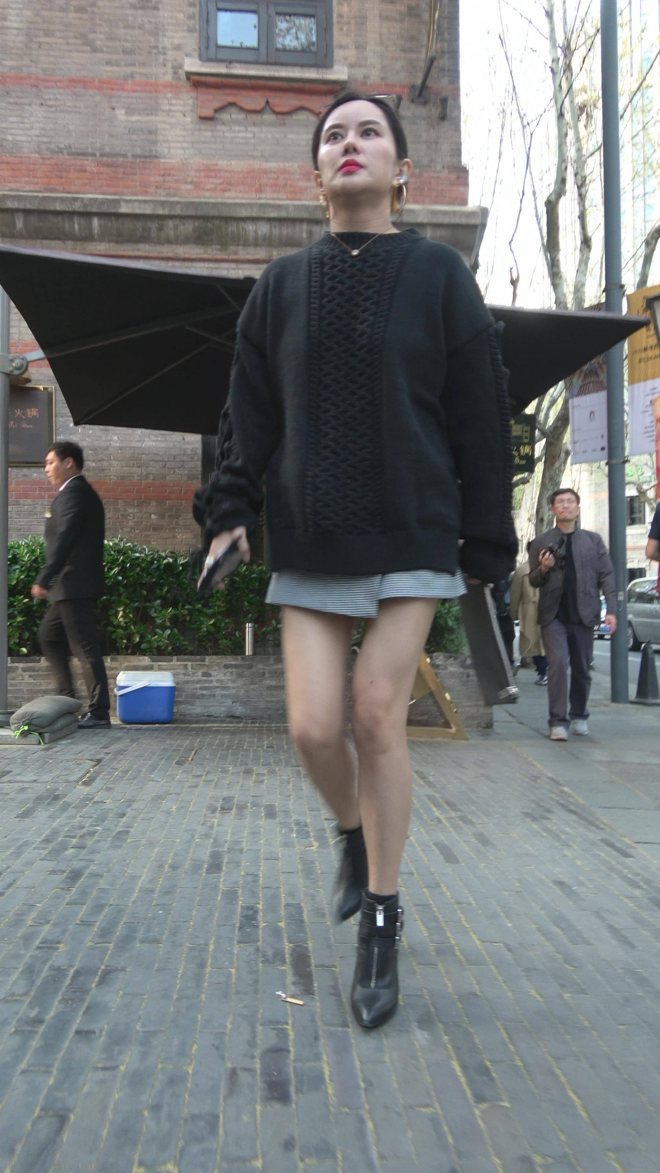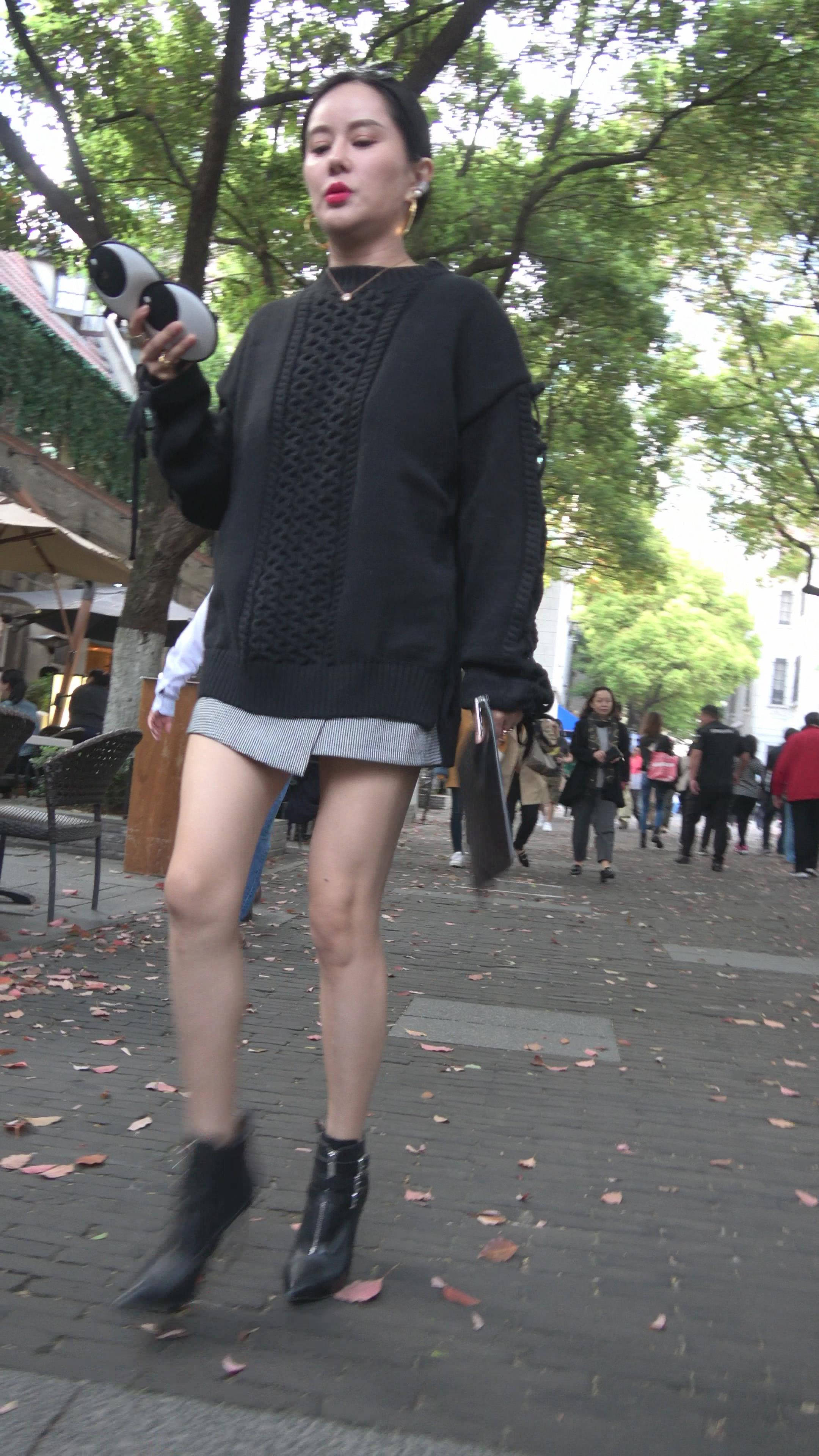 | 4K 黑衣街拍美腿女神手机壳很有个性 编号7785 |