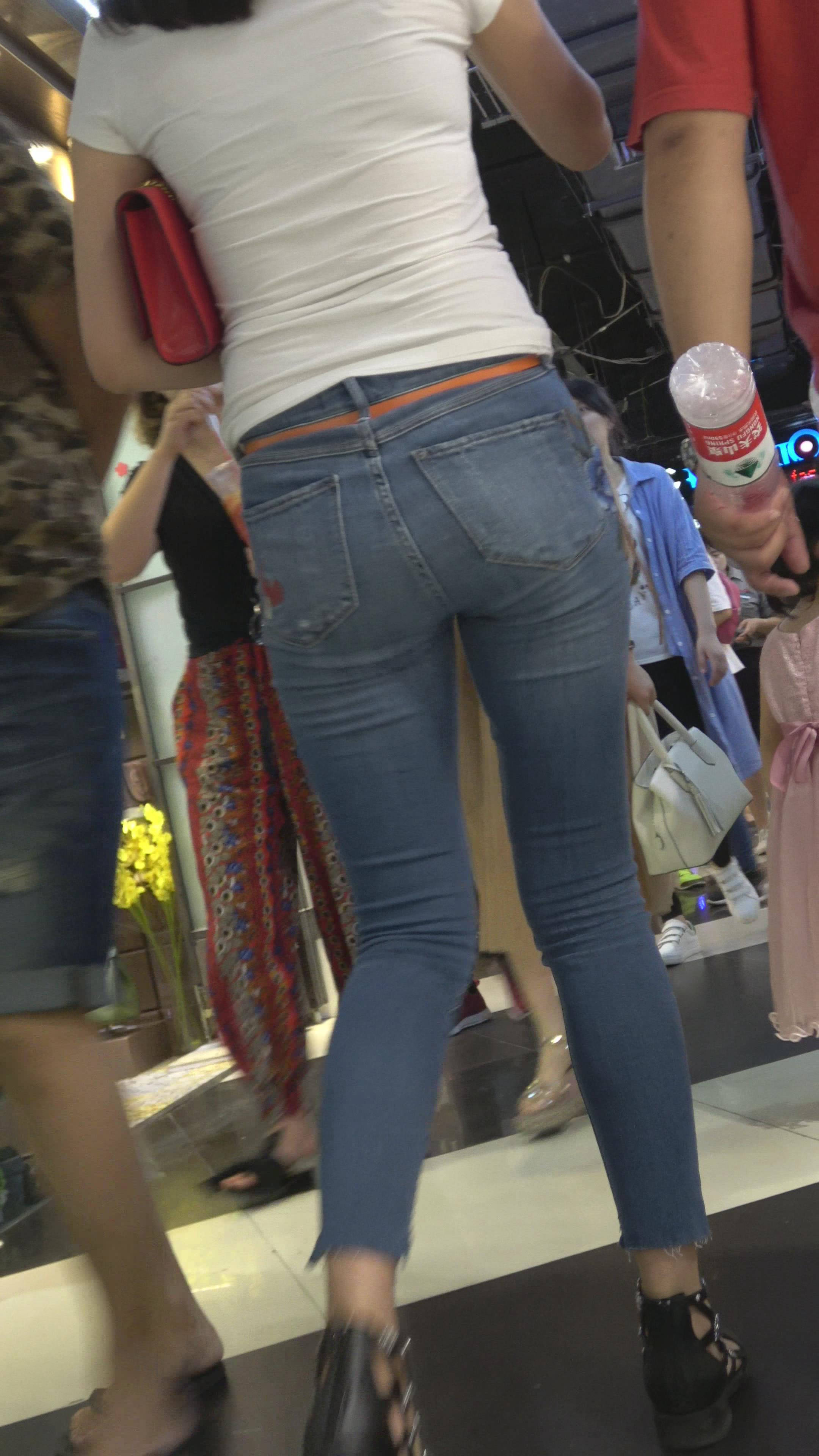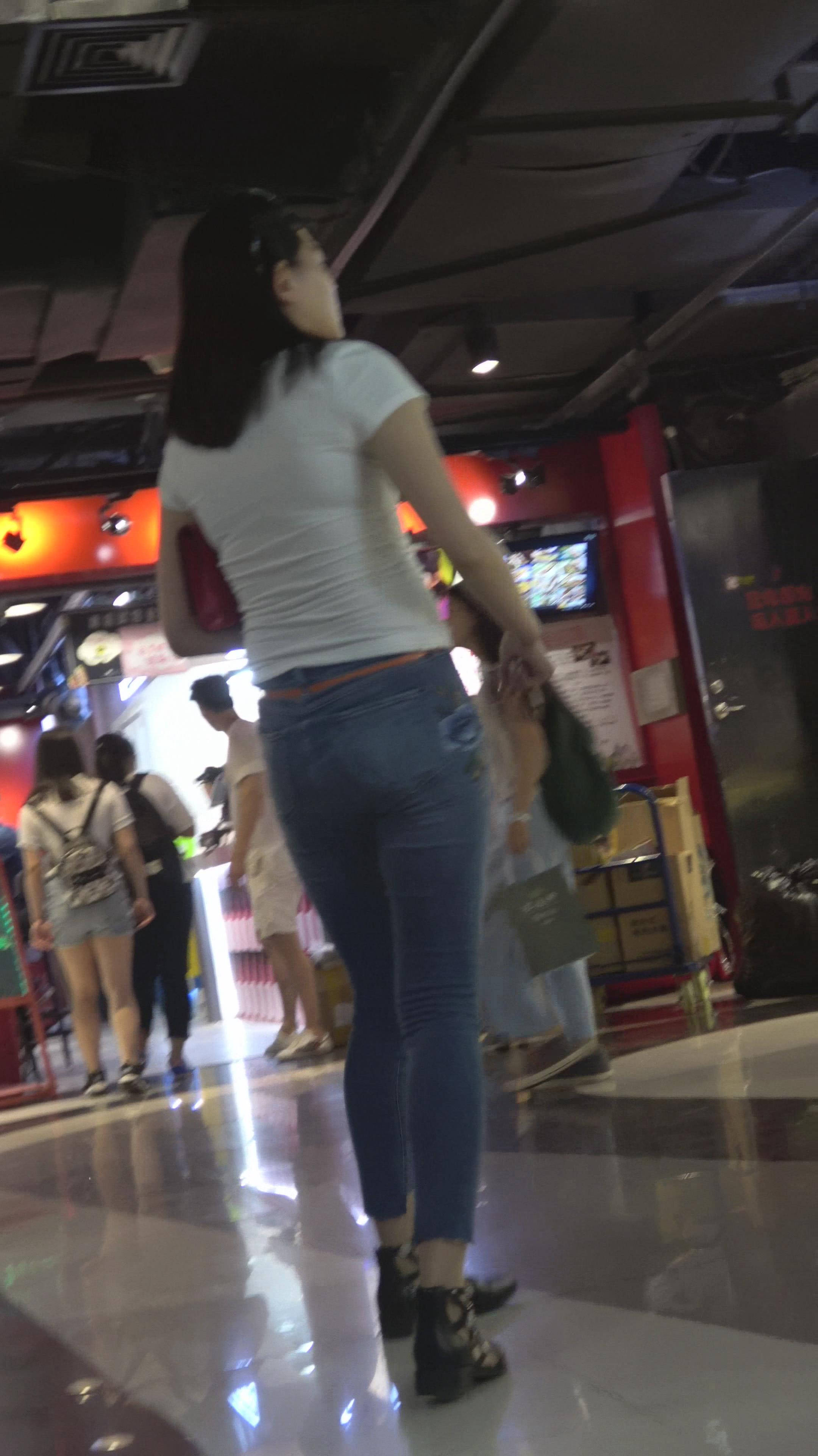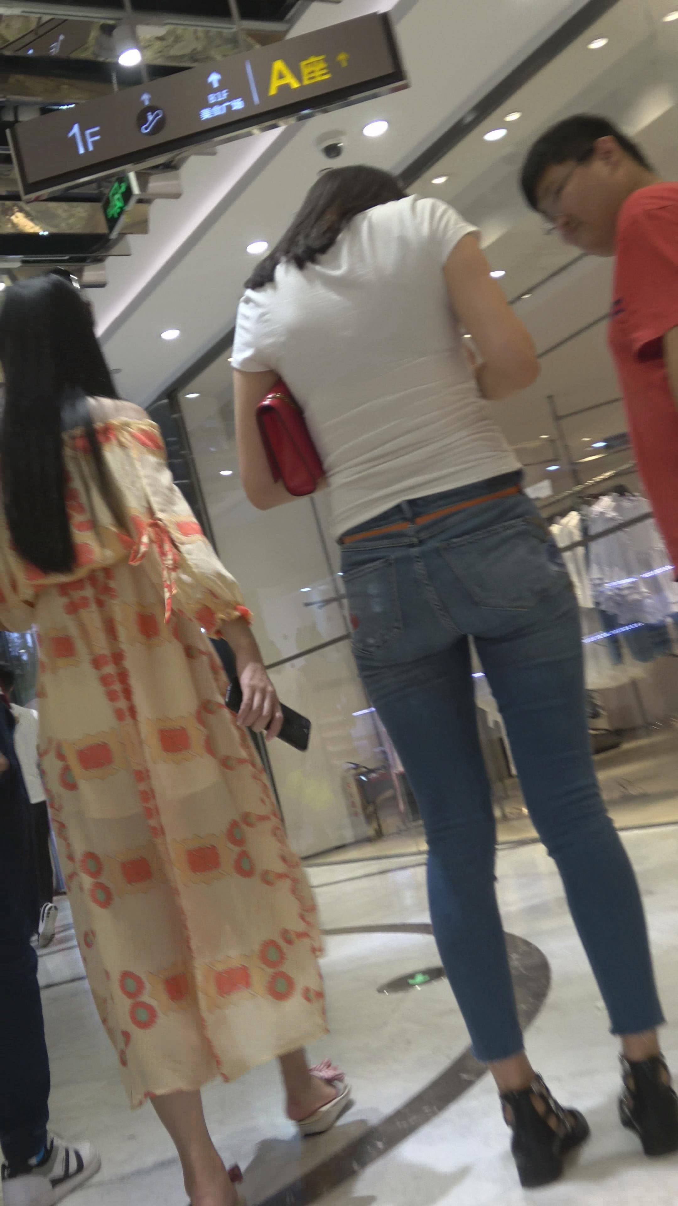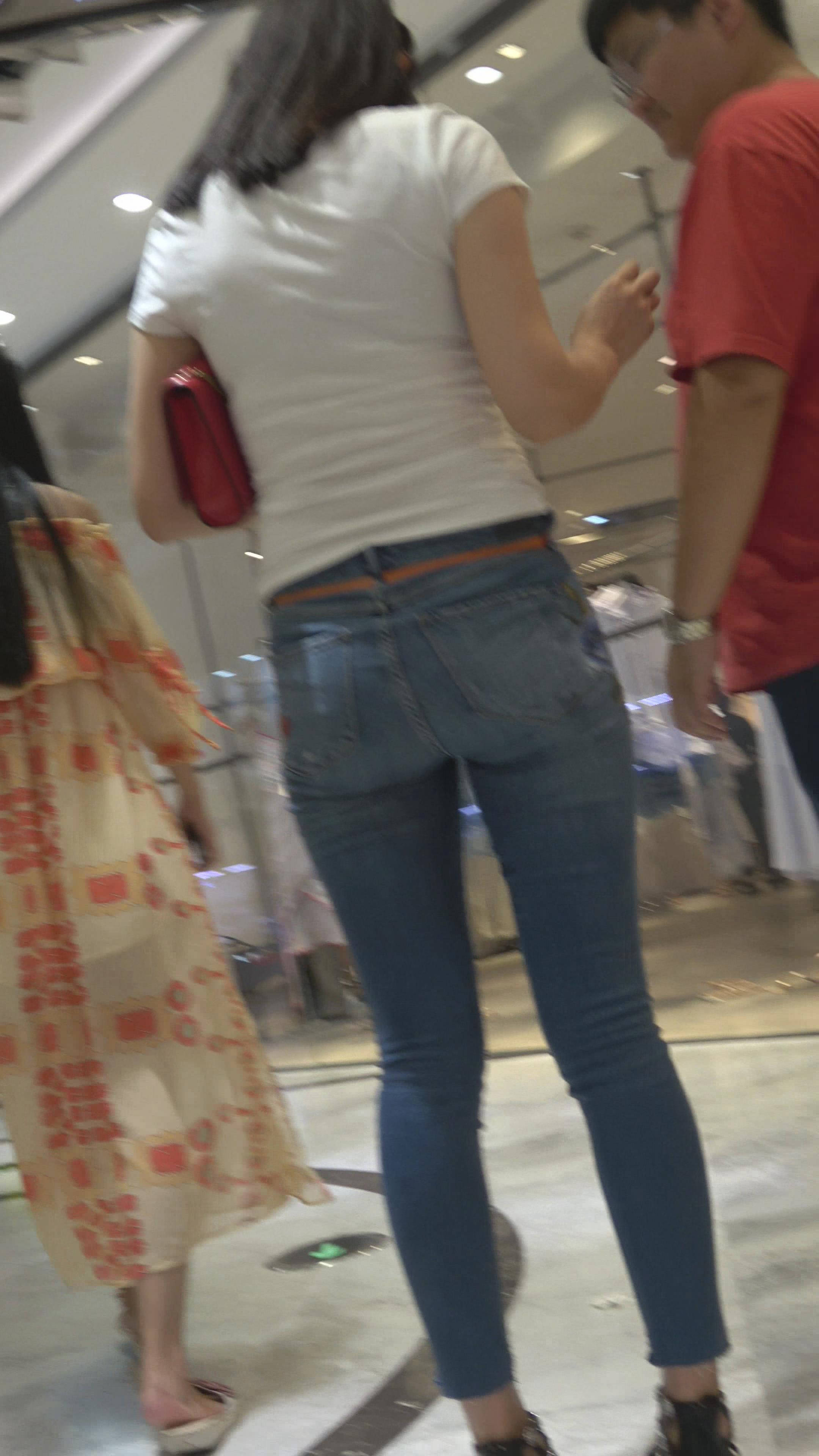 | 4K - 白色T恤牛仔裤街拍紧身美女 编号7824 |