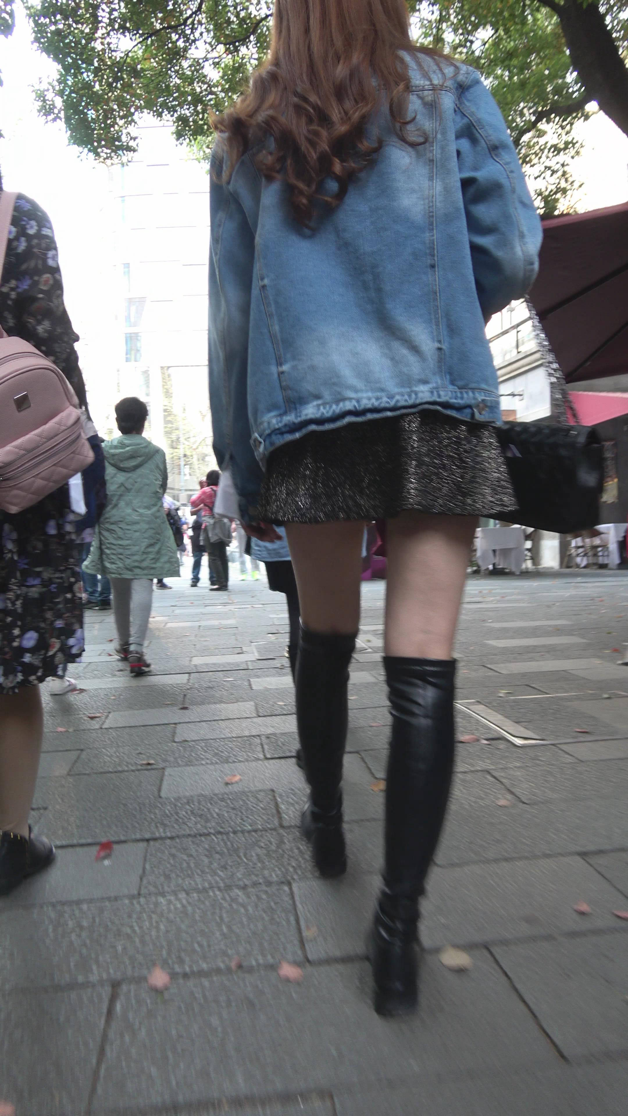 | 4K - 街拍美腿长筒靴牛仔外套气质美女 编号7857 |