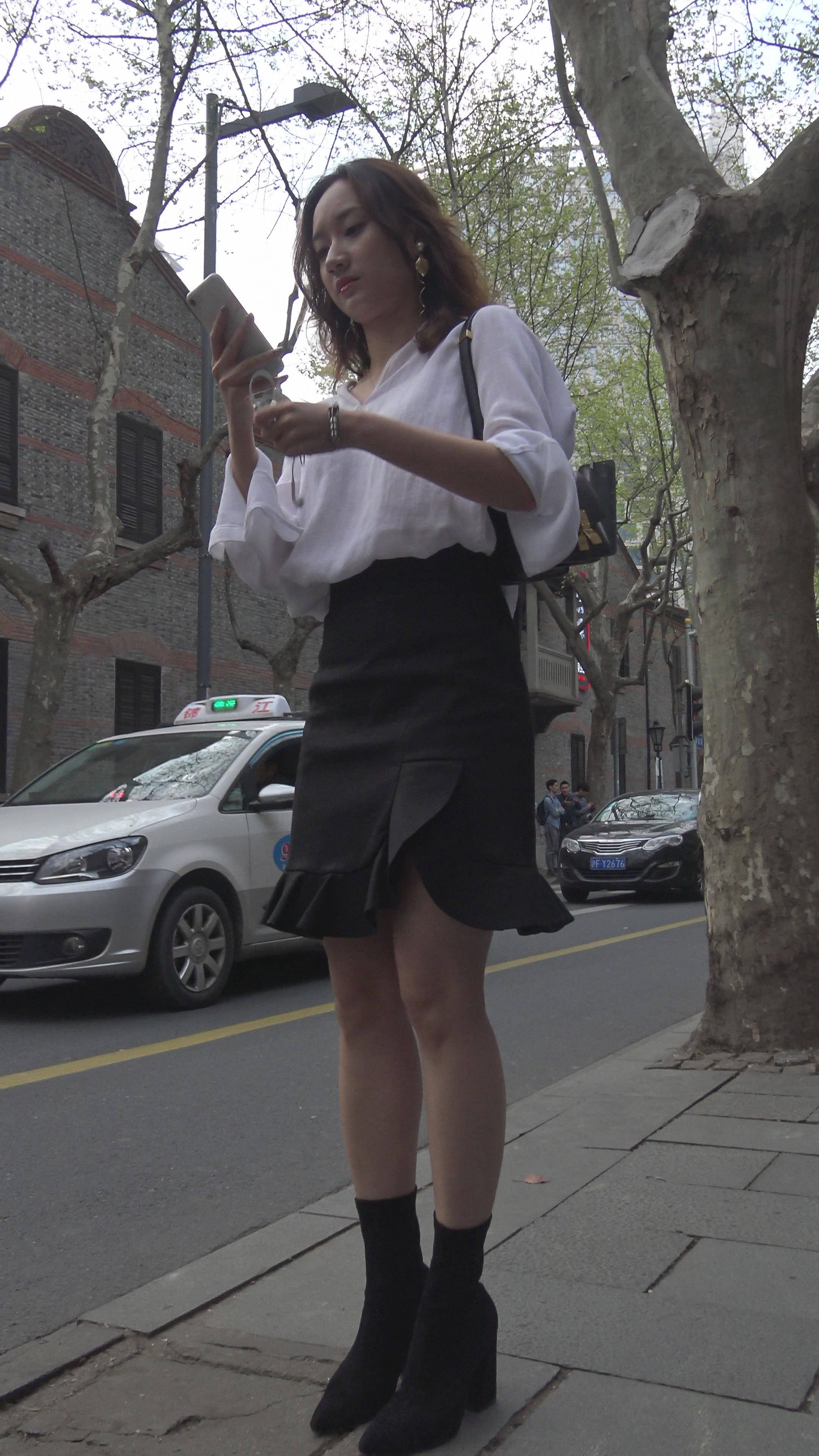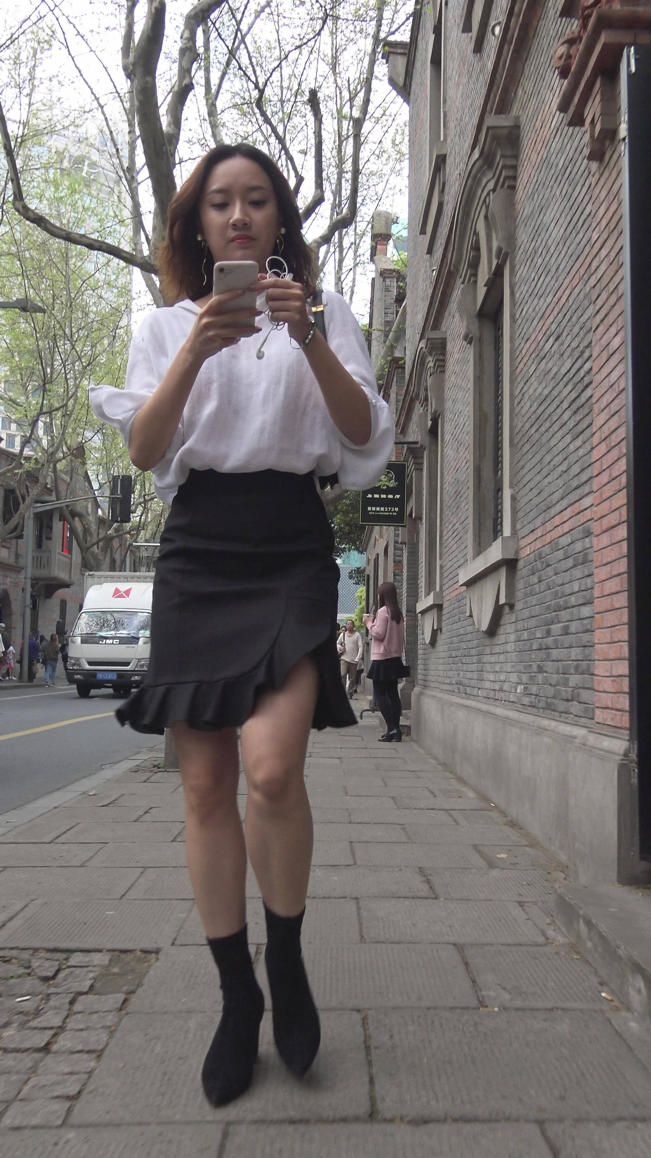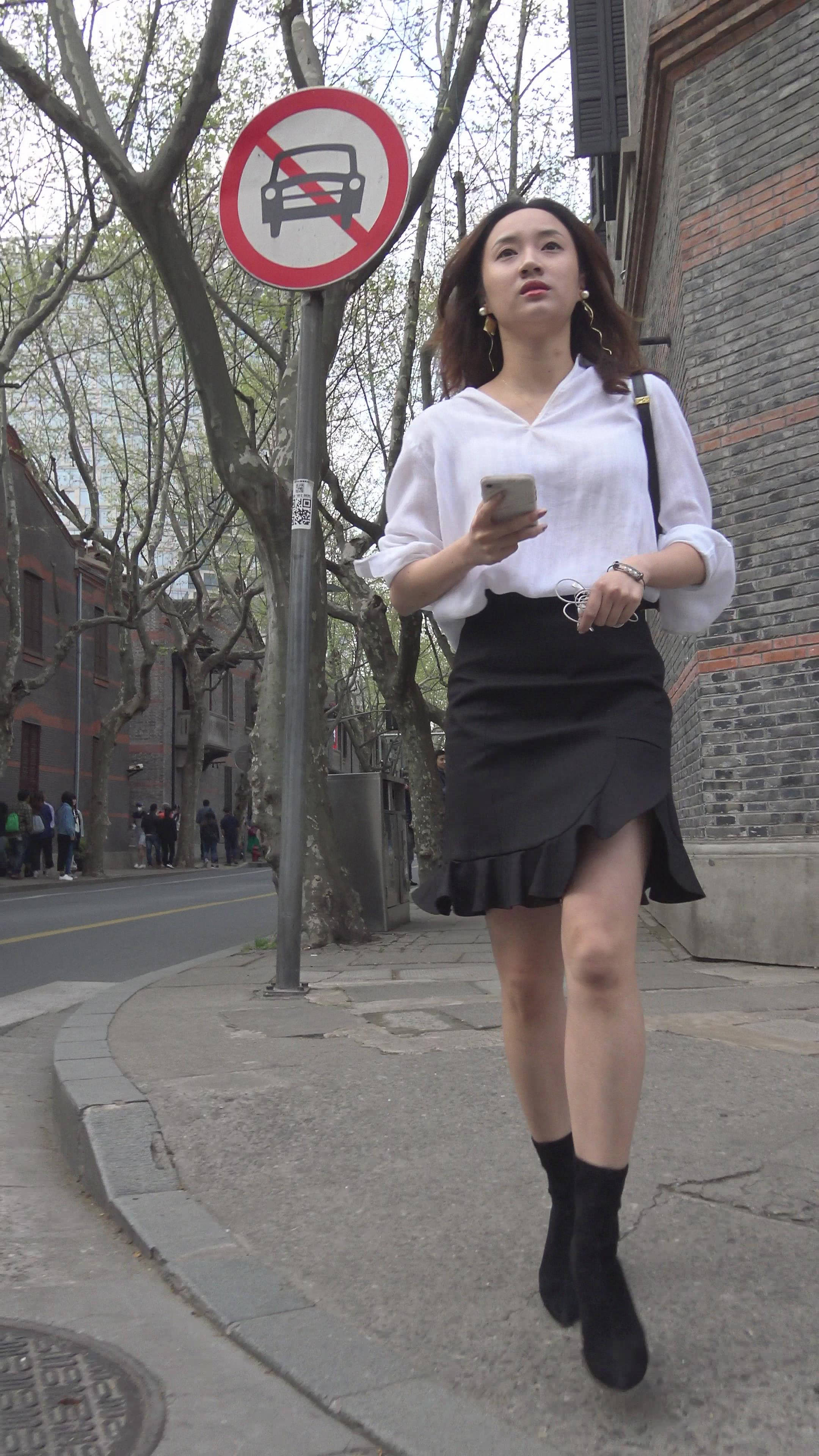 | 4K 街拍白衬衫包臀裙性感美腿美女笑容满面 编号7863 |
