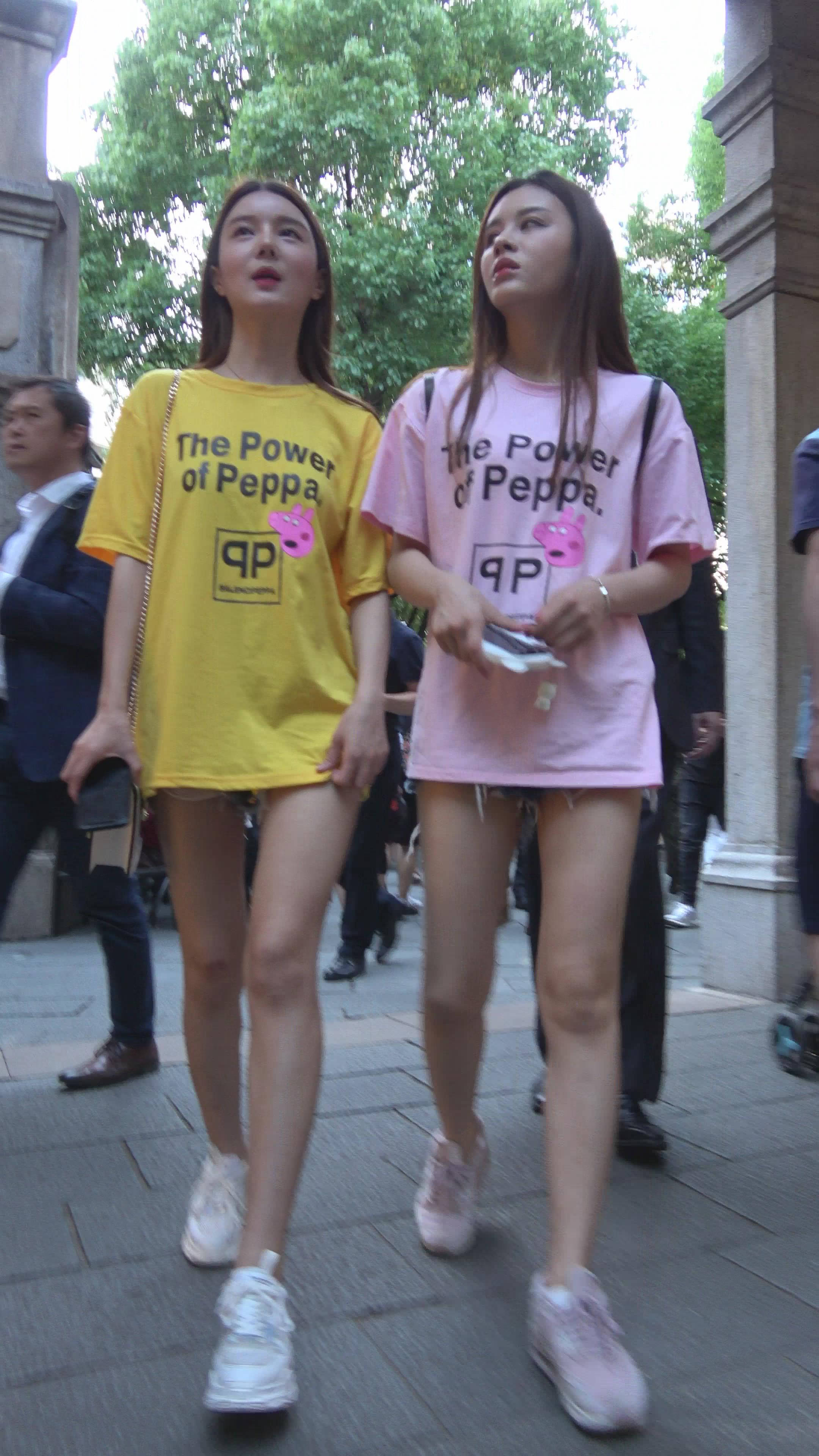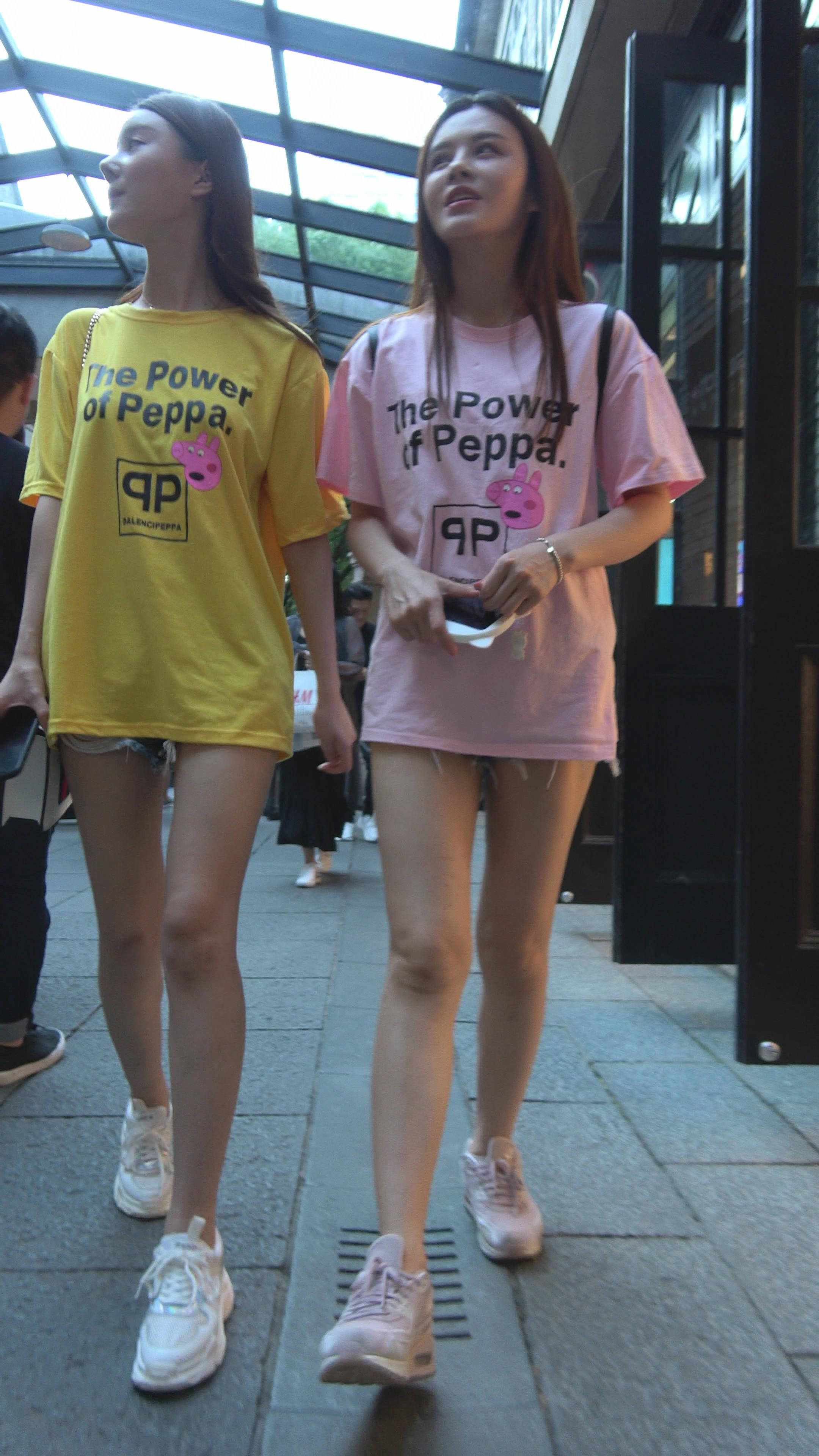 | 4K 清秀的超短热裤T恤衫街拍美腿姐妹 编号7892 |