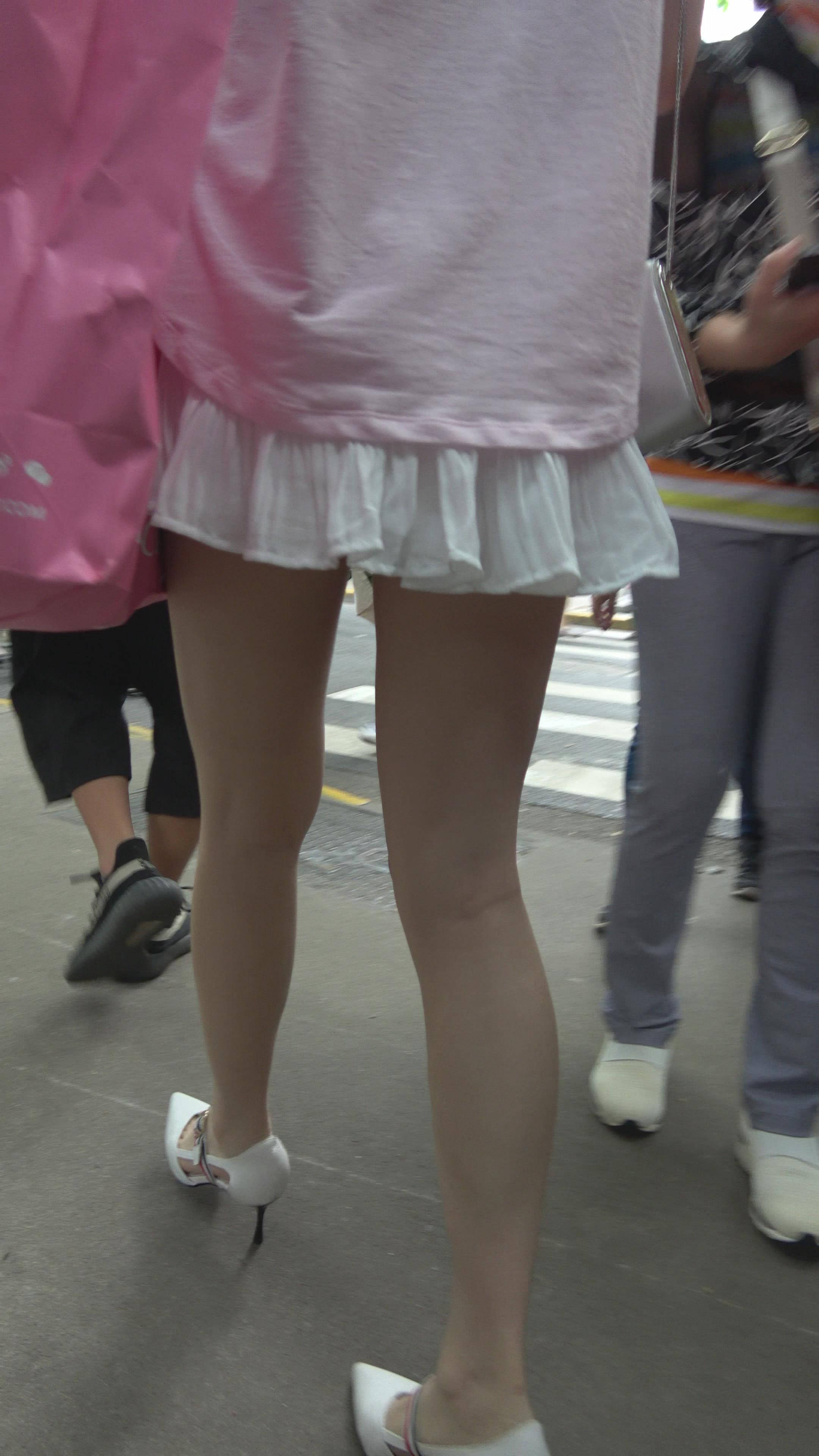 | 4K 街拍小清新短裙粉衣高跟美女 编号7900 |