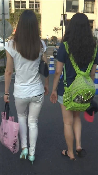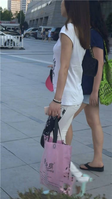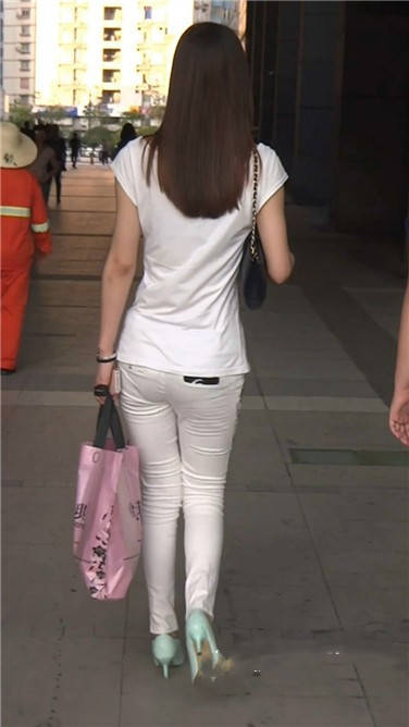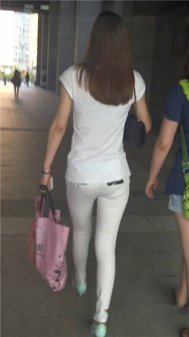 | 街拍苗条身材紧身白裤高跟鞋美女 编号3716 |
