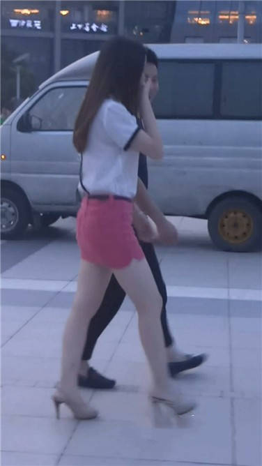 | 街拍粉色包臀裙性感美女跟男友去看电影 编号3736 |
