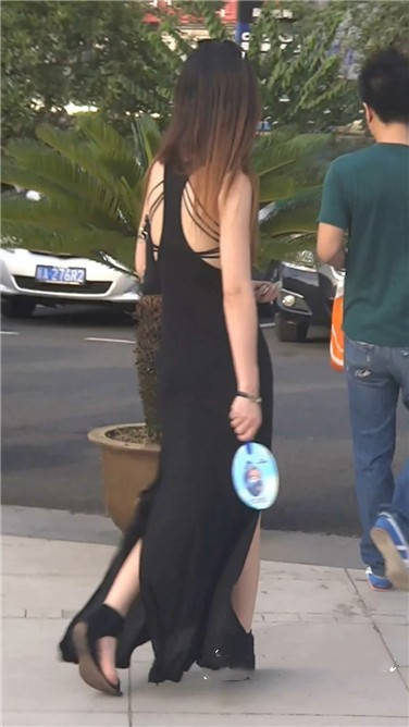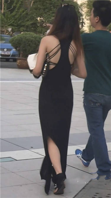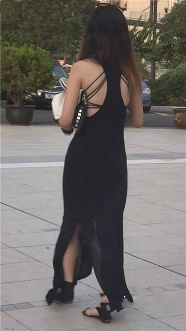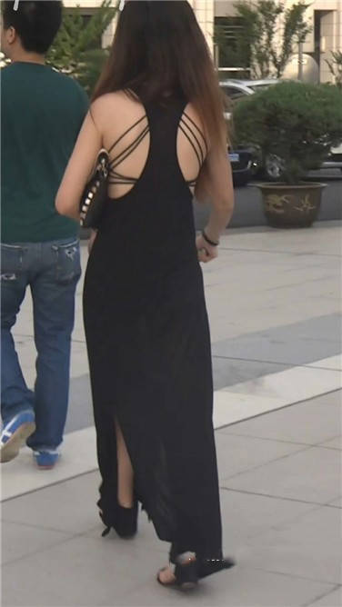 | 街拍性感露背黑色连衣裙美眉 编号3741 |