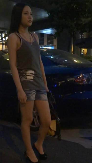 | 夜晚路边打电话的牛仔热裤妹子 编号3753 |