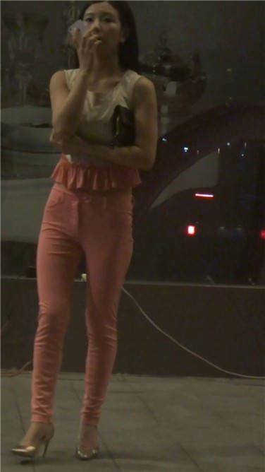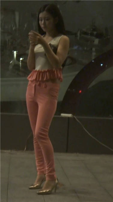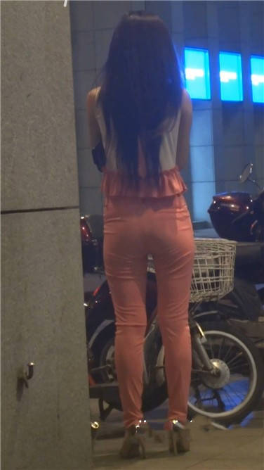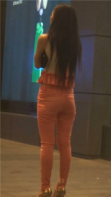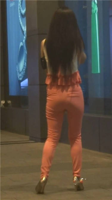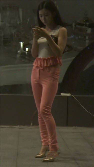 | 街拍粉红色紧身裤美女 编号3770 |