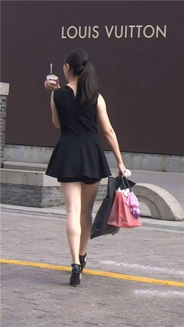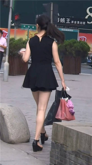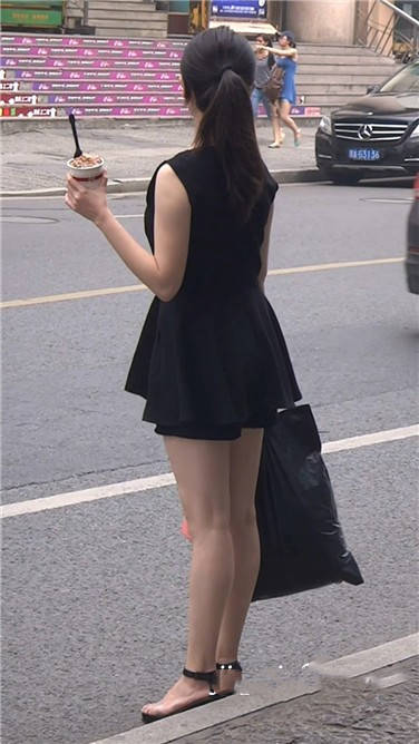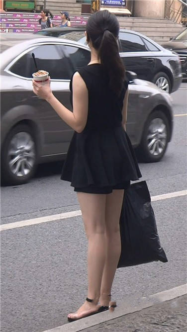 | 街拍黑色连衣裙小姐姐路边等车 编号3822 |