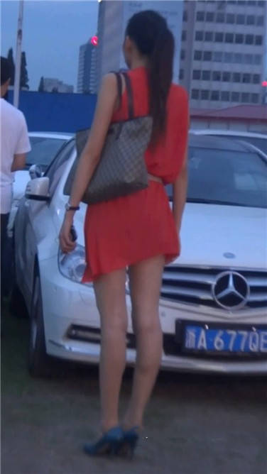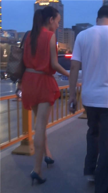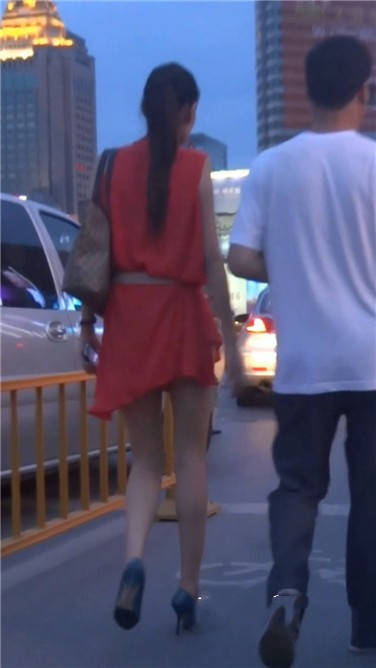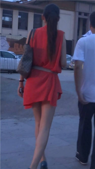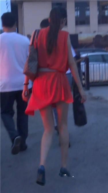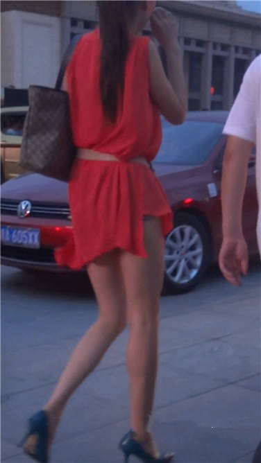 | 街拍红色连衣裙苗条美女姐姐 编号3832 |
