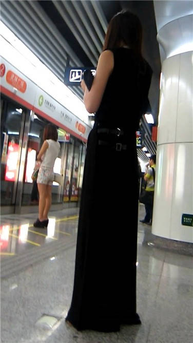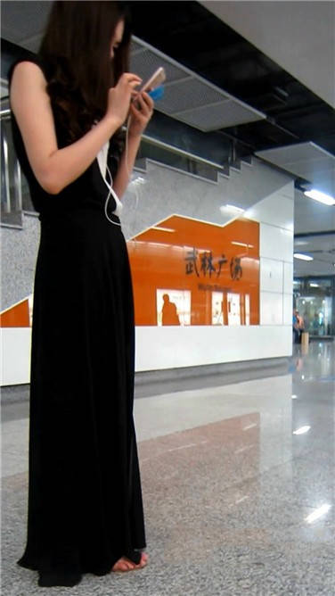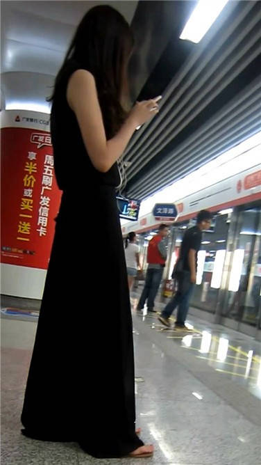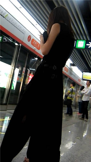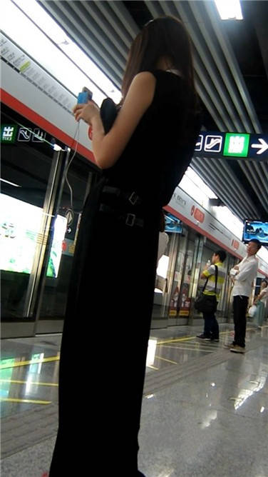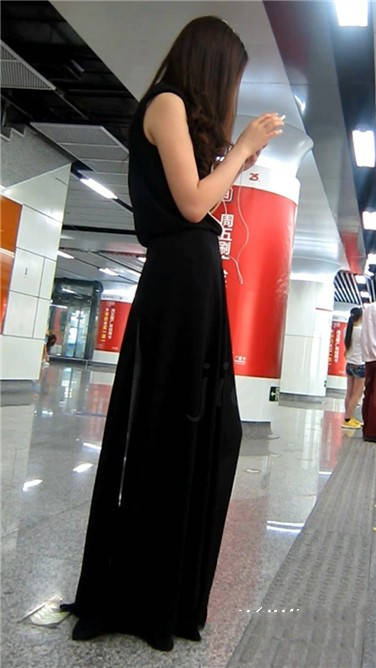 | 一席黑色长裙美眉在等地铁 编号3870 |