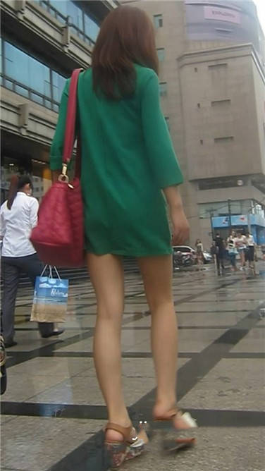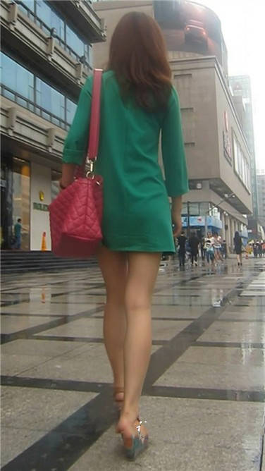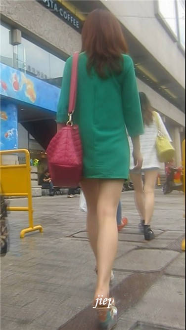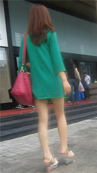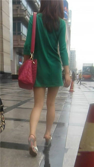 | 街拍绿色连衣裙好身材清秀妹子 编号3890 |