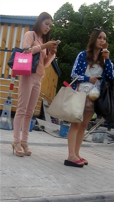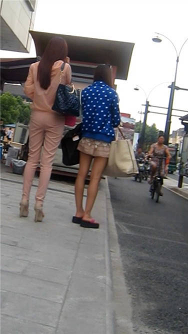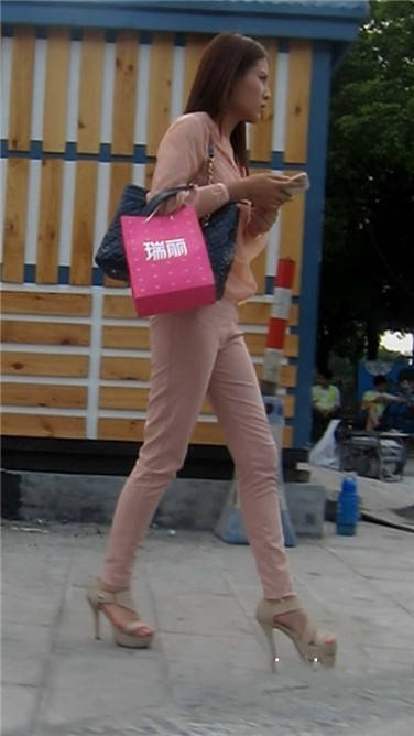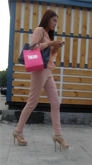 | 街拍粉衣高跟鞋清秀美女小姐姐 编号3897 |