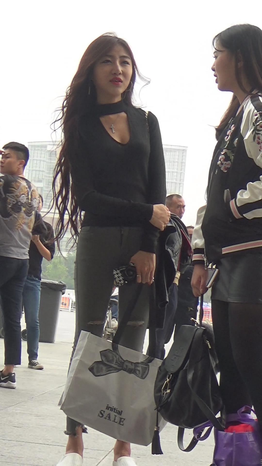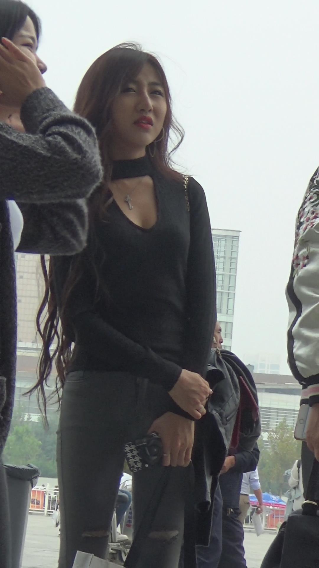 | 街拍灰色紧身裤清纯美女编号3914 |