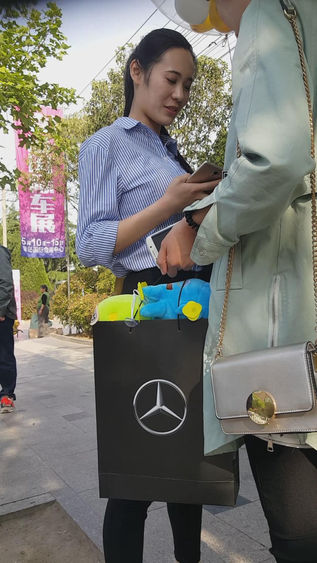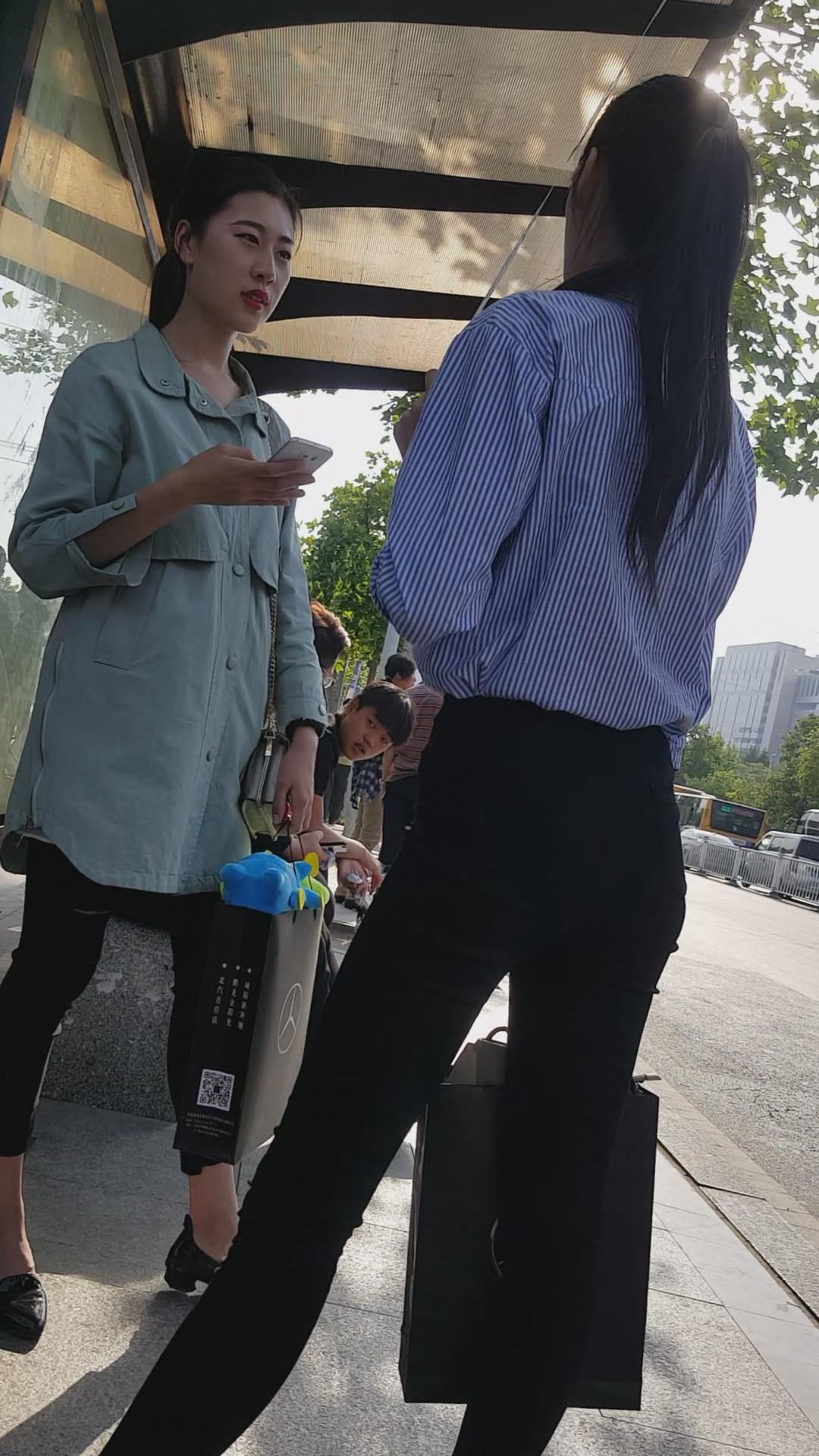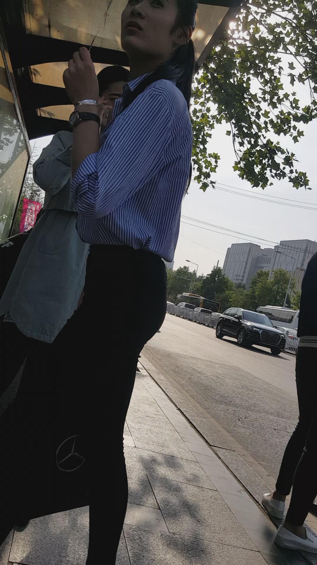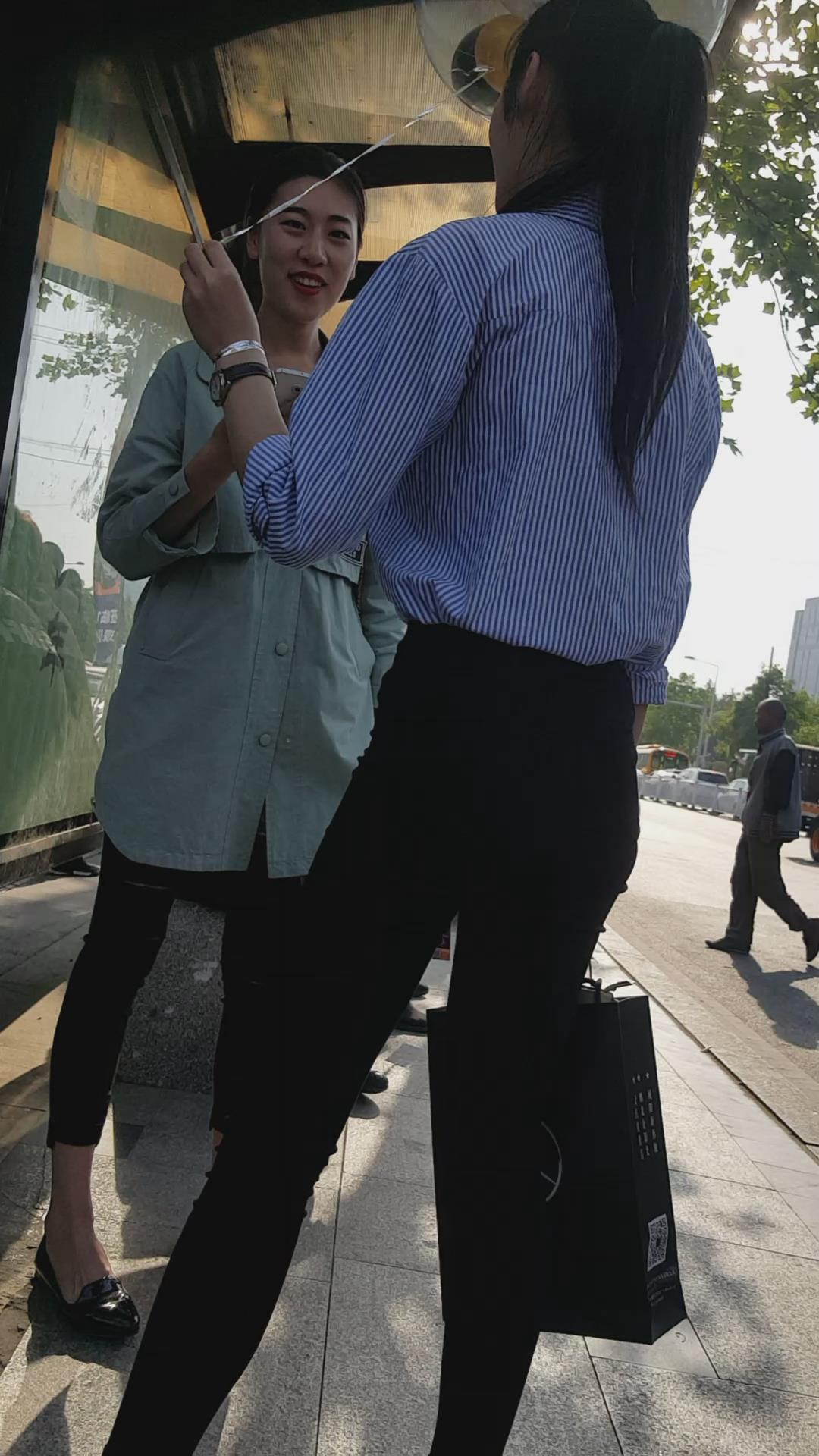 | 清新脱俗黑色紧身裤蓝衬衫美女编号3923 |