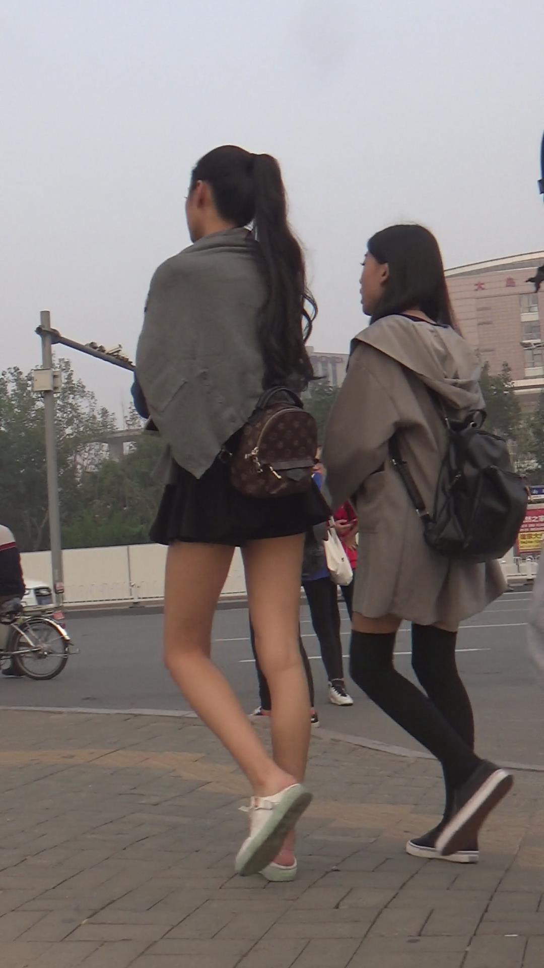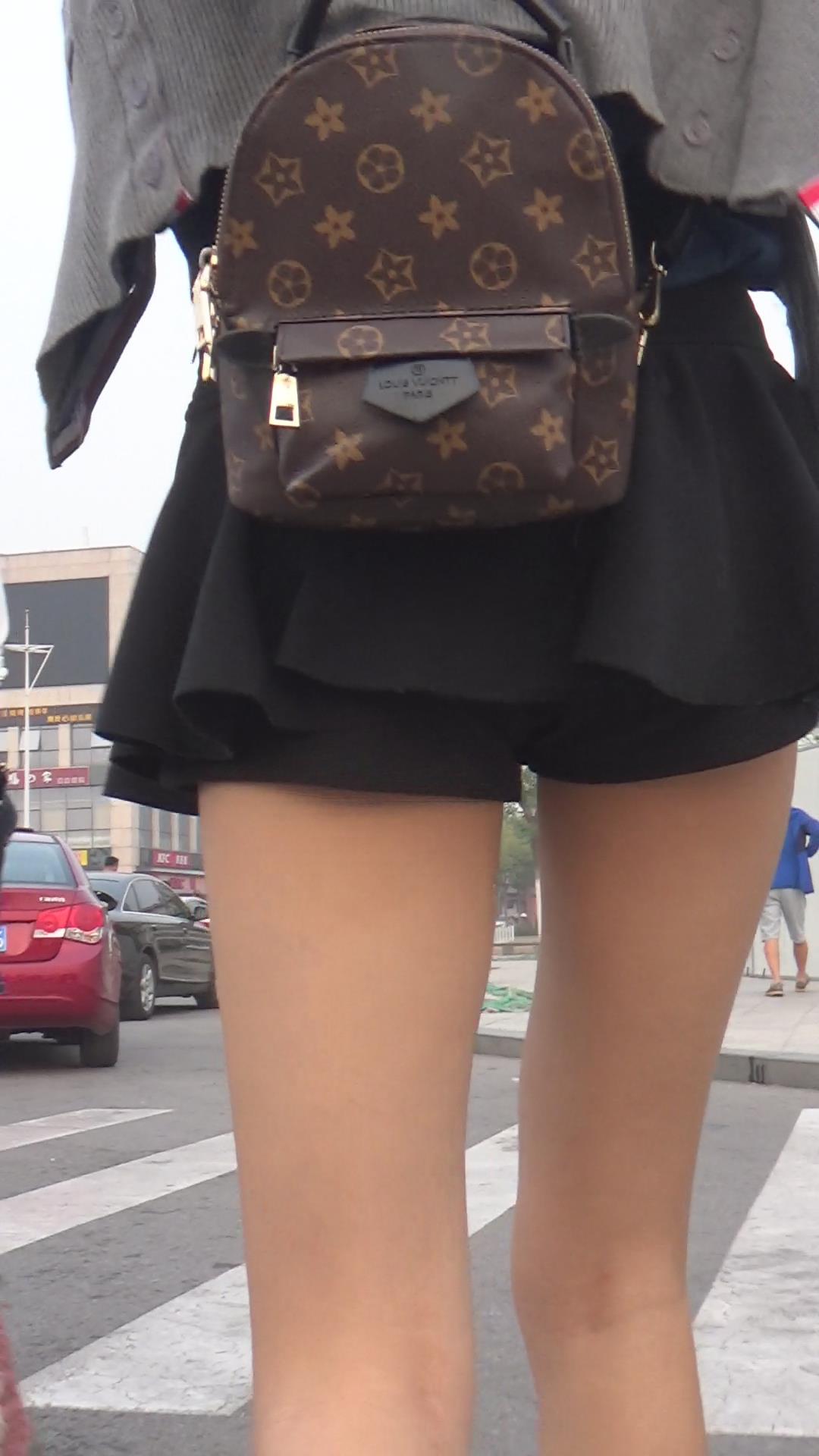 | 街拍黑色超短裙性感细腿美女编号3936 |