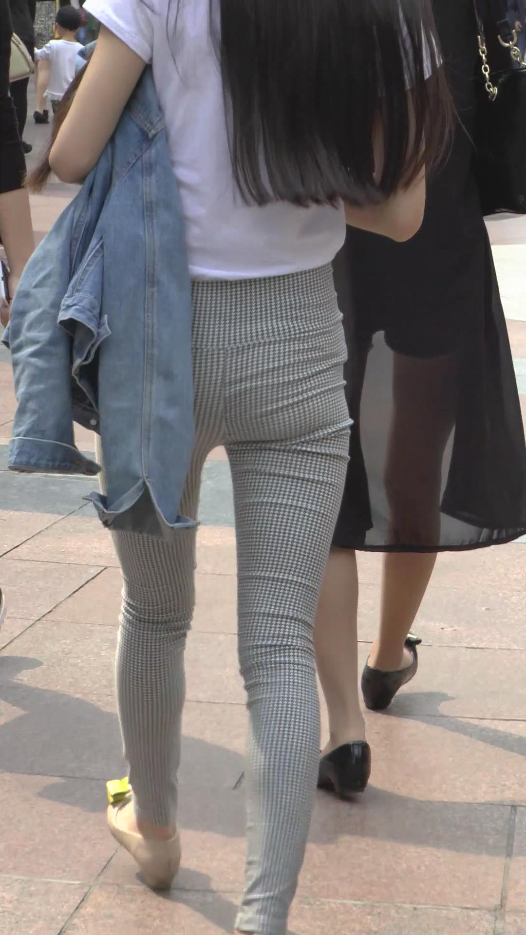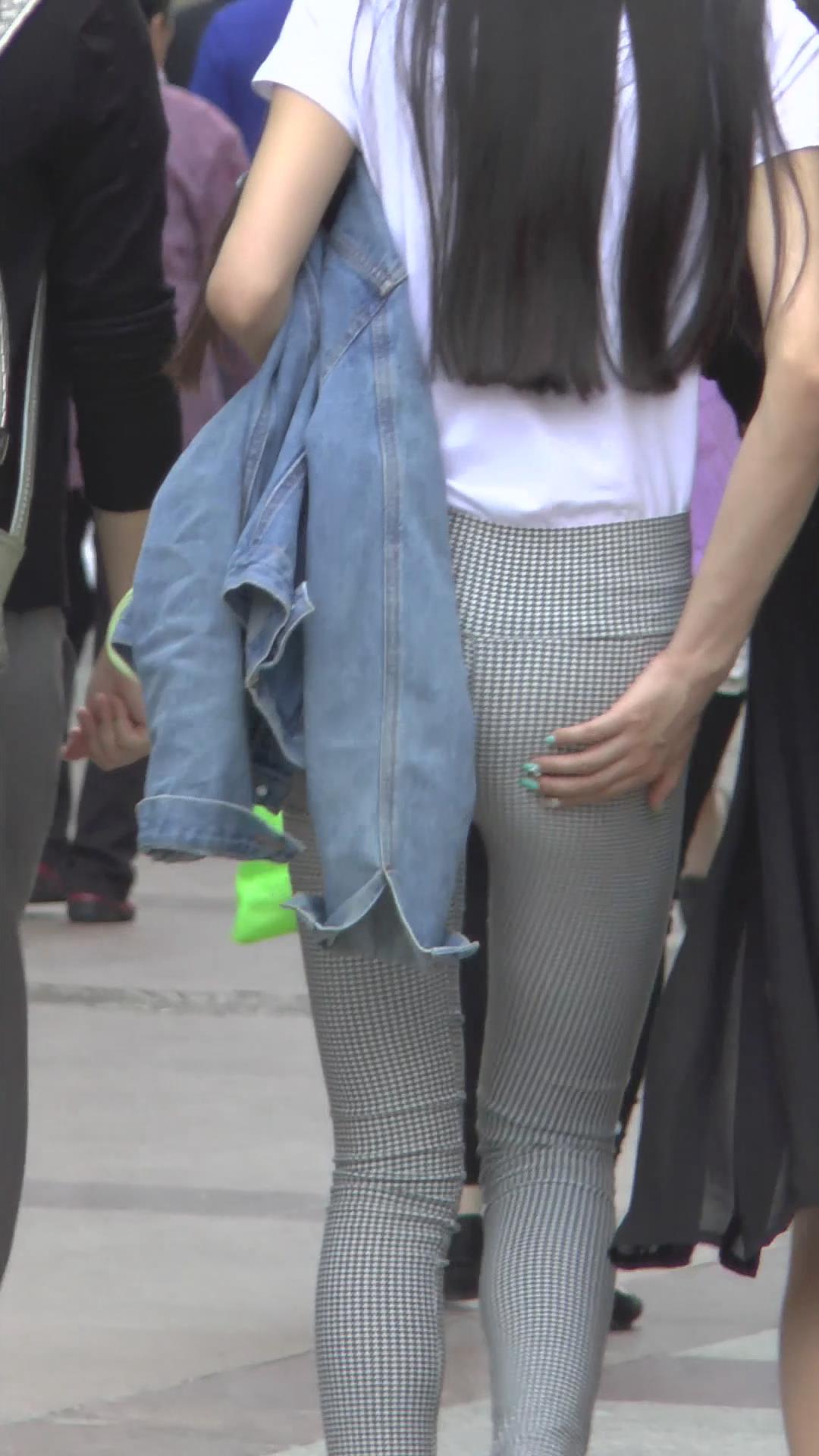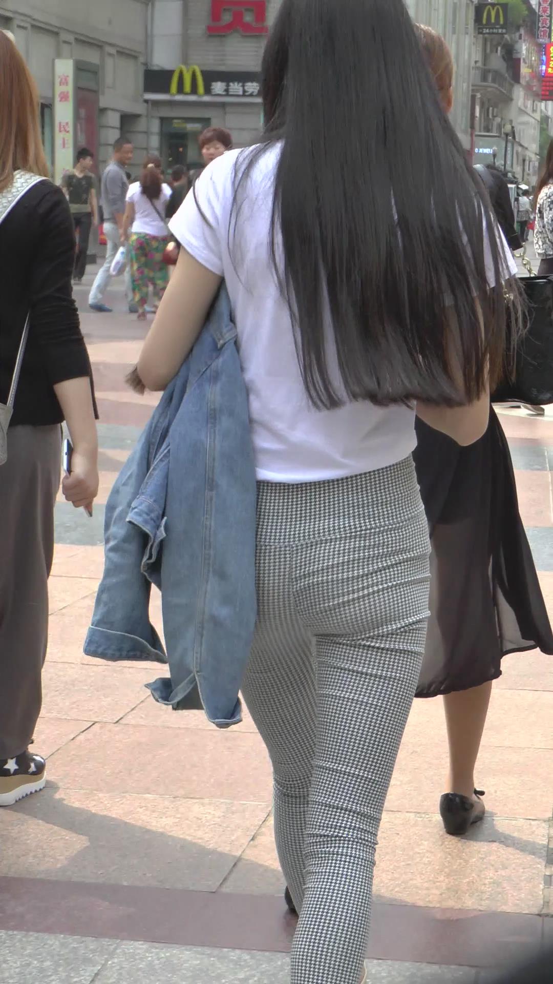 | 街拍格子紧身裤白T恤美臀美女 编号6072 |