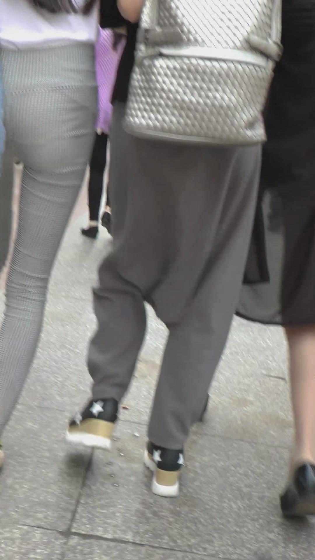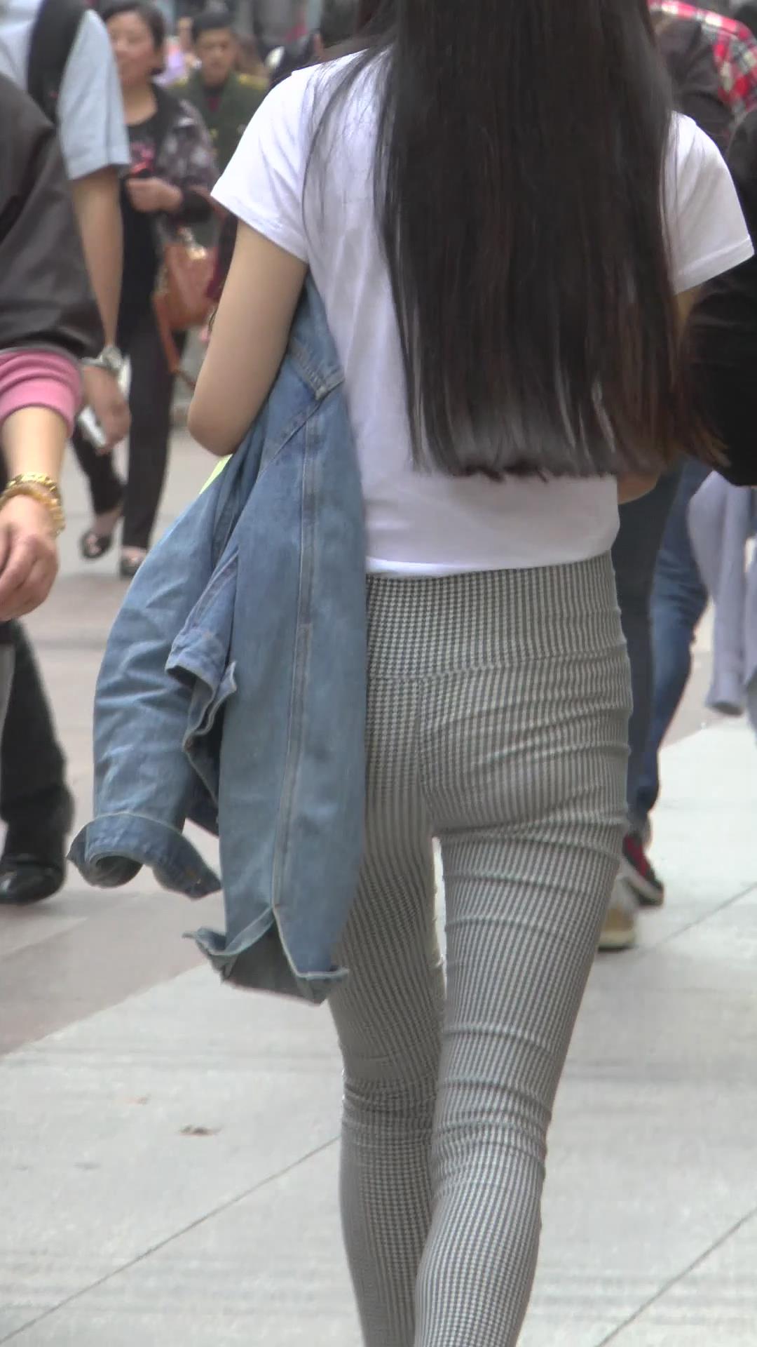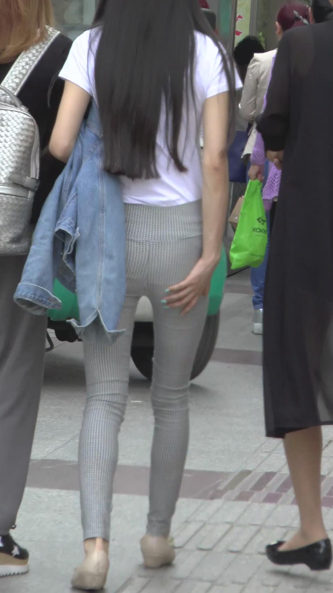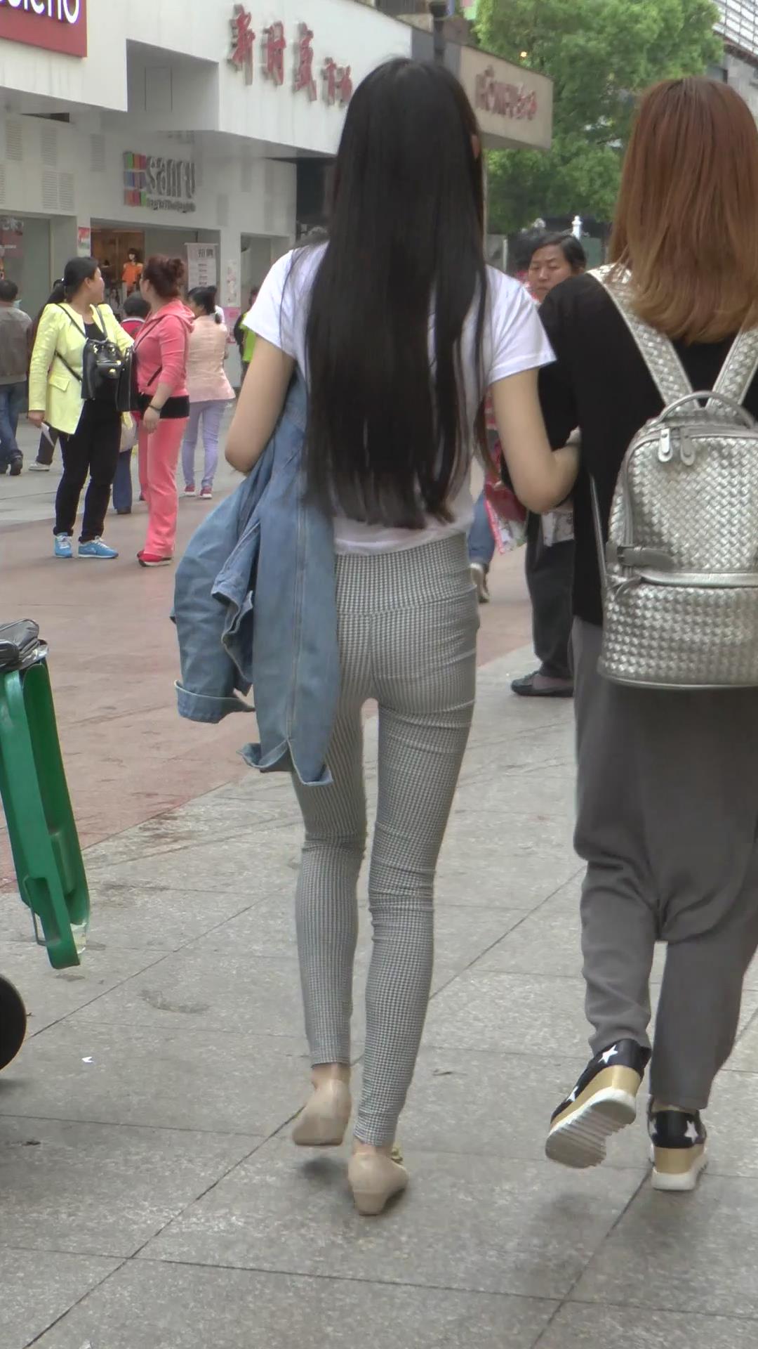 | 街拍格子紧身裤白T恤美臀美女 编号6072 |