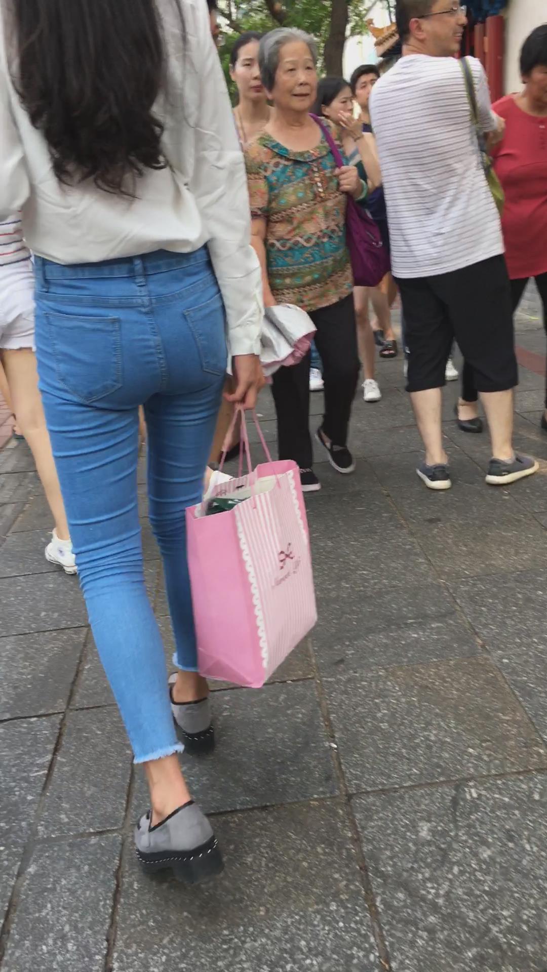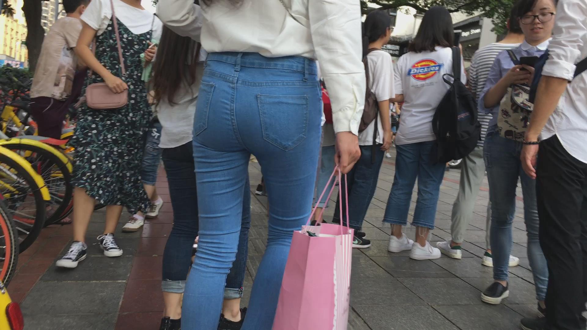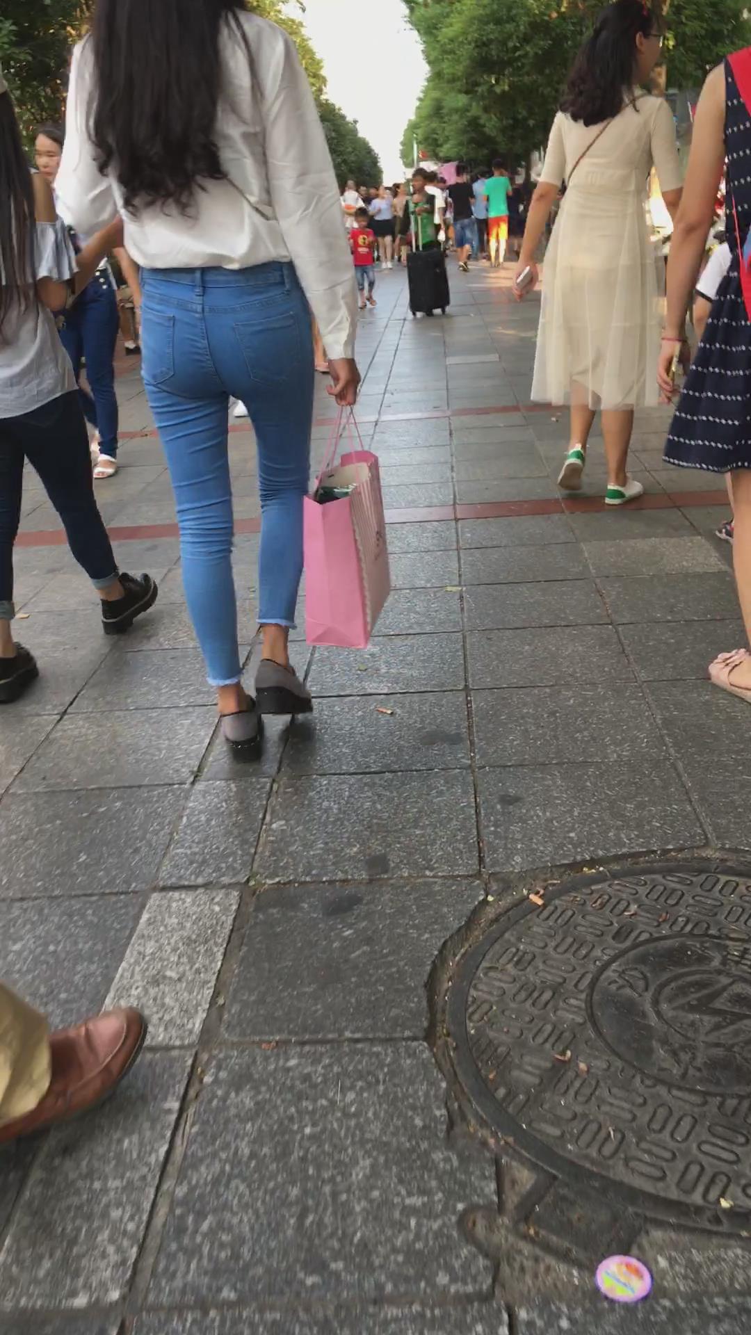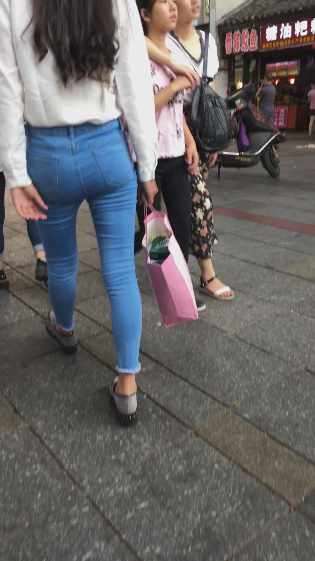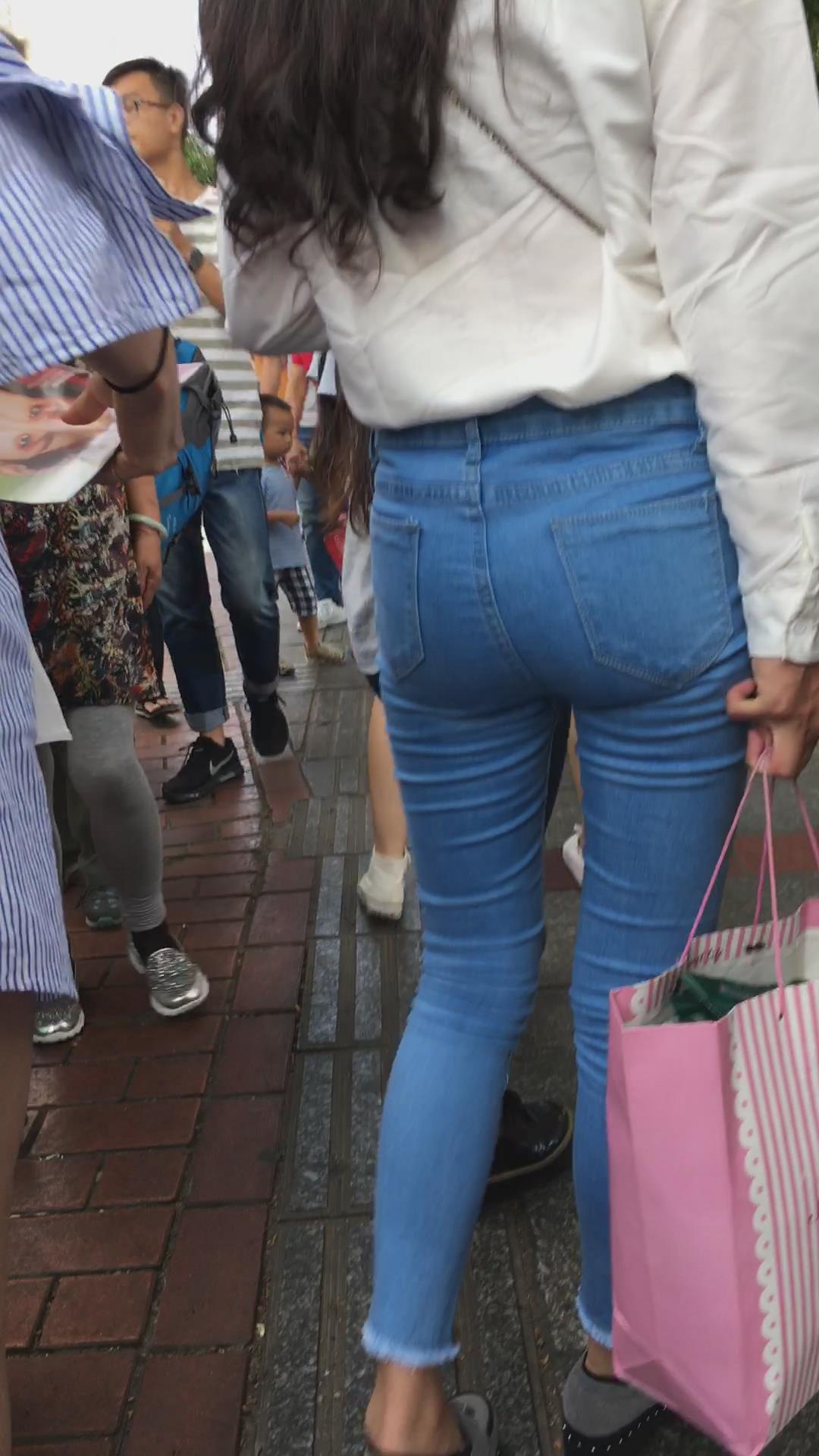 | 街拍绝世美臀紧身蓝色牛仔裤小清纯美女 编号6079 |