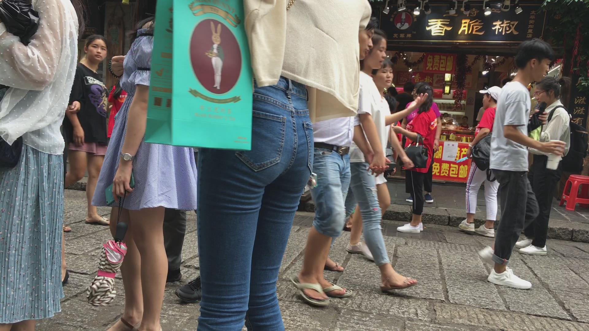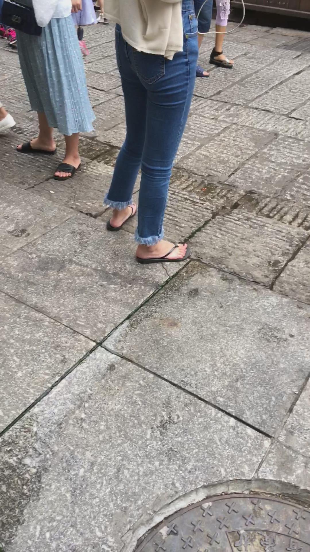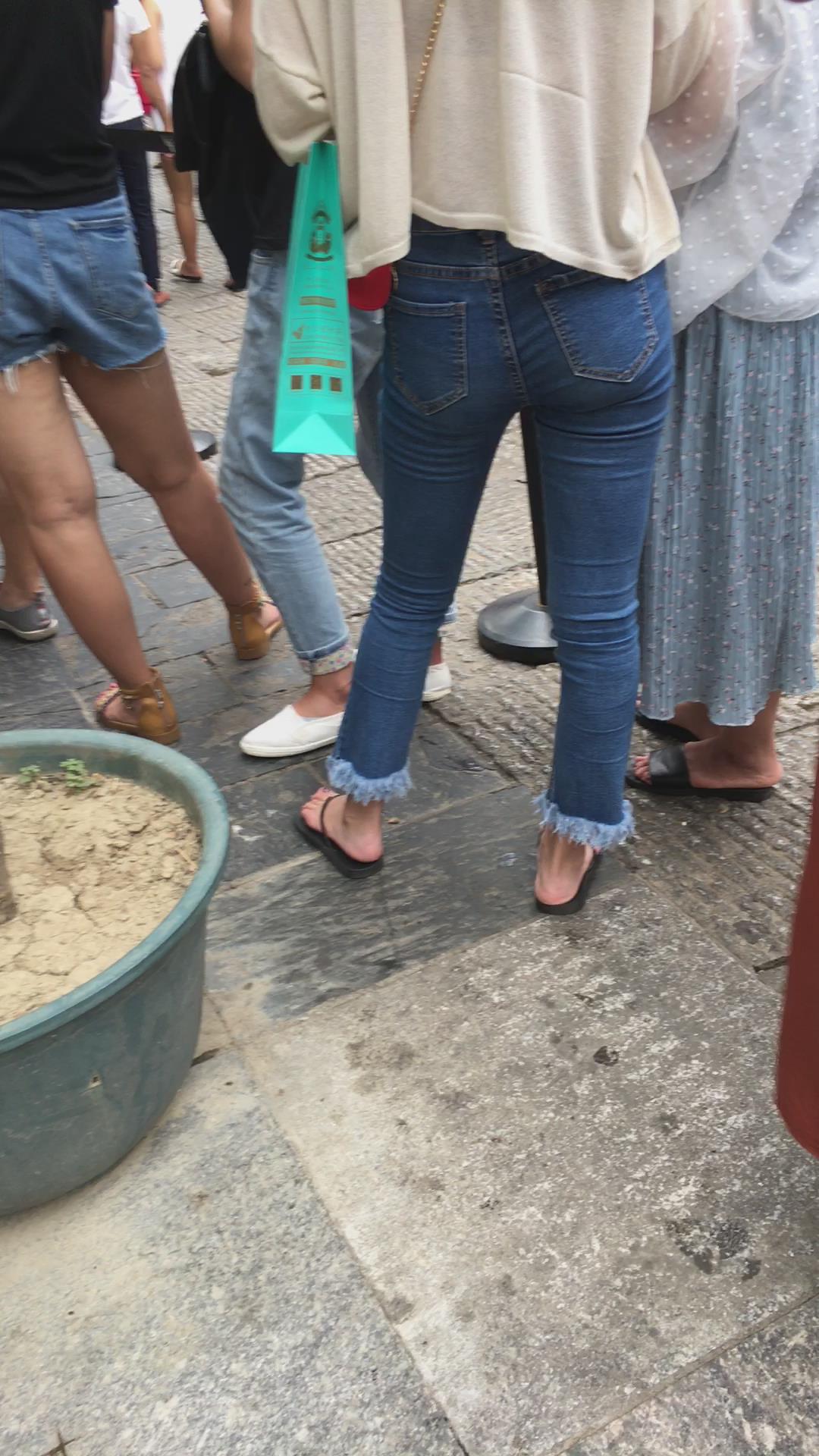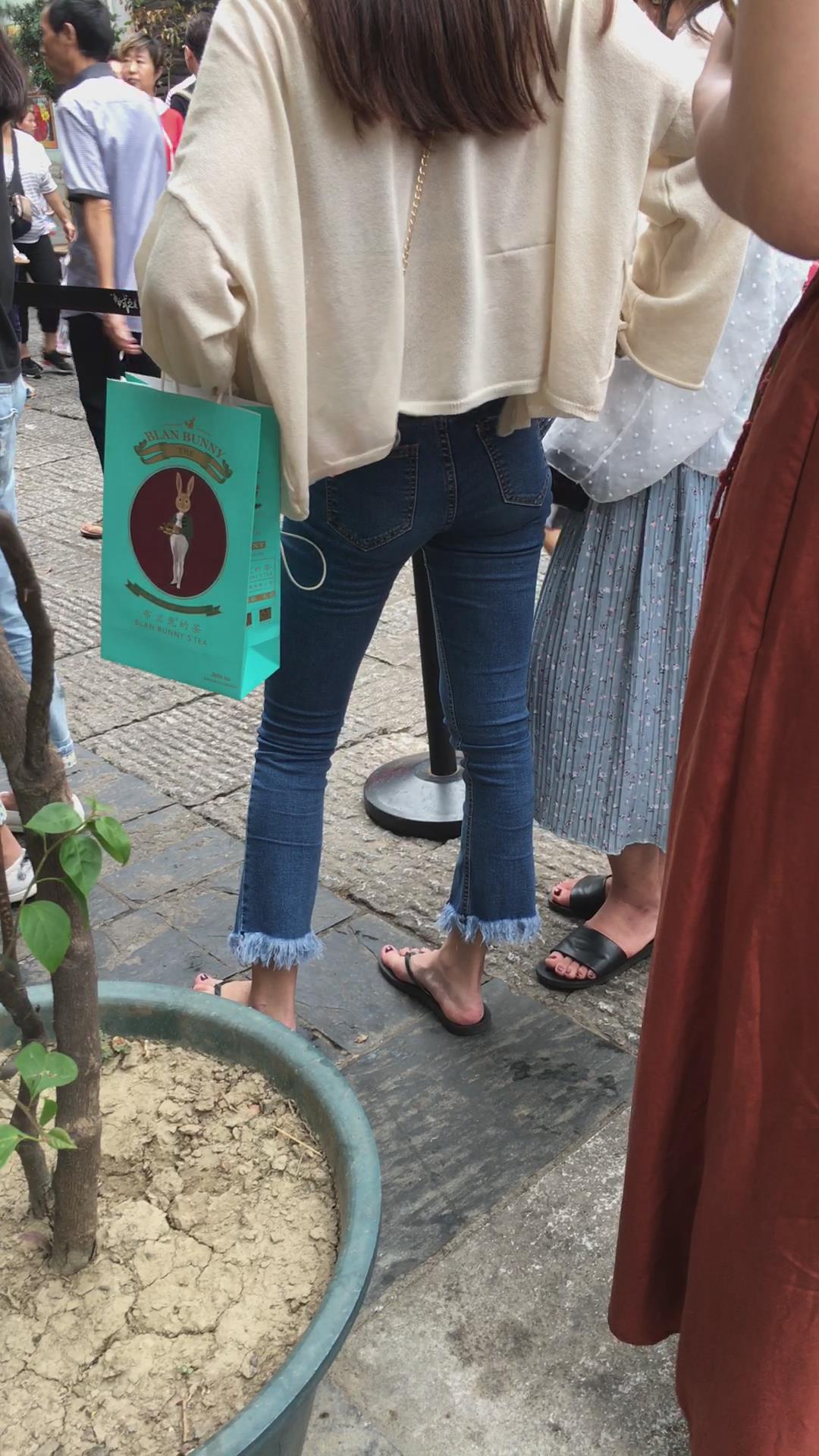 | 街拍清纯紧身蓝色牛仔裤可人娇小美女 编号6083 |