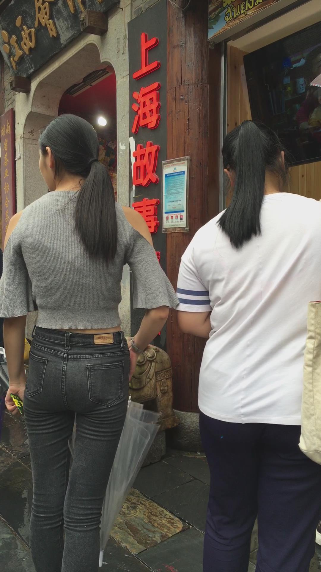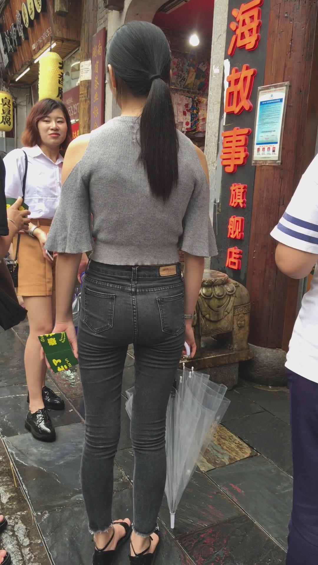 | 极品紧绷灰色牛仔裤苹果臀性感气质美女 编号6089 |
