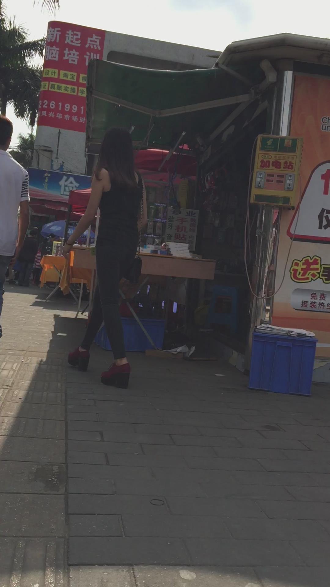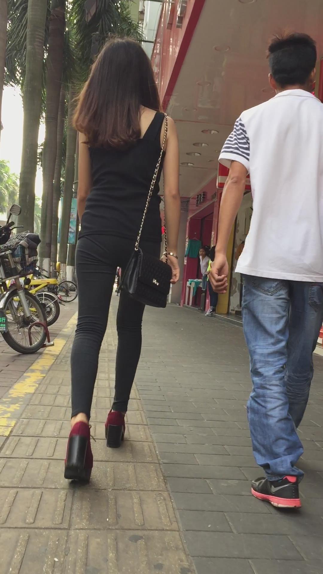 | 好身材紧身黑裤圆臀坡高跟鞋女孩 编号6100 |