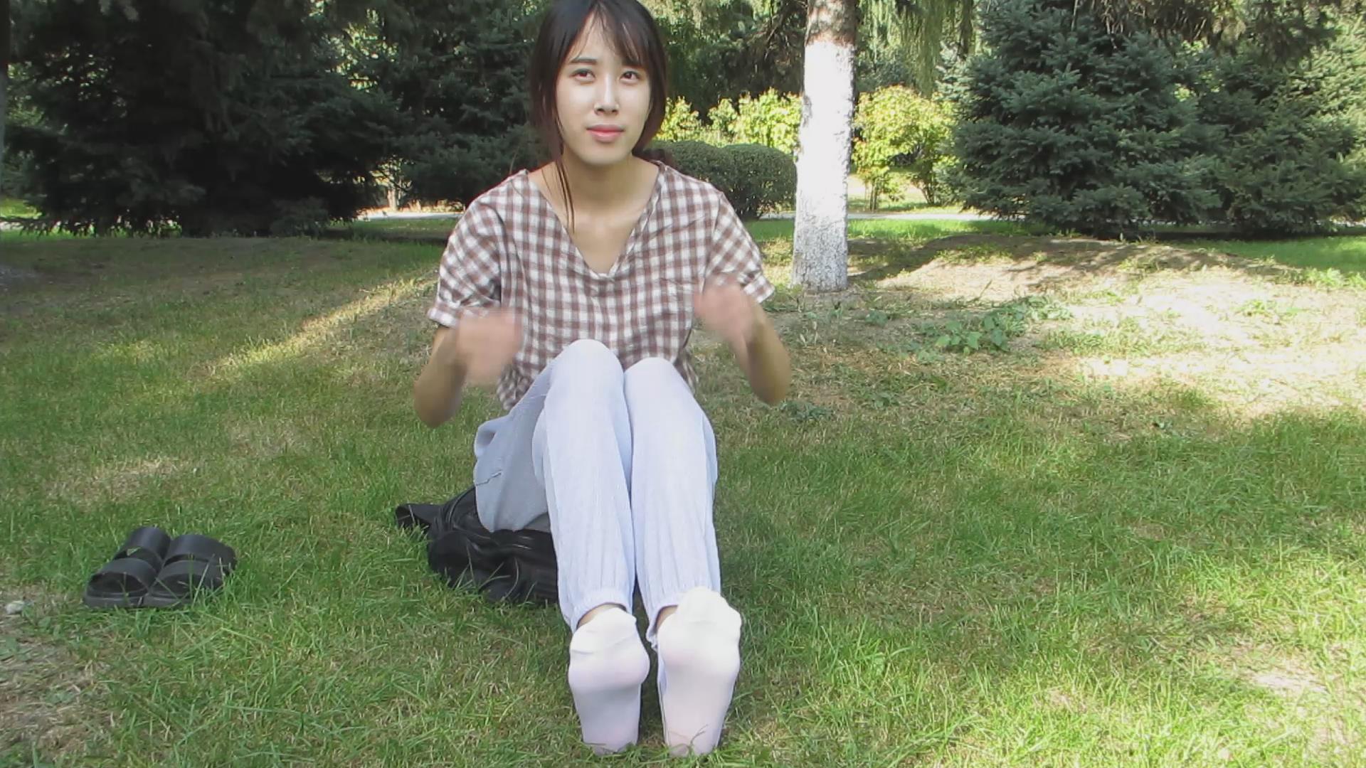 女神小岩公园草地上晒美足 编号5168 |