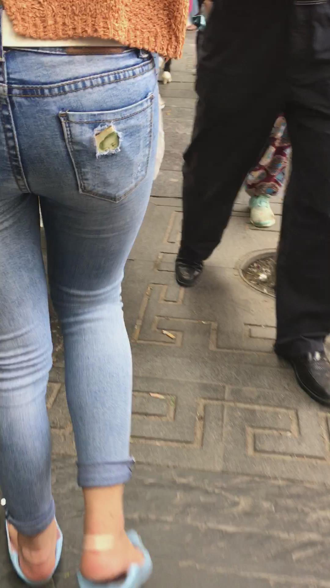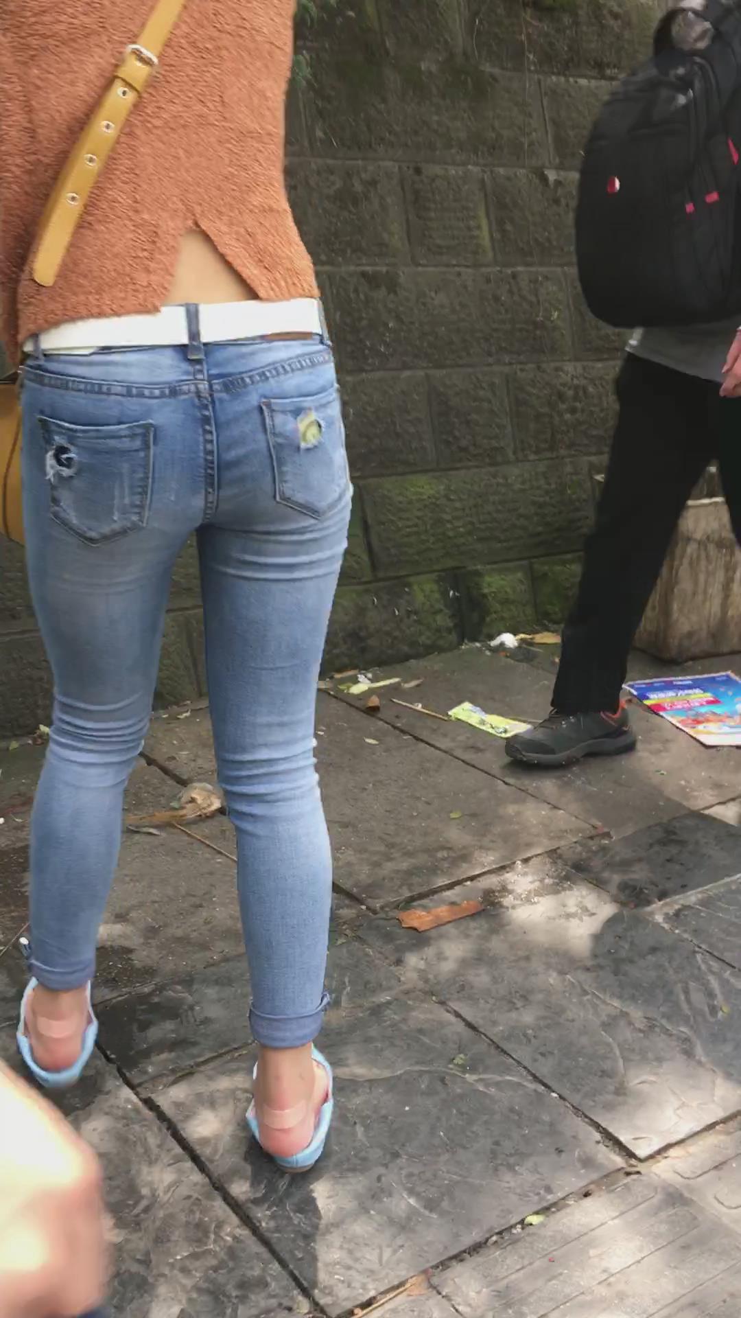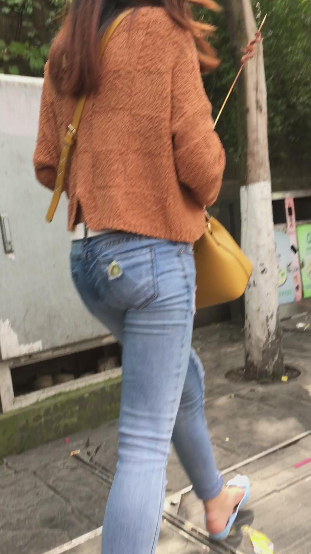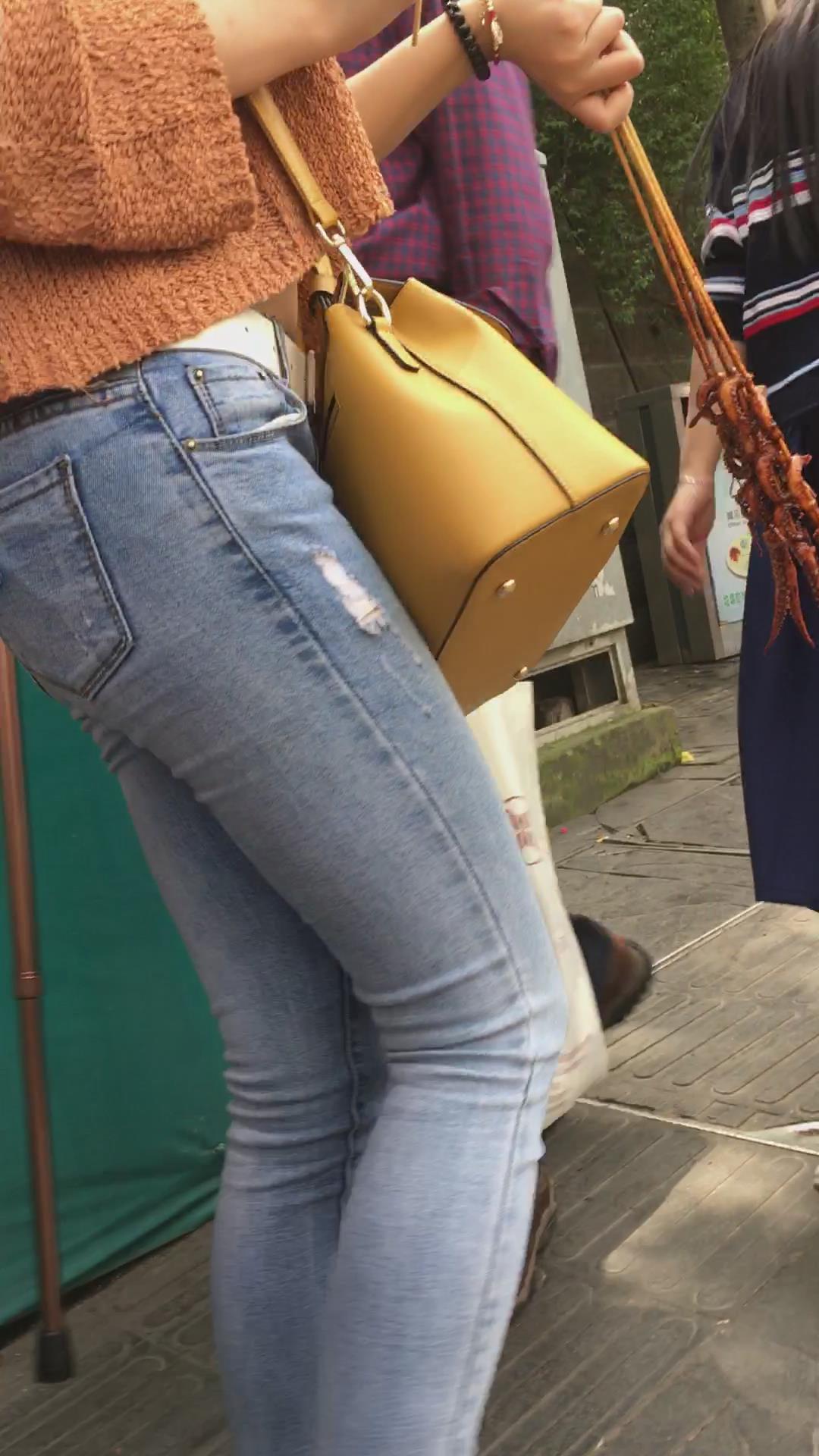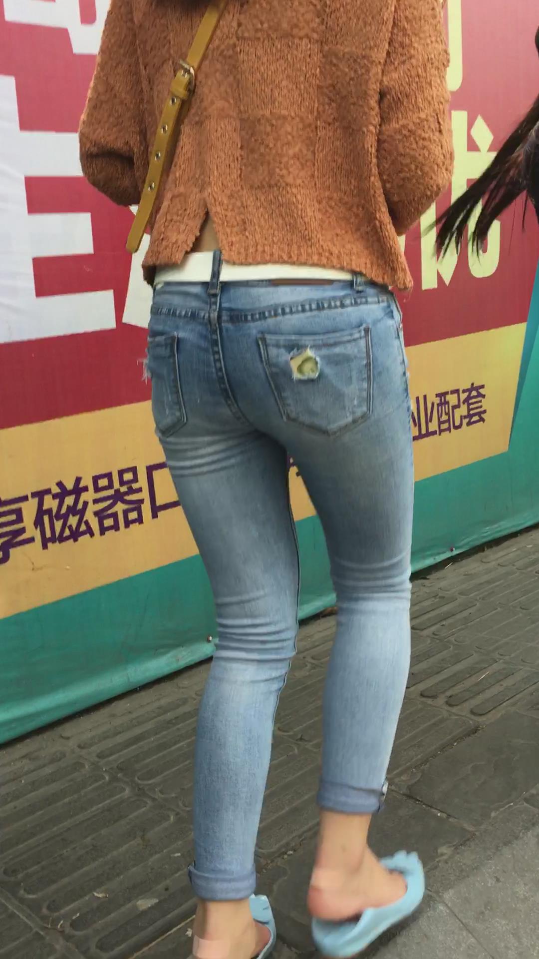| 街拍蓝色紧身牛仔裤小美女 编号5233 |