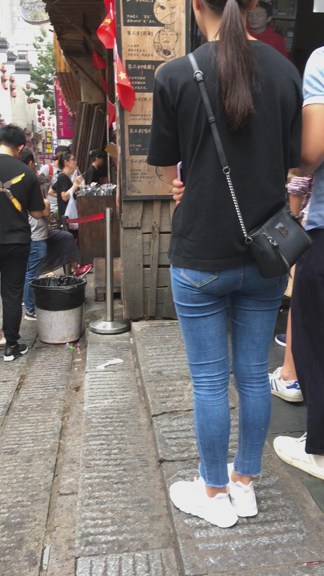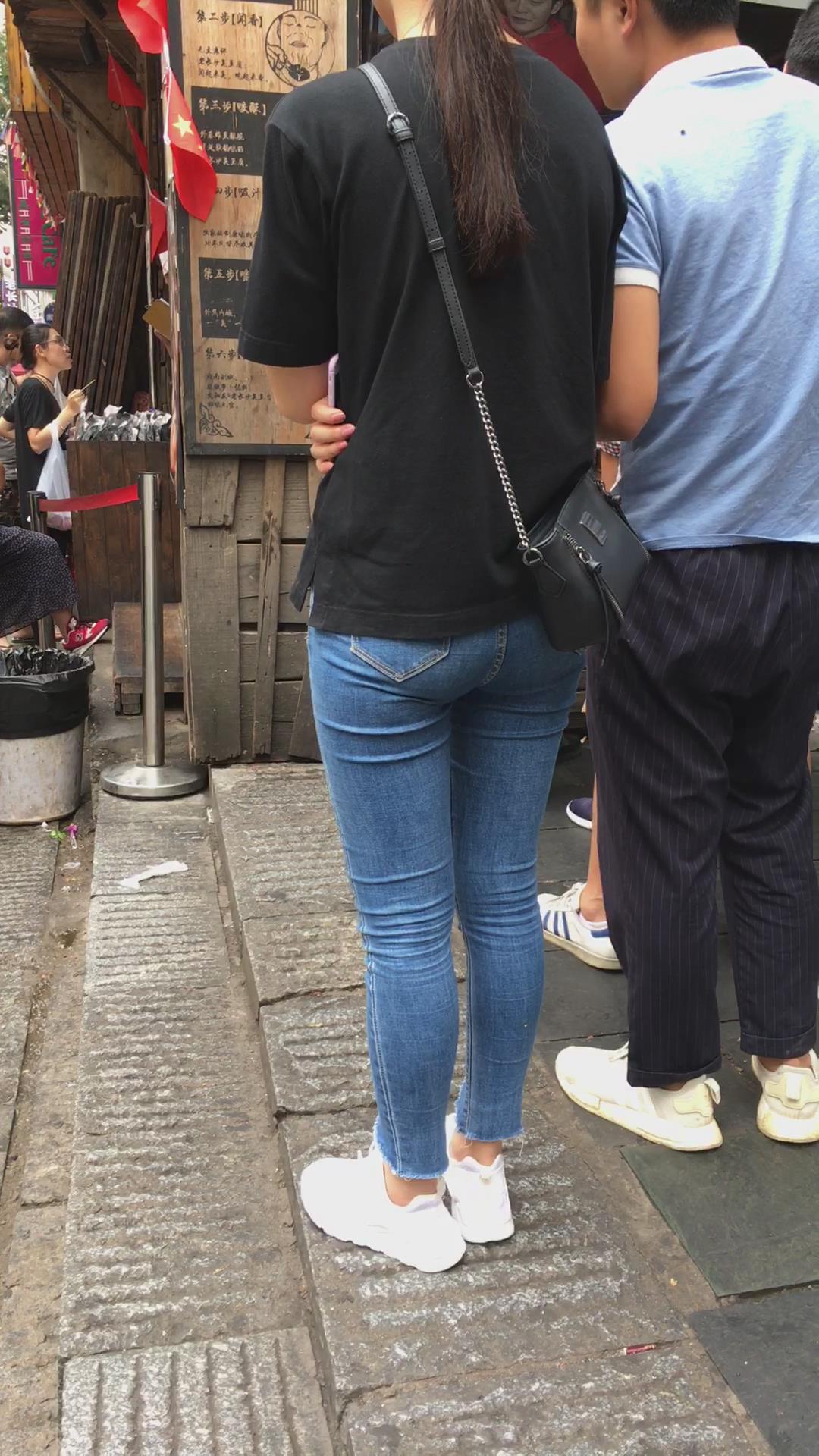 | 超紧身牛仔裤黑T恤学生妹 编号5280 |