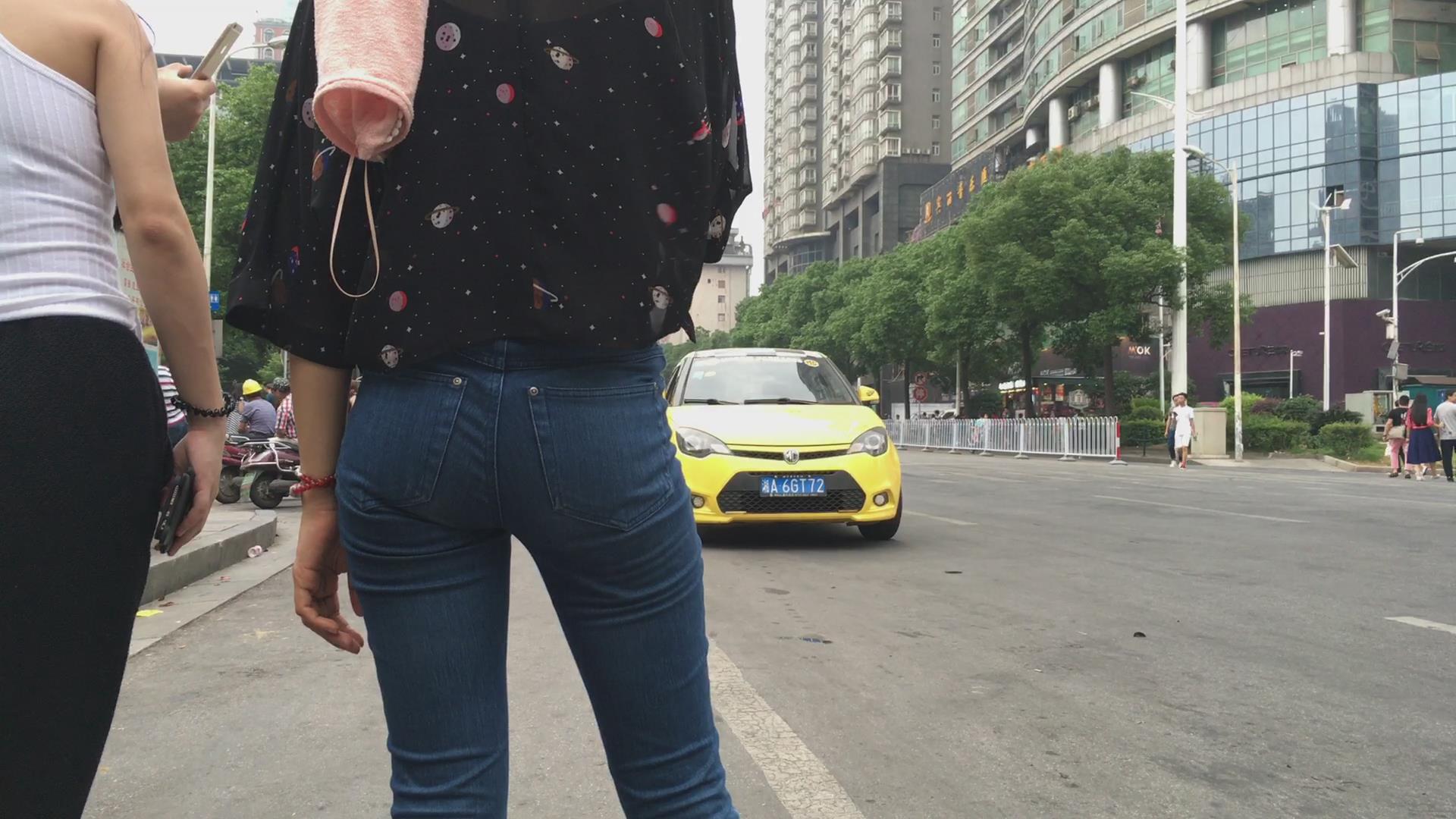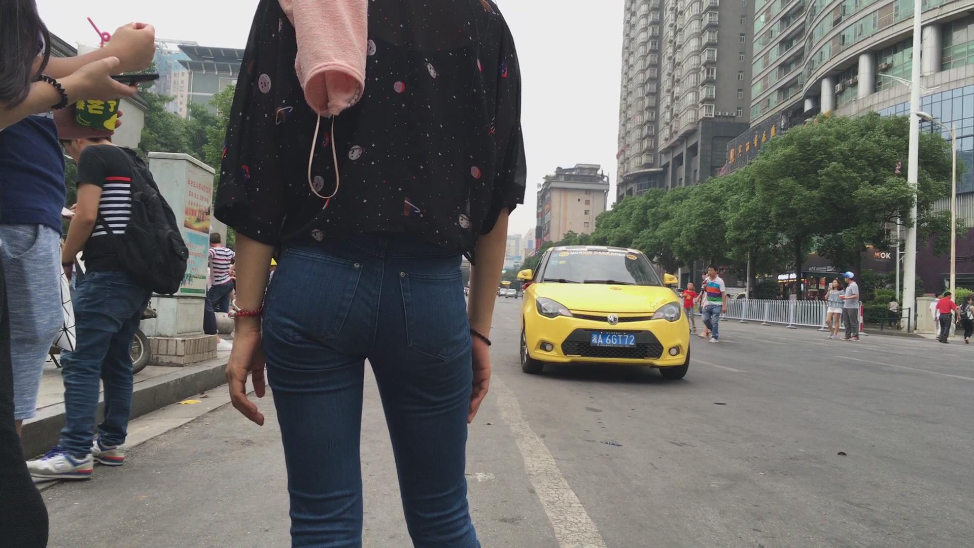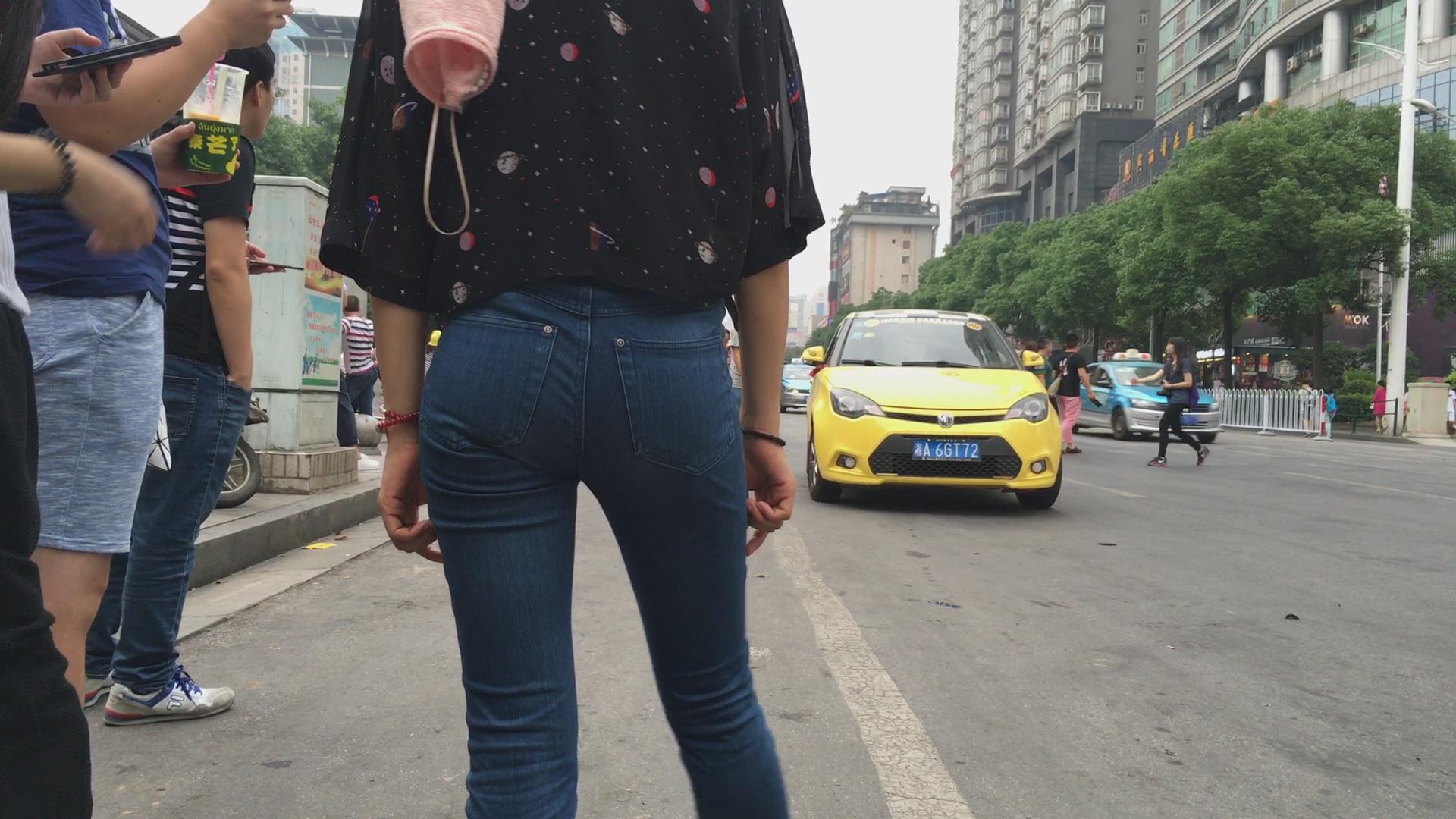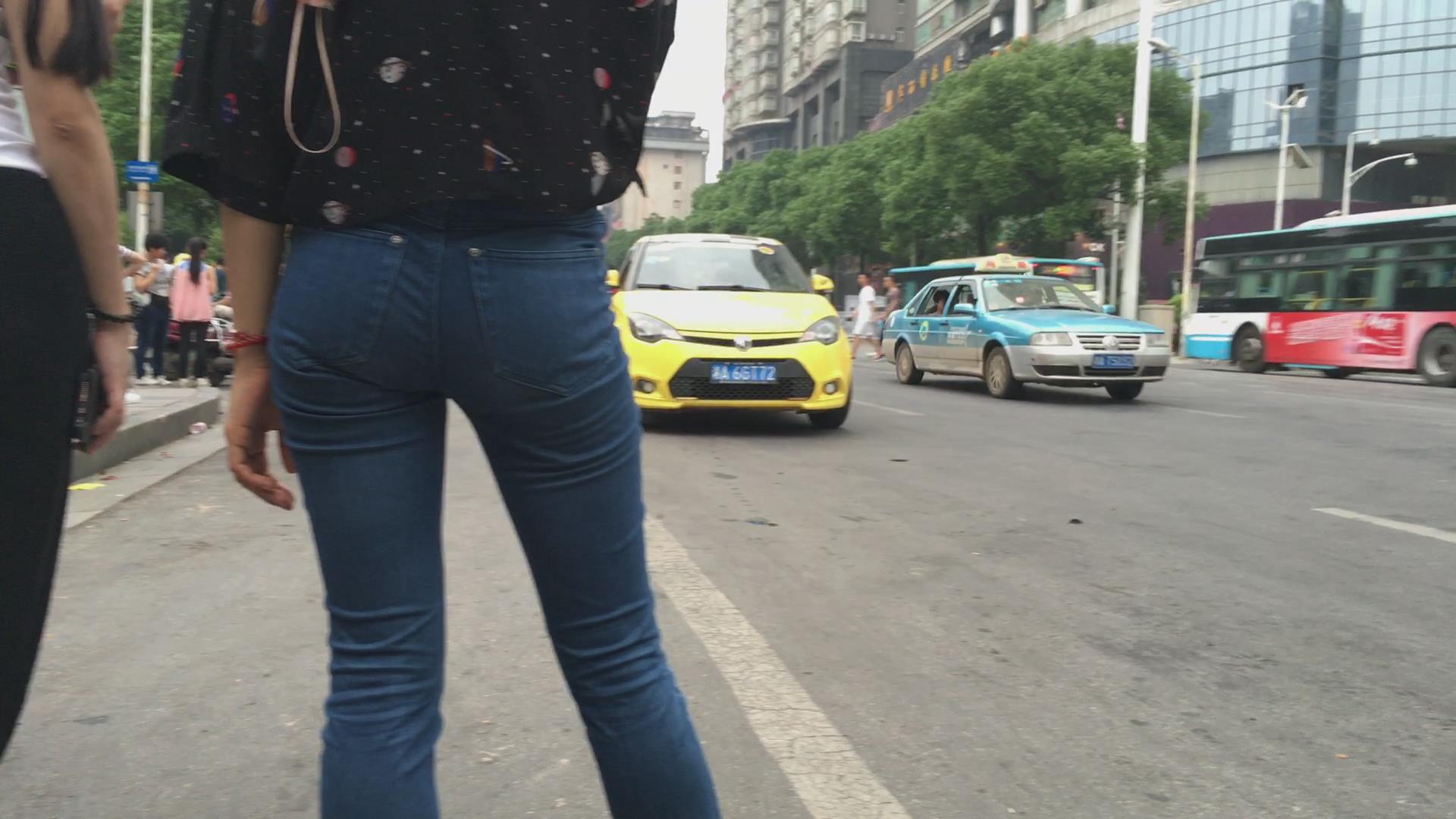 | 街拍路边等车的紧身蓝牛宽臀小妹 编号6113 |