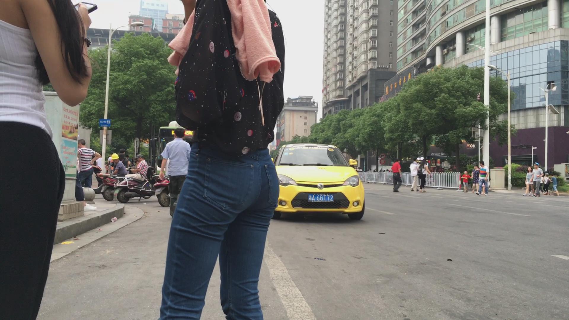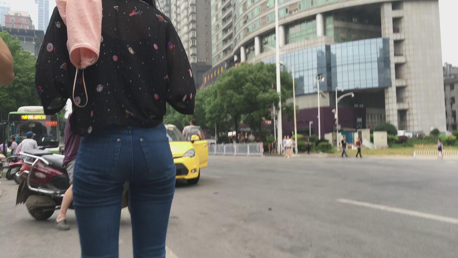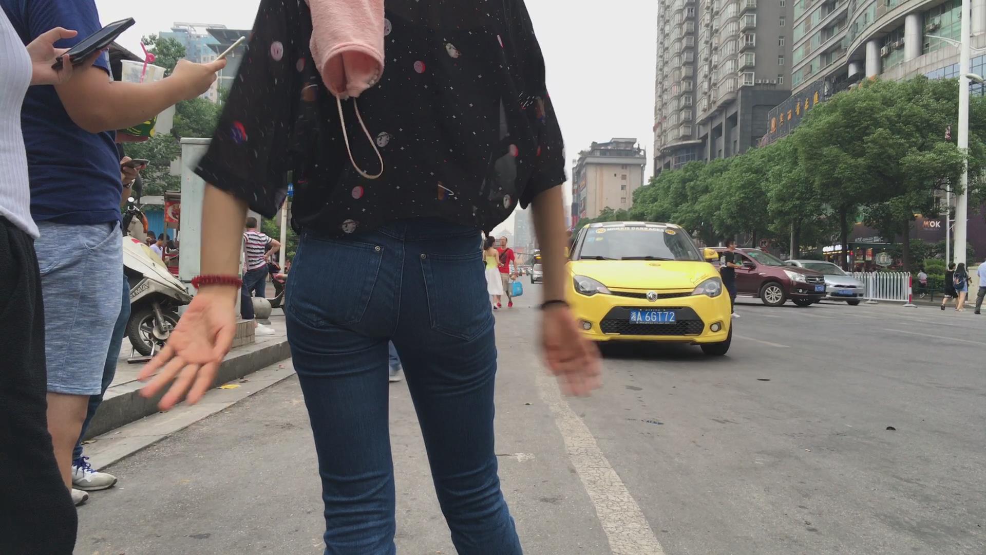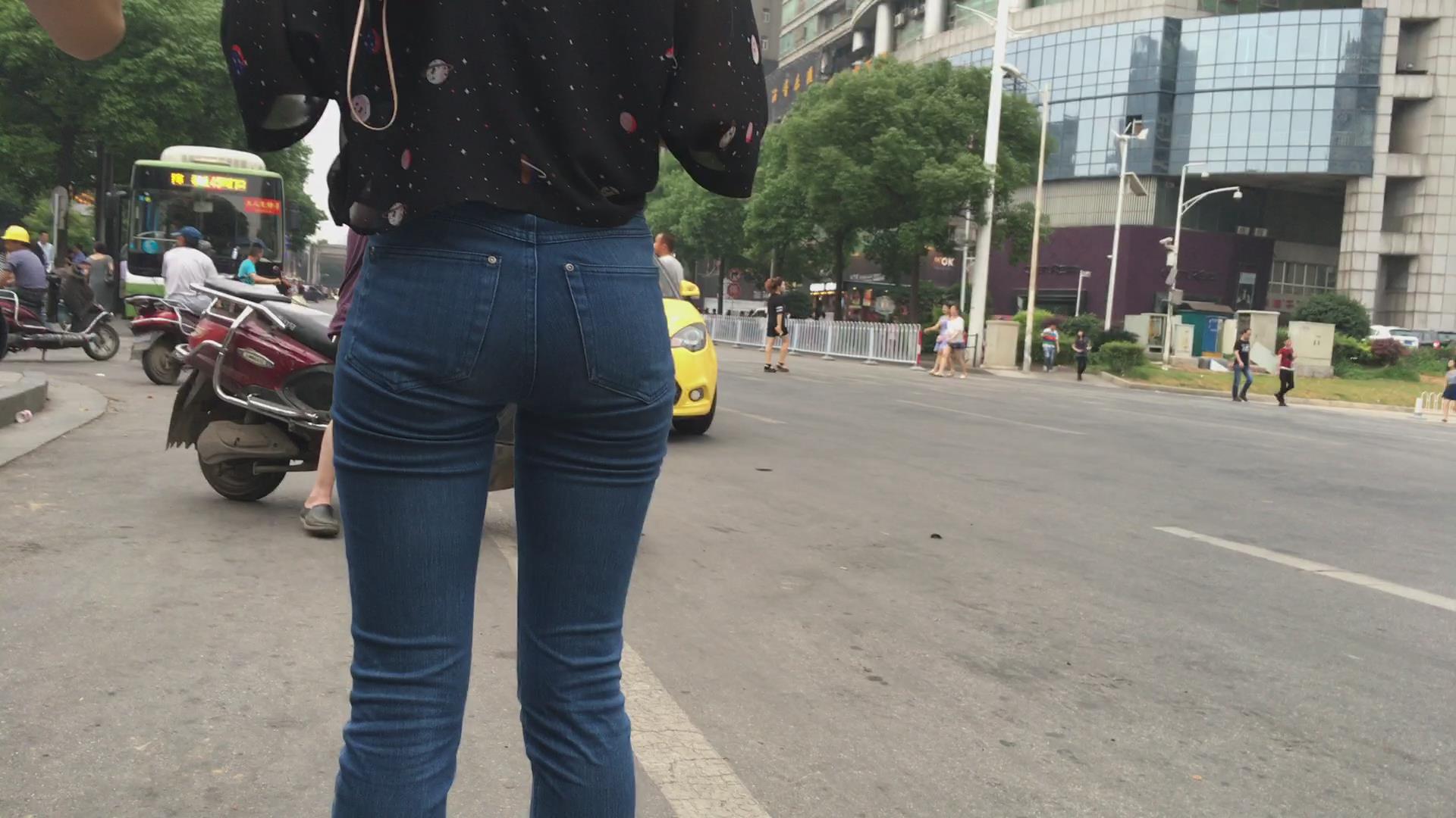 | 街拍路边等车的紧身蓝牛宽臀小妹 编号6113 |