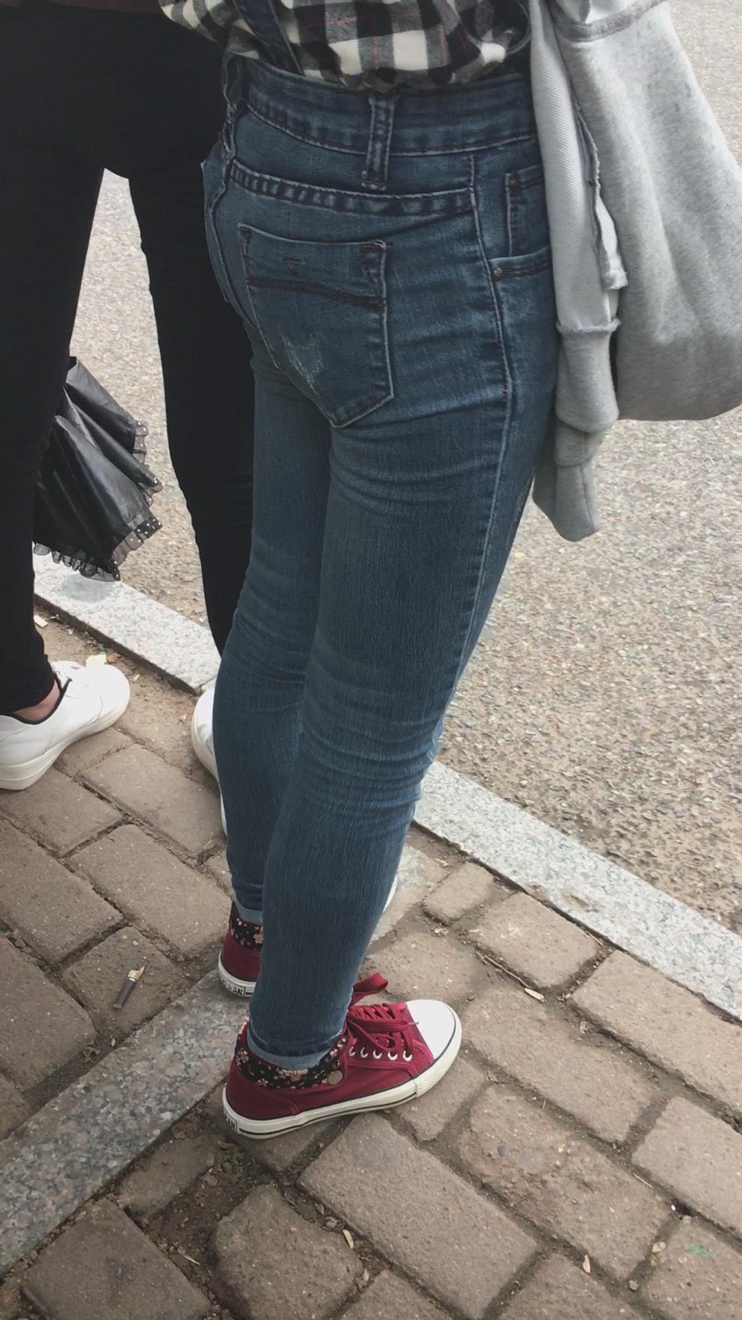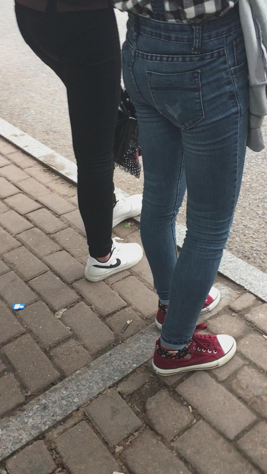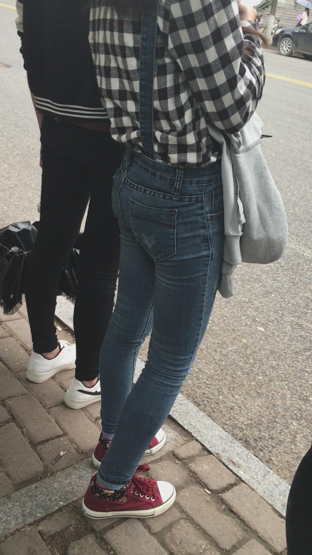 | 等公交车的格子衫紧身蓝牛街拍美女学生妹 编号5295 |