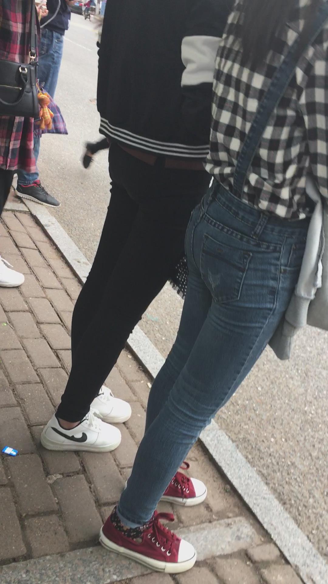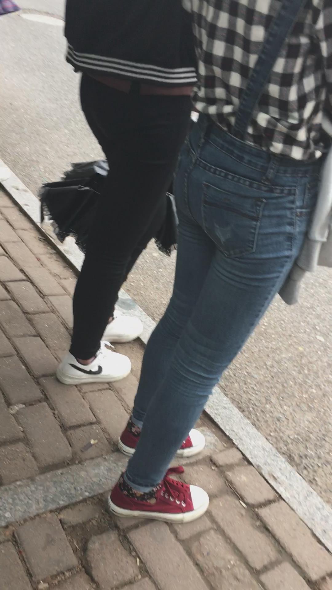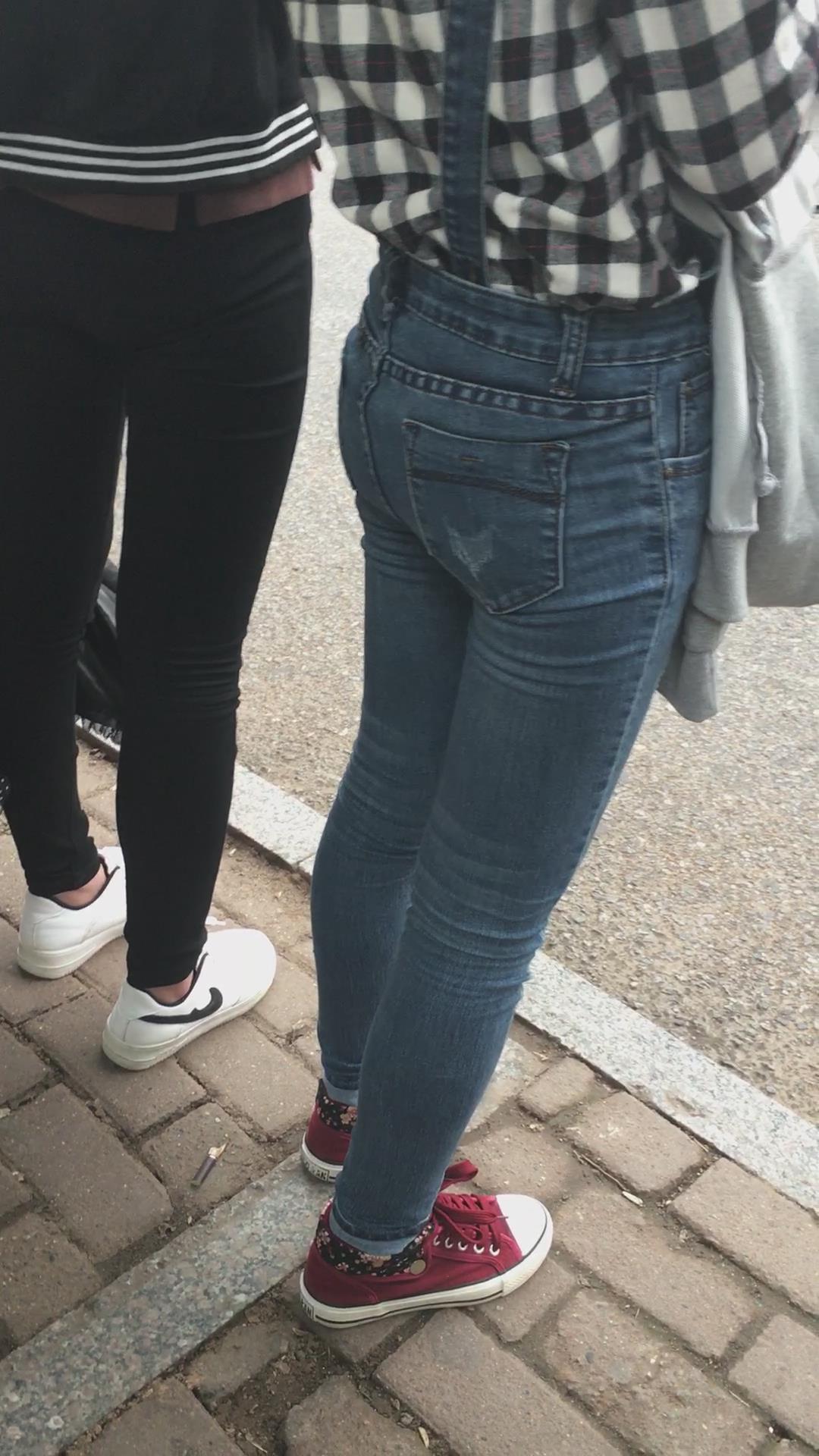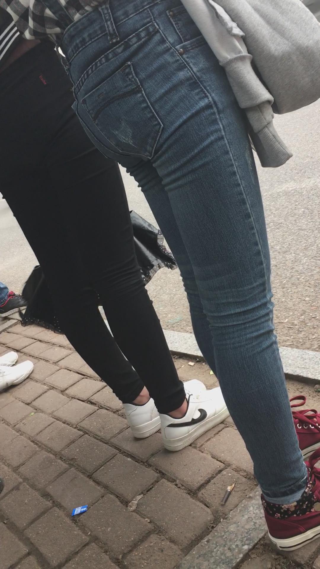 | 等公交车的格子衫紧身蓝牛街拍美女学生妹 编号5295 |