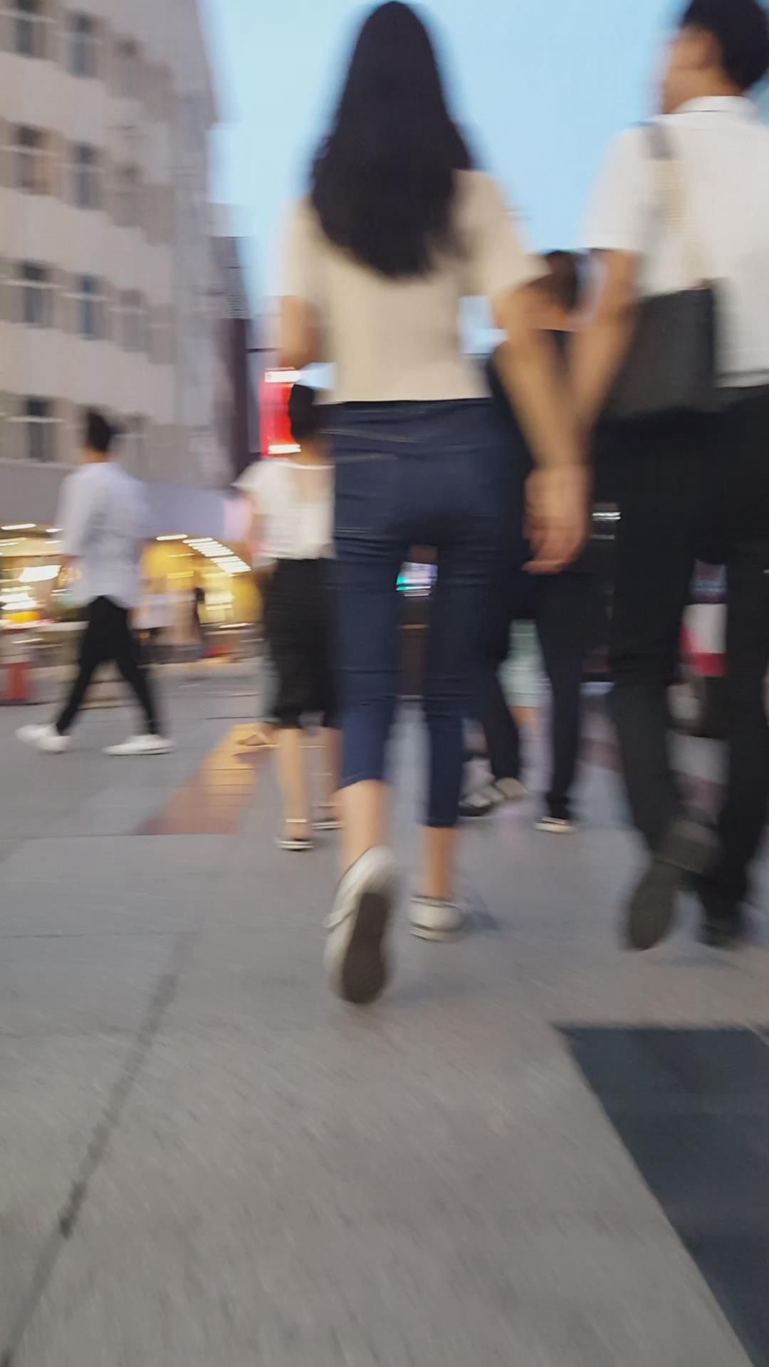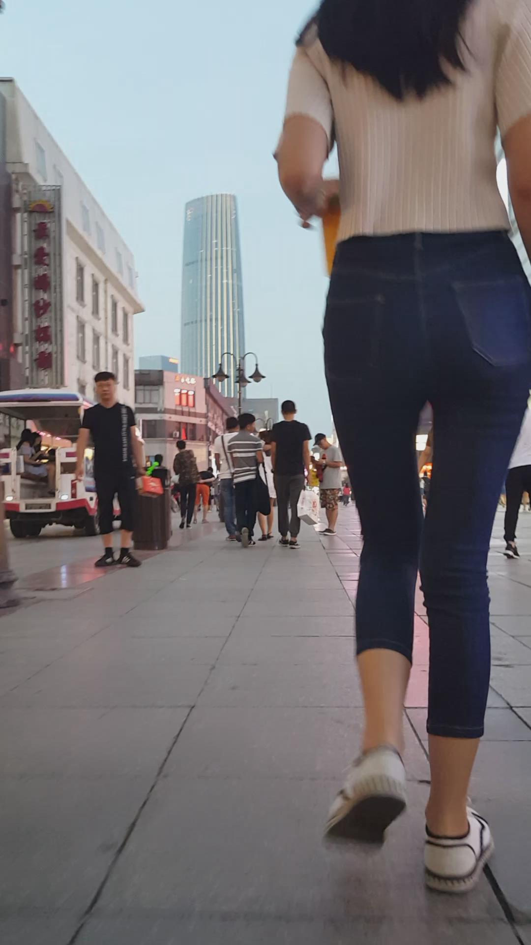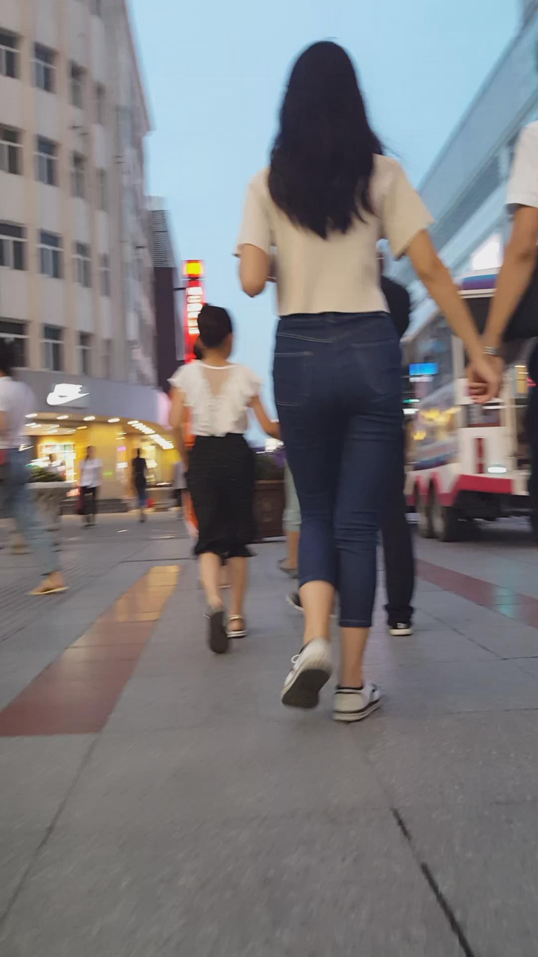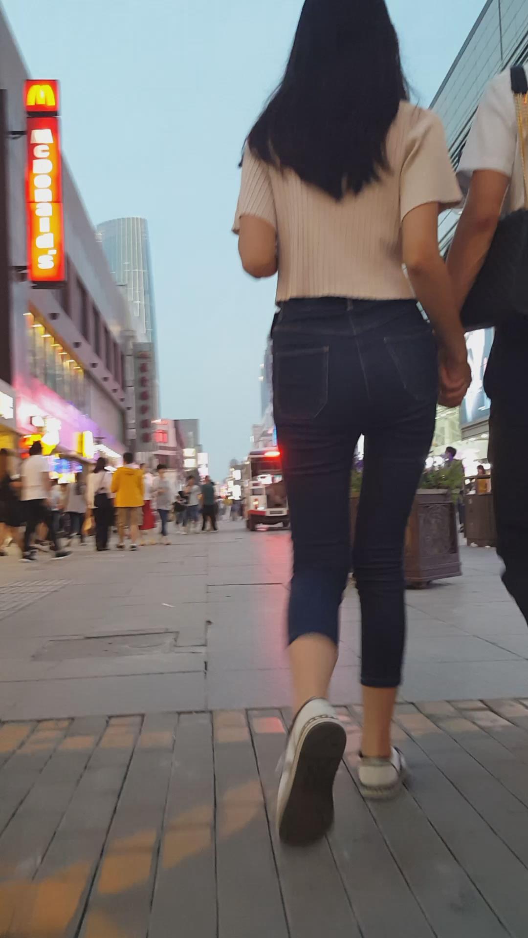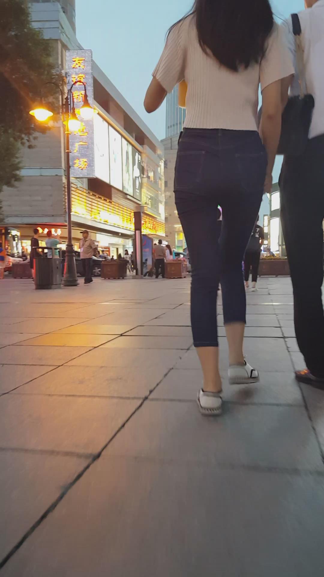 | 七分紧身蓝牛小妹陪男友压马路 编号6114 |