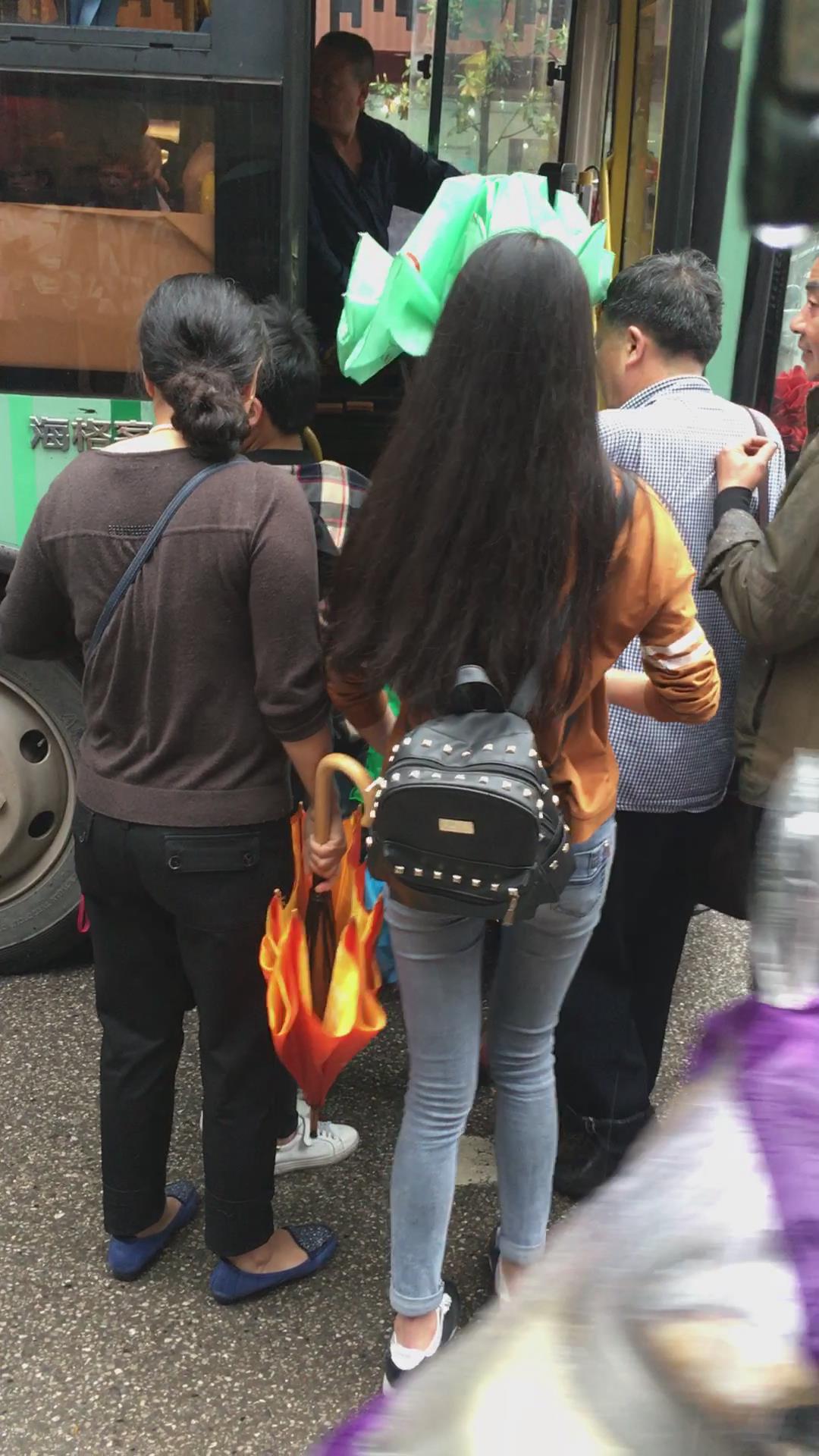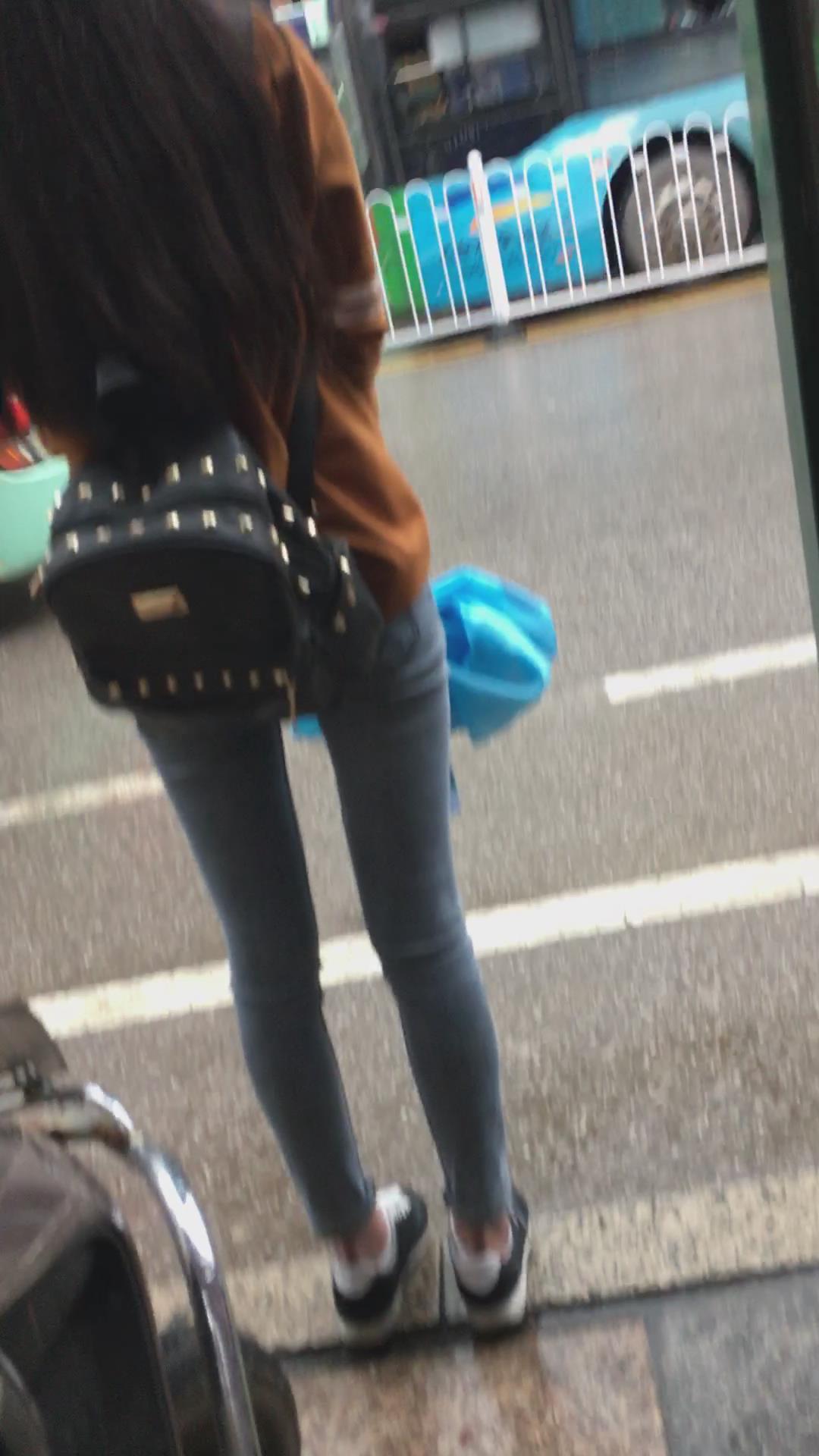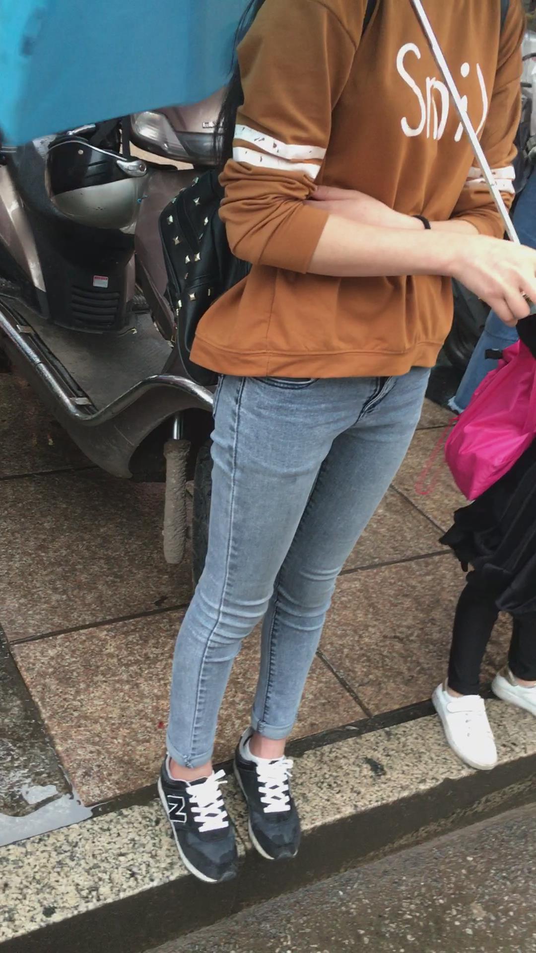 公交站等车的紧身蓝牛学生妹 编号5312 |
