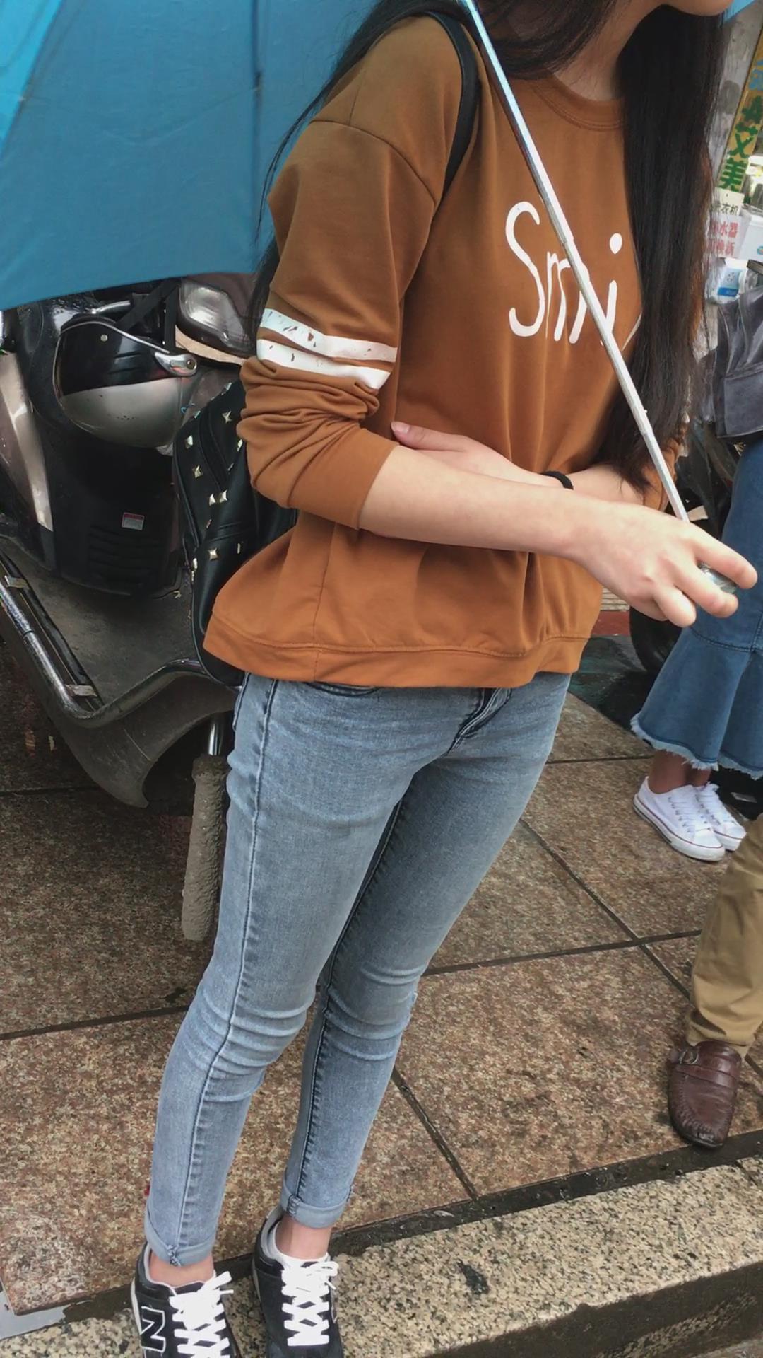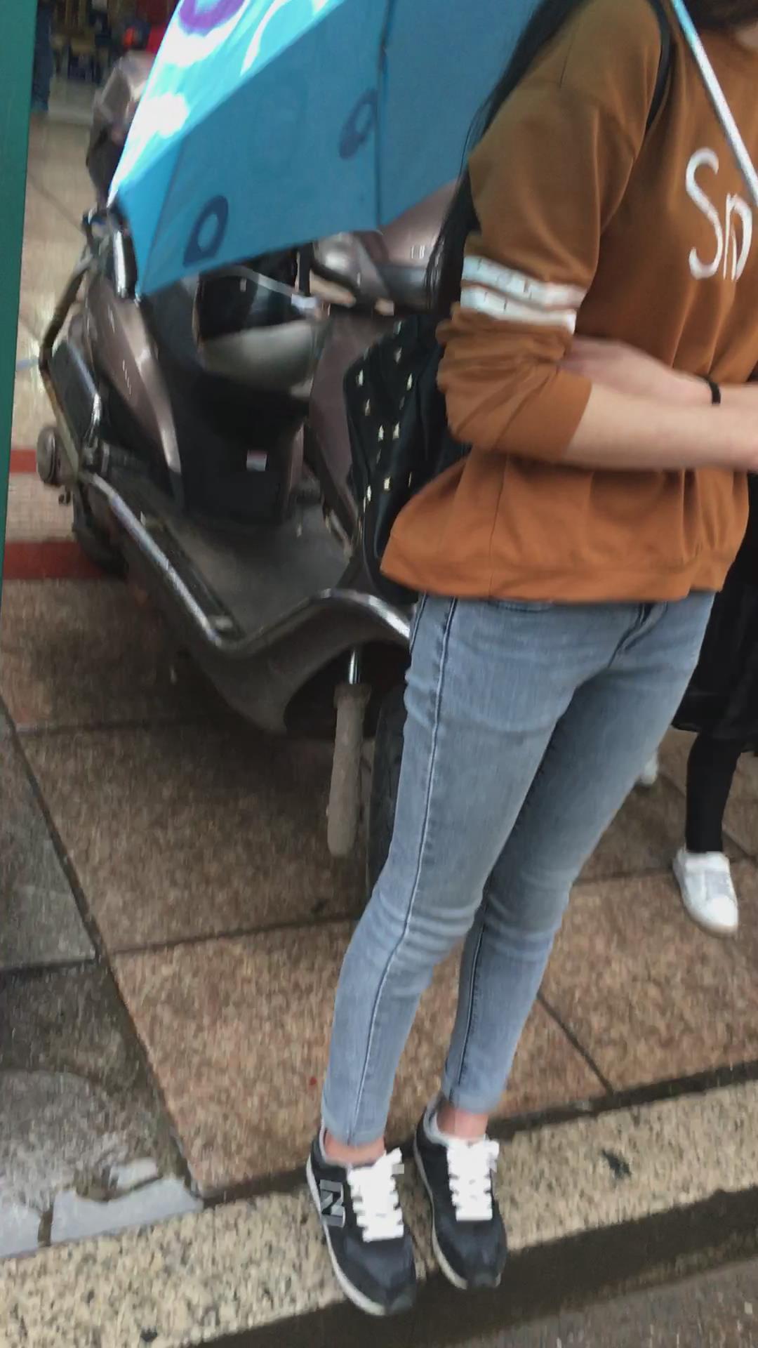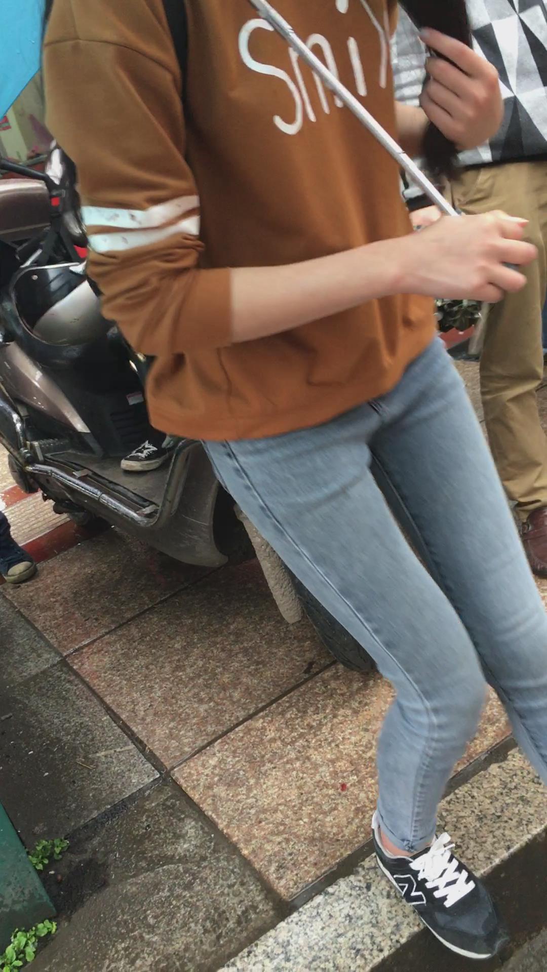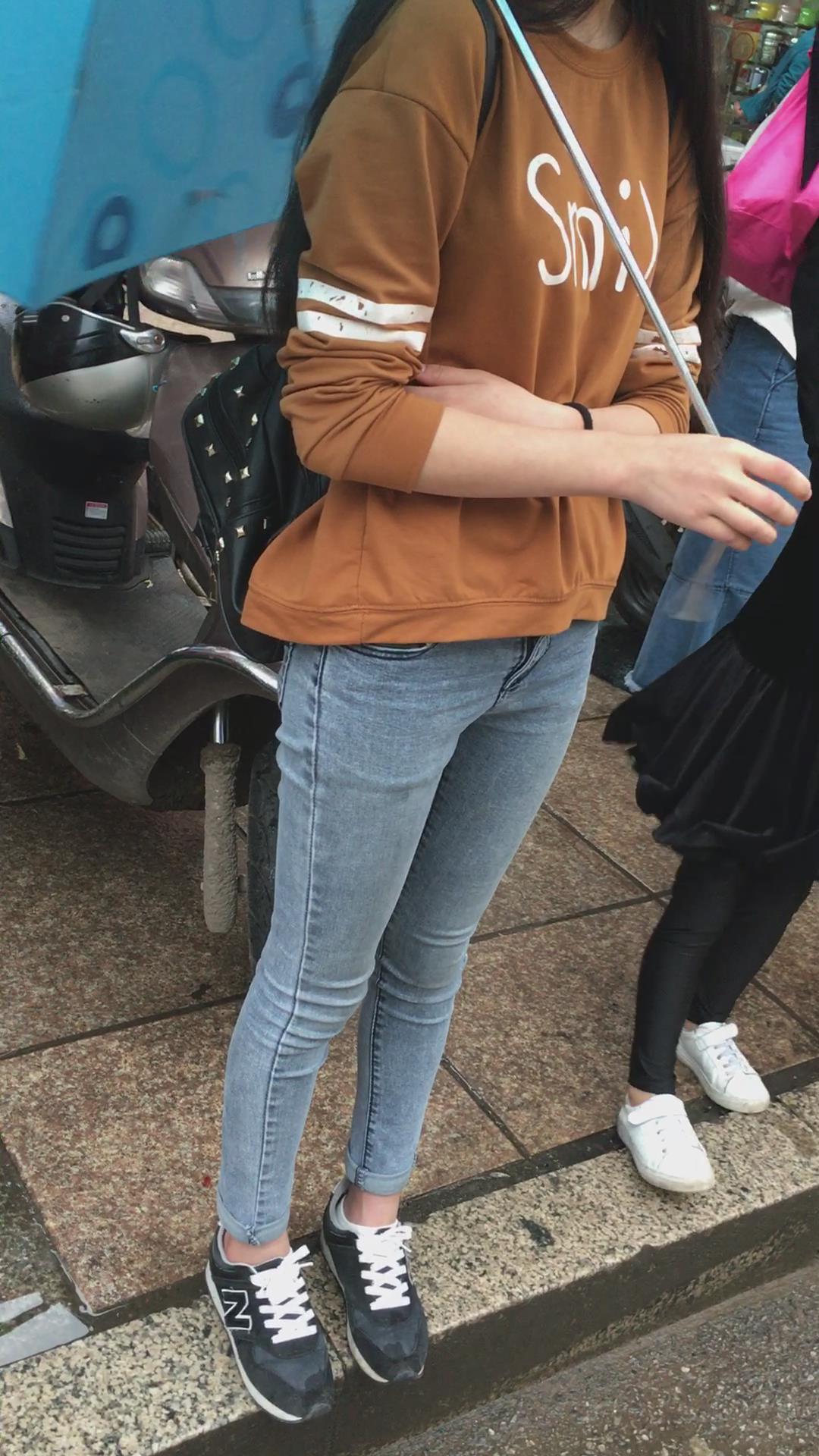公交站等车的紧身蓝牛学生妹 编号5312 |