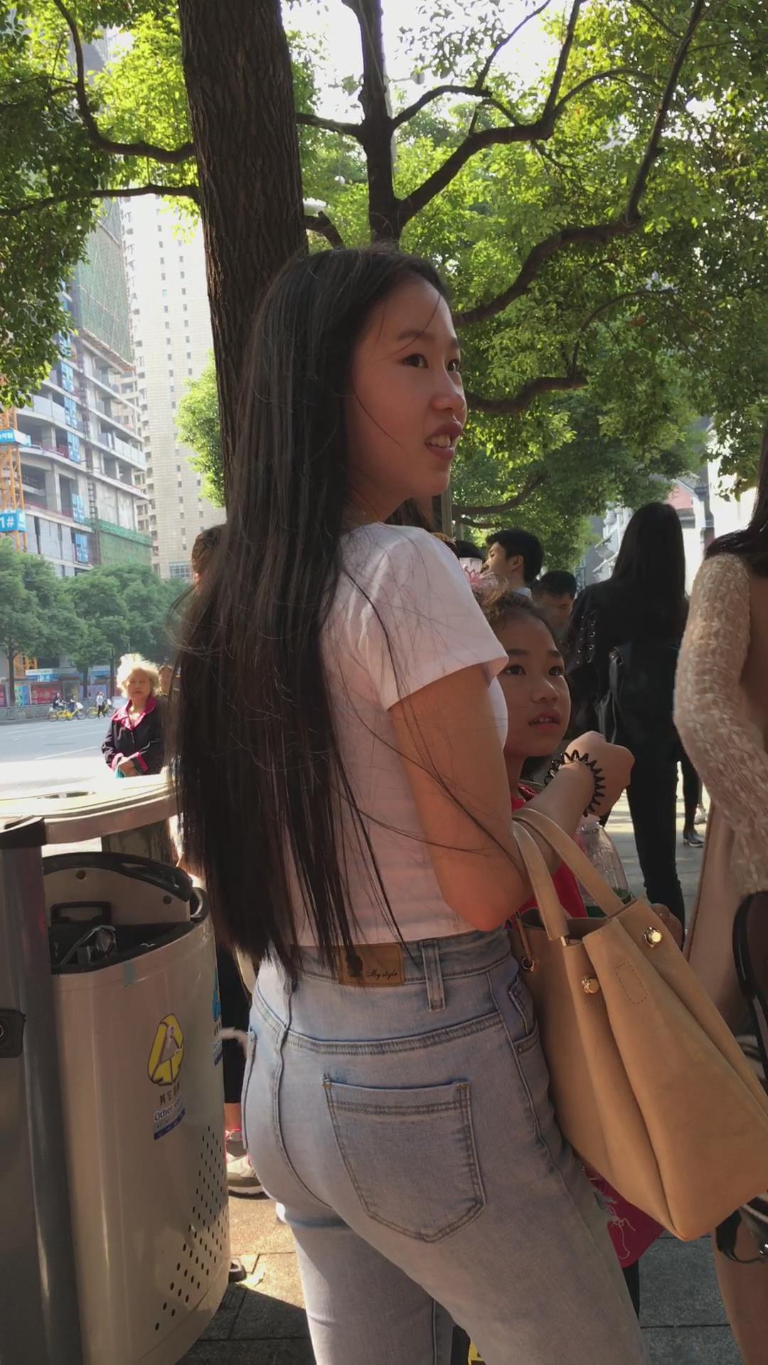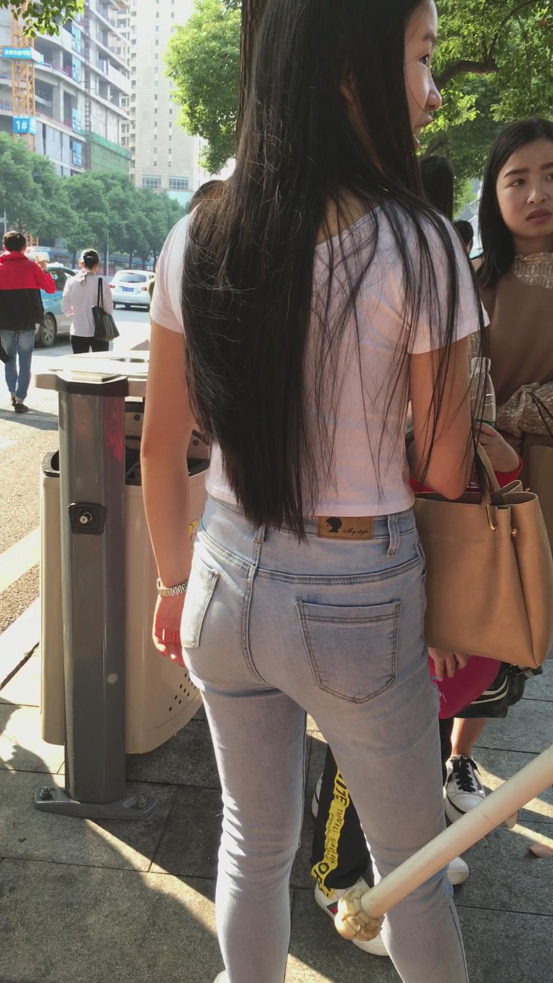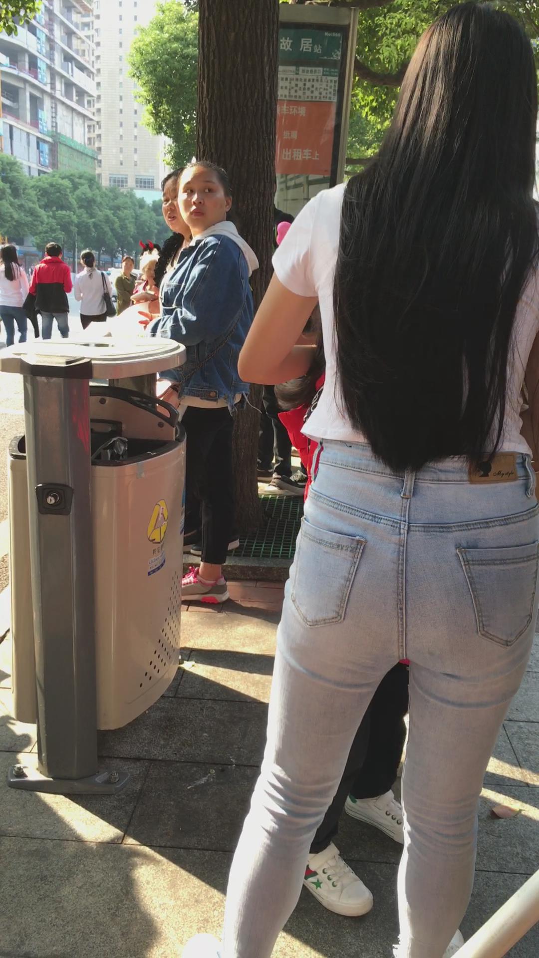 极品白T恤蓝色牛仔裤翘臀街拍美女 编号5330 |