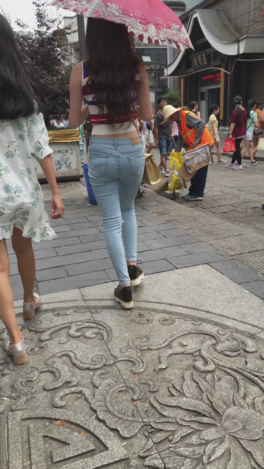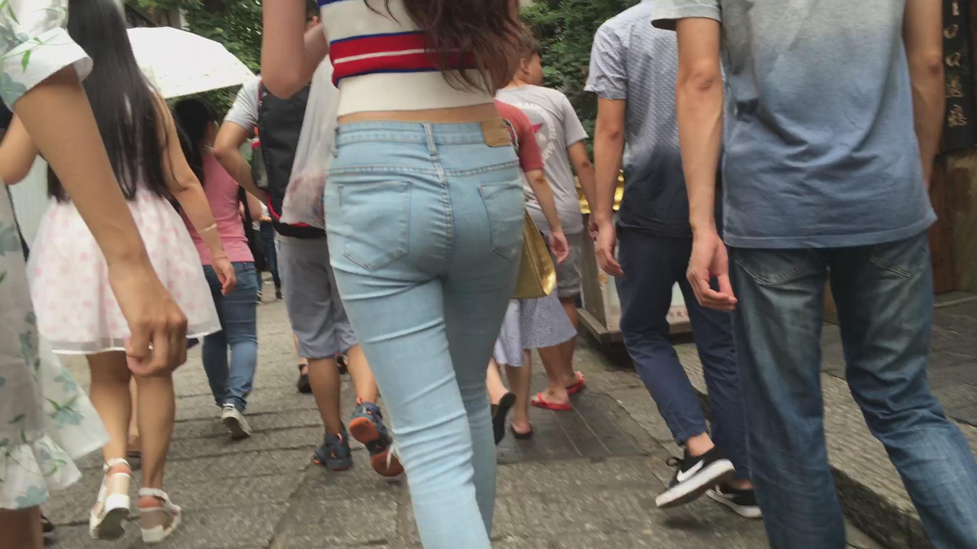 | 街拍小清新紧身蓝牛好身材妹子 编号6116 |