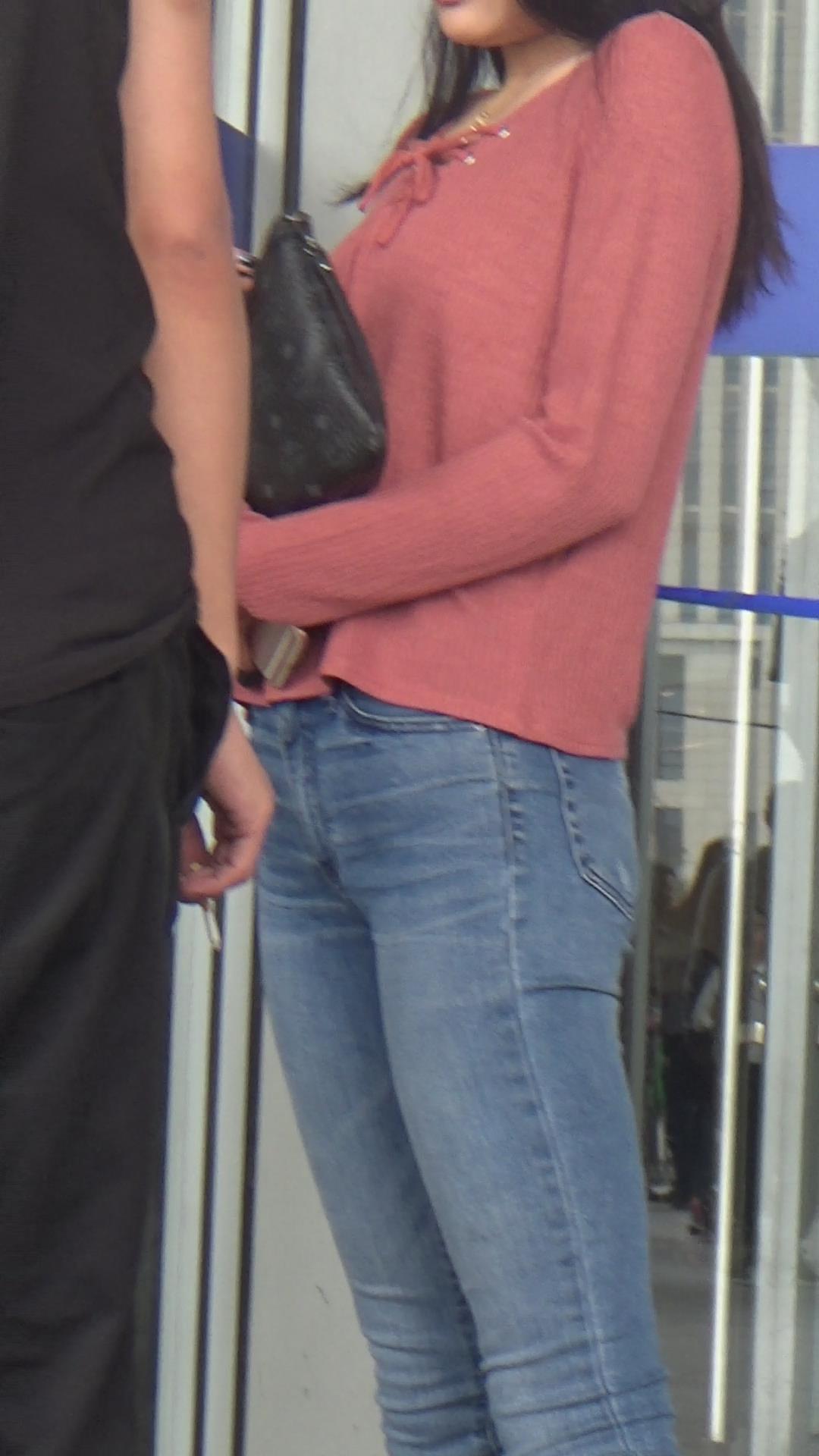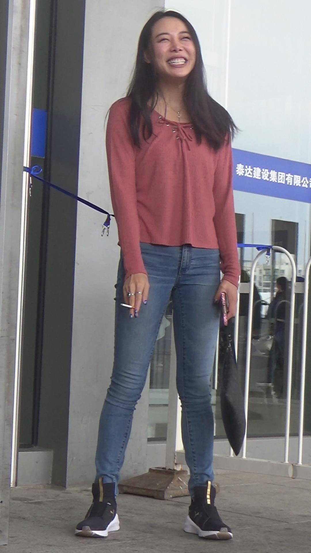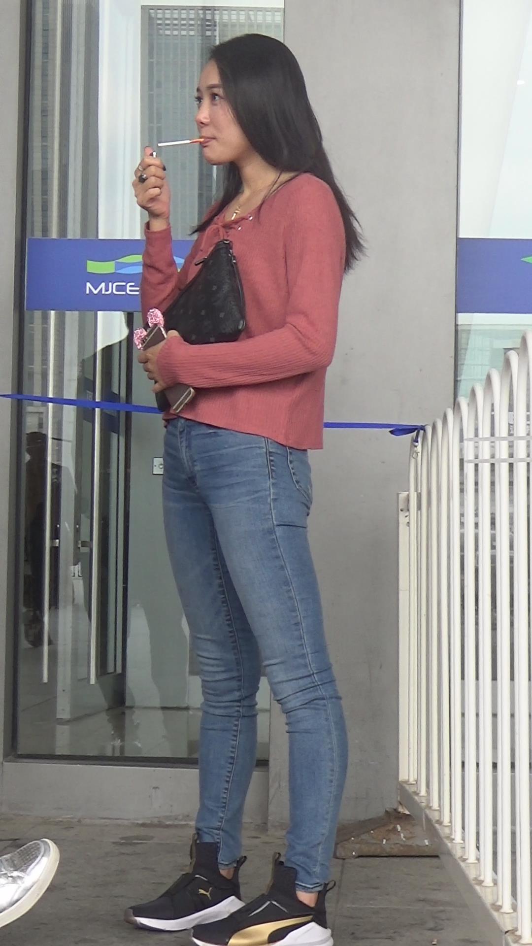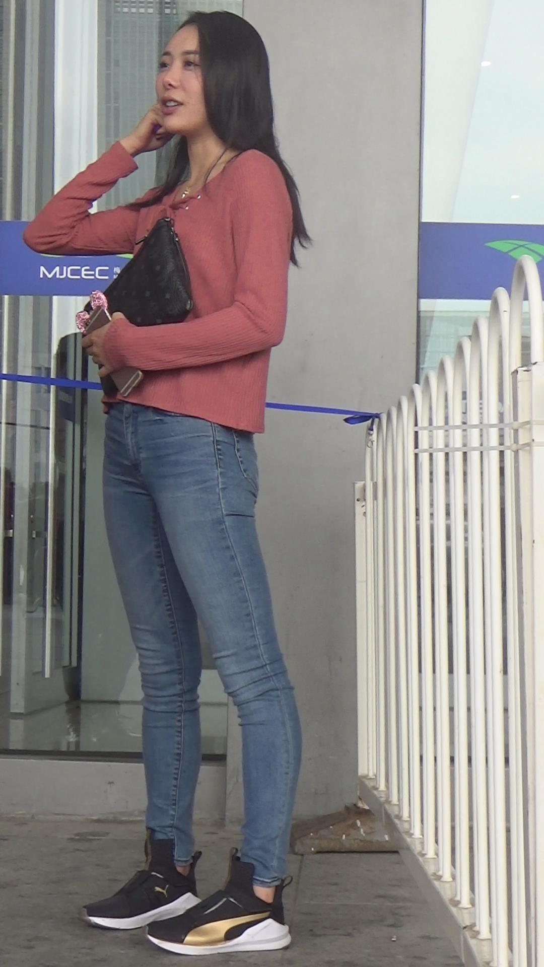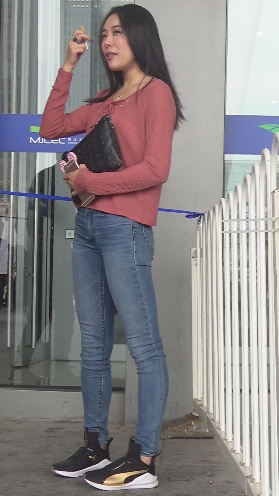 | 极品基本蓝色牛仔裤运动鞋粉衣街拍美女 编号5339 |