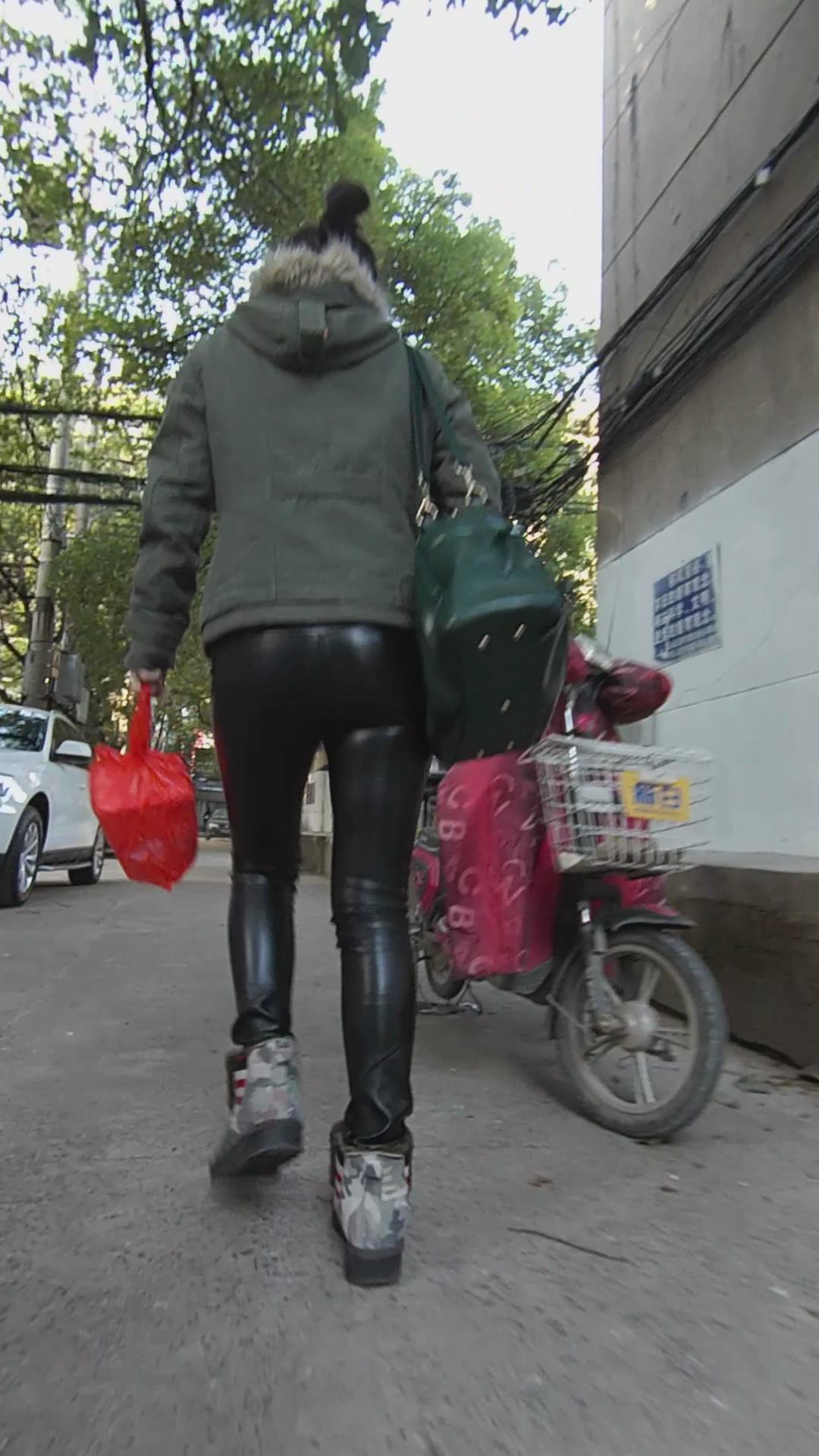| 街拍黑色紧身皮裤美眉 编号5342 |