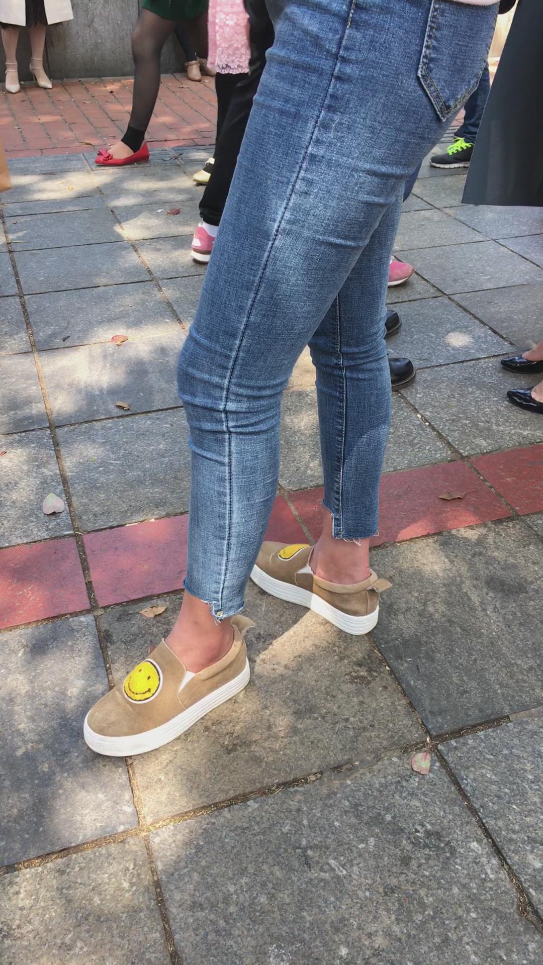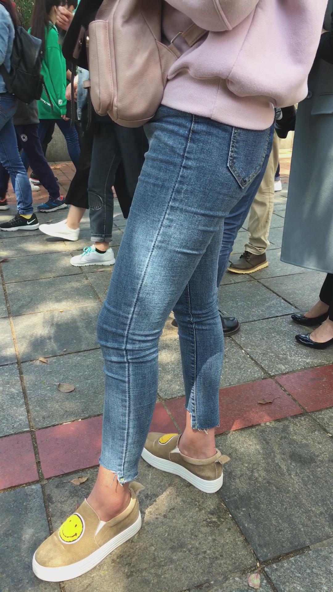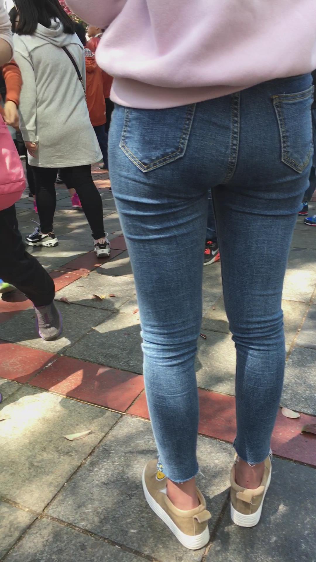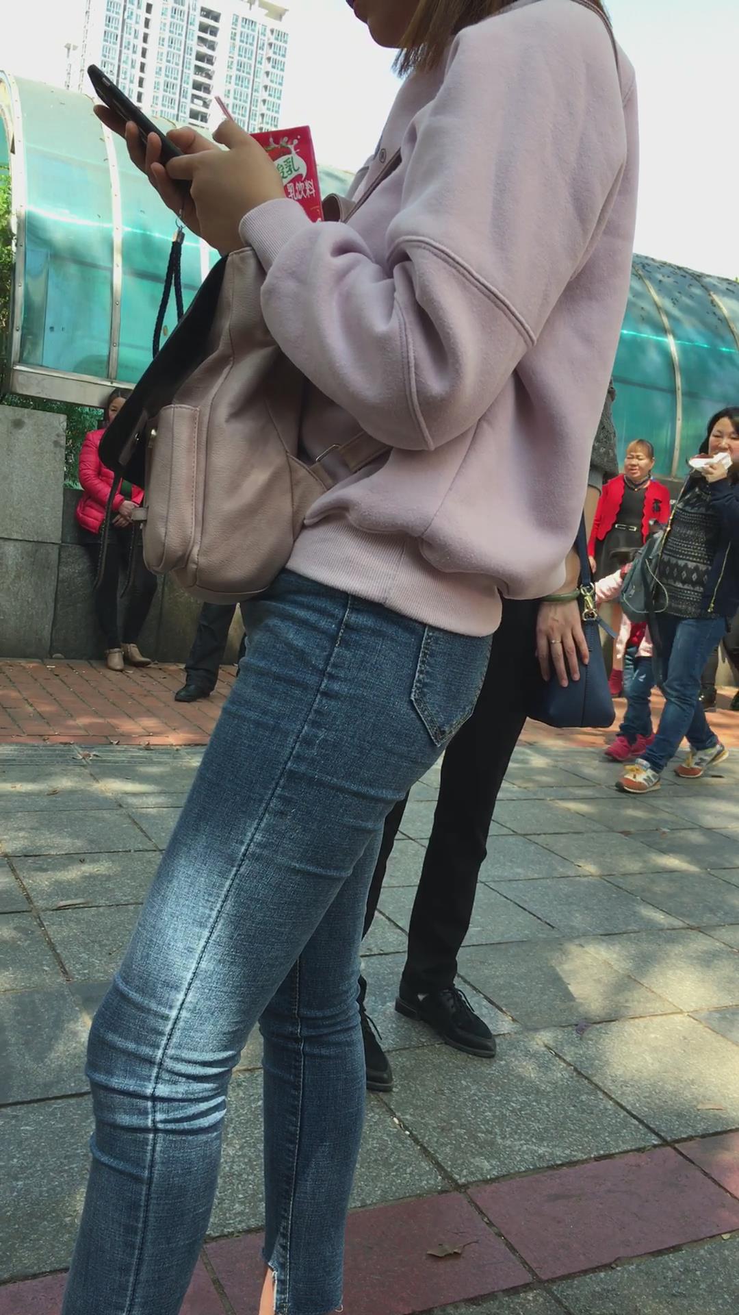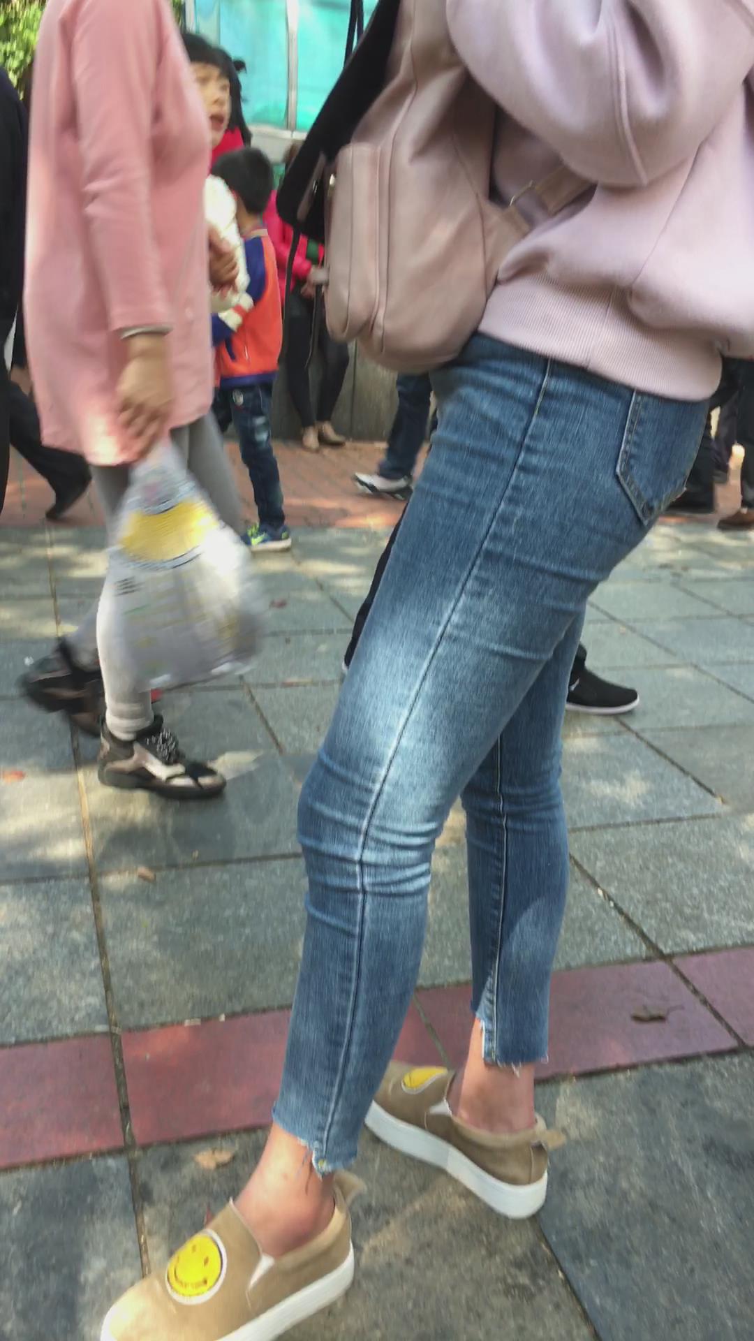 街拍超紧身蓝色牛仔裤圆臀美女 编号5350 |
