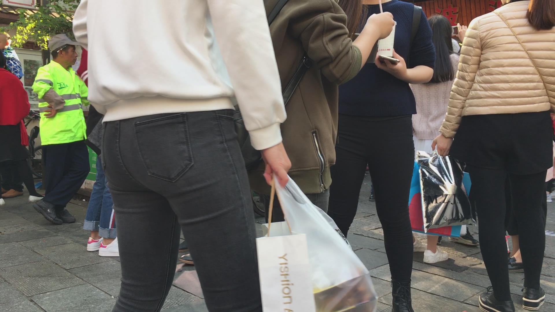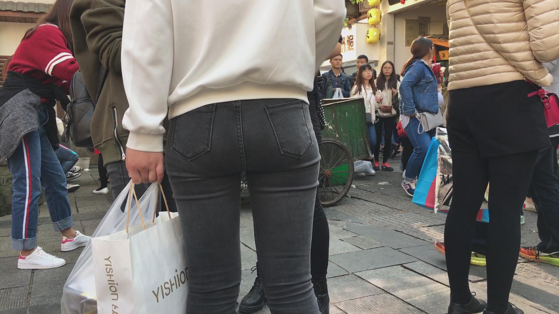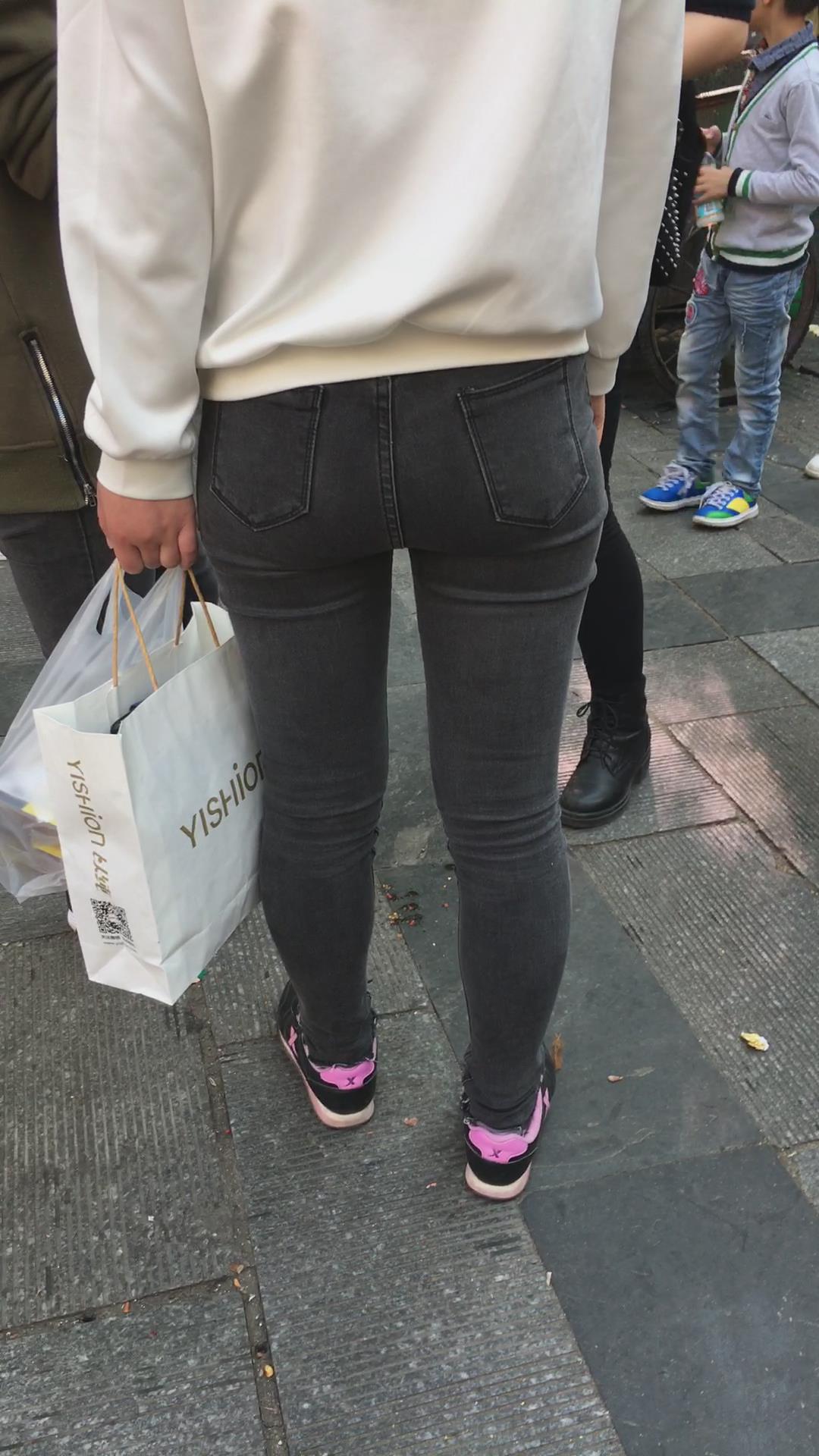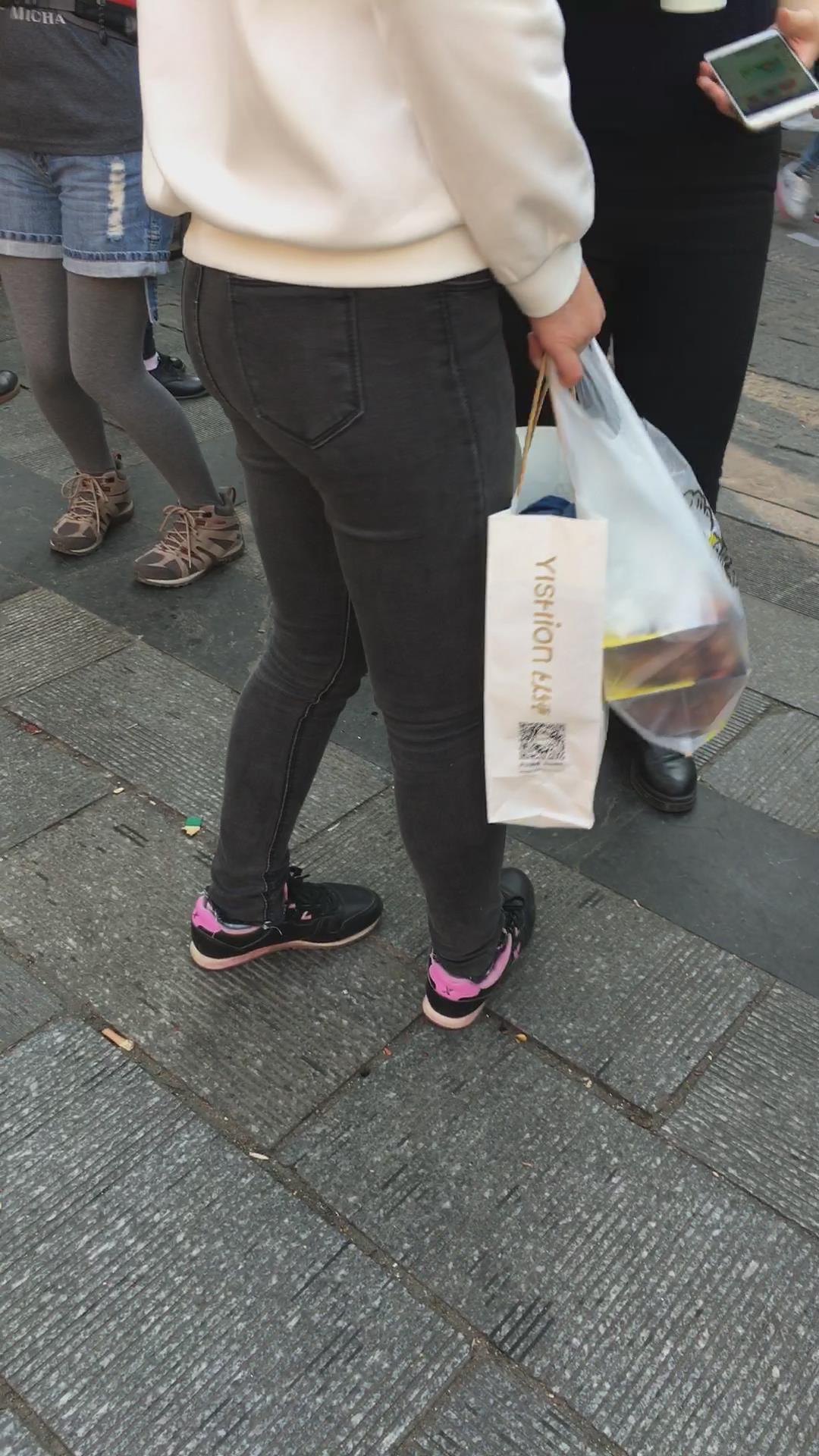街拍极品黑色紧身裤宽臀美眉 编号5355 |