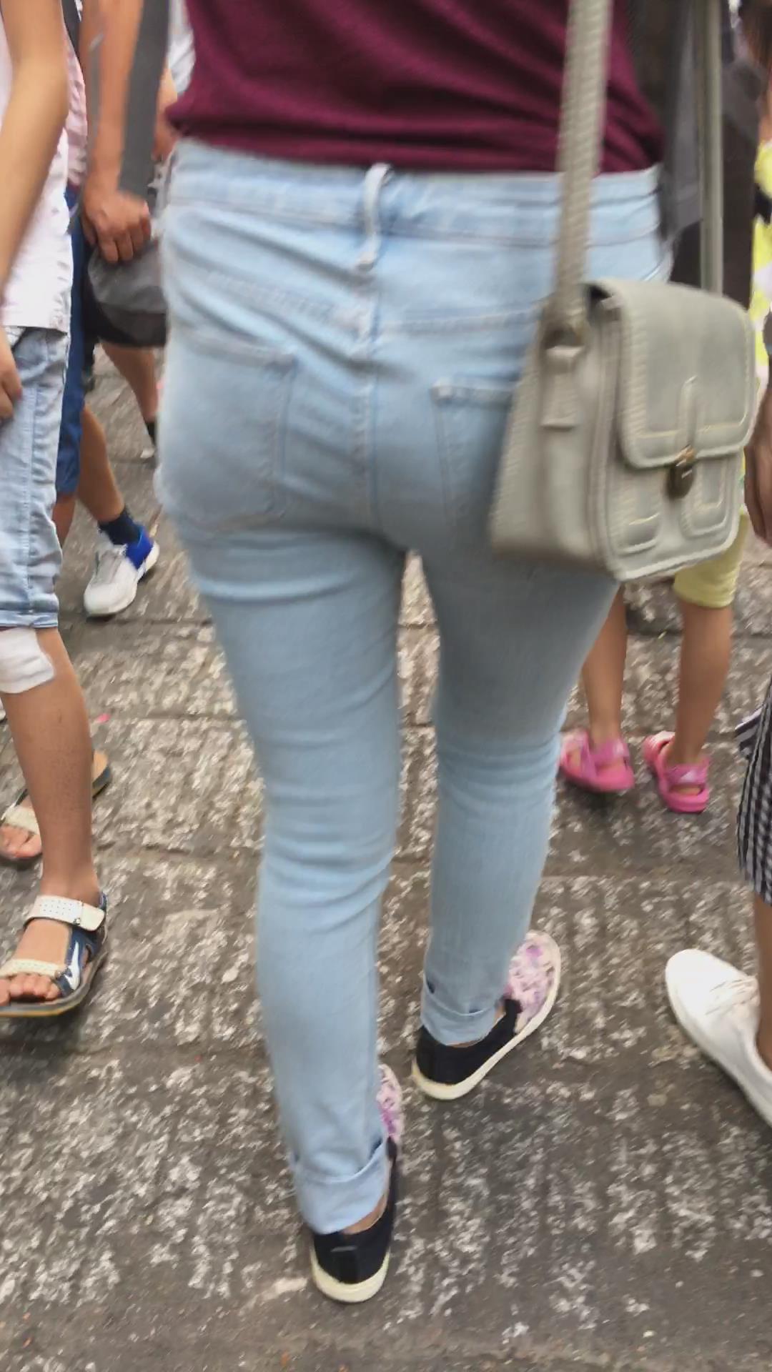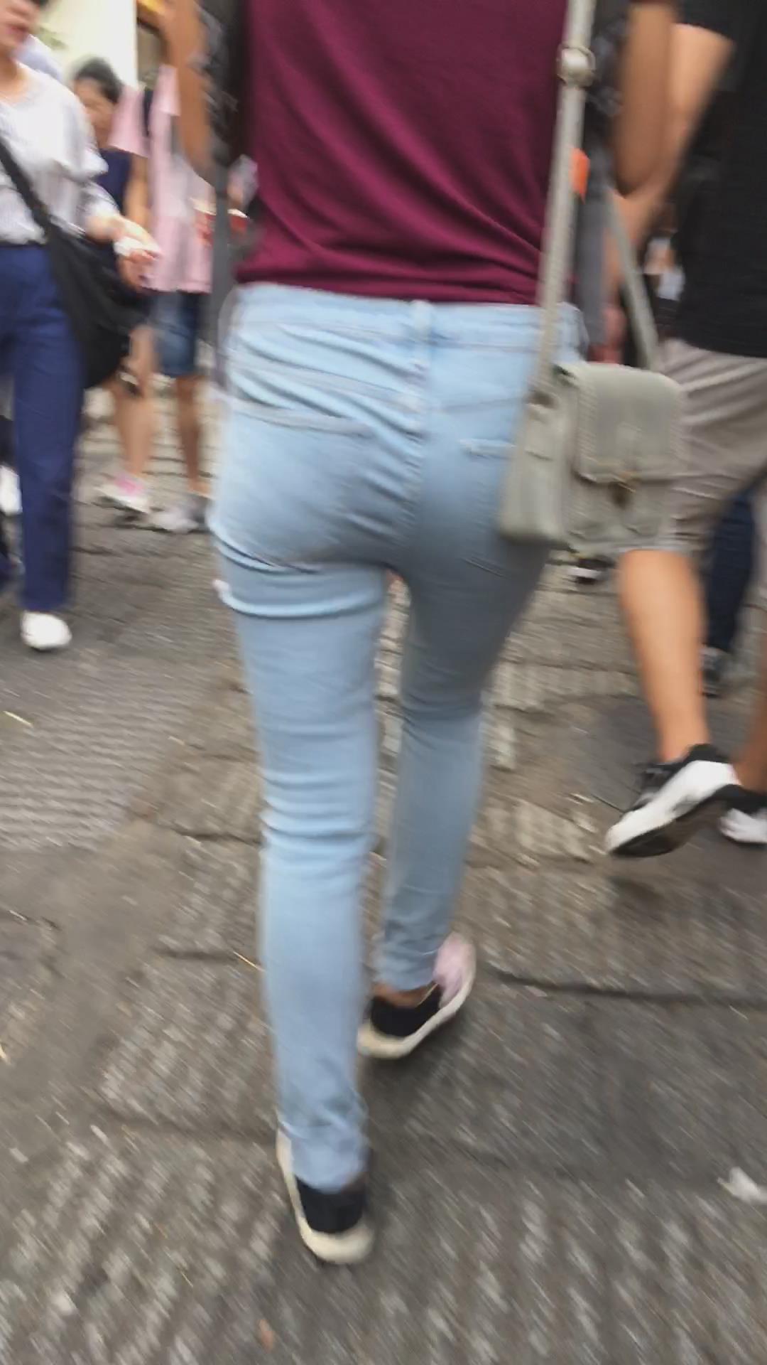 街拍紧身蓝色牛仔裤妹纸 编号5379 |