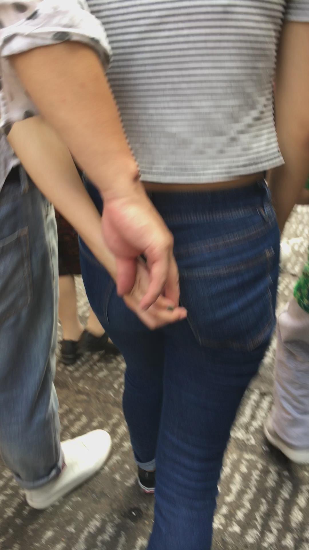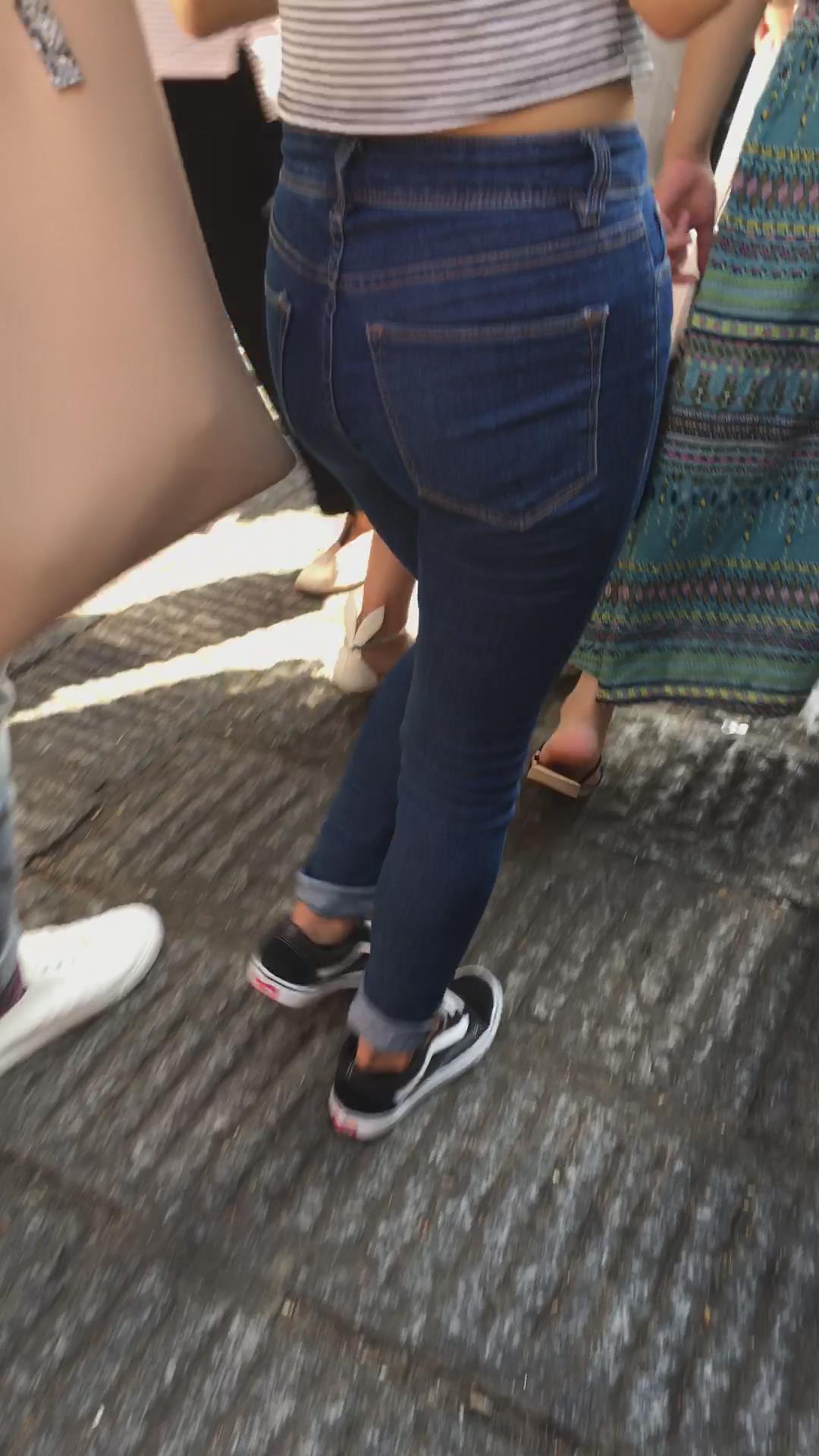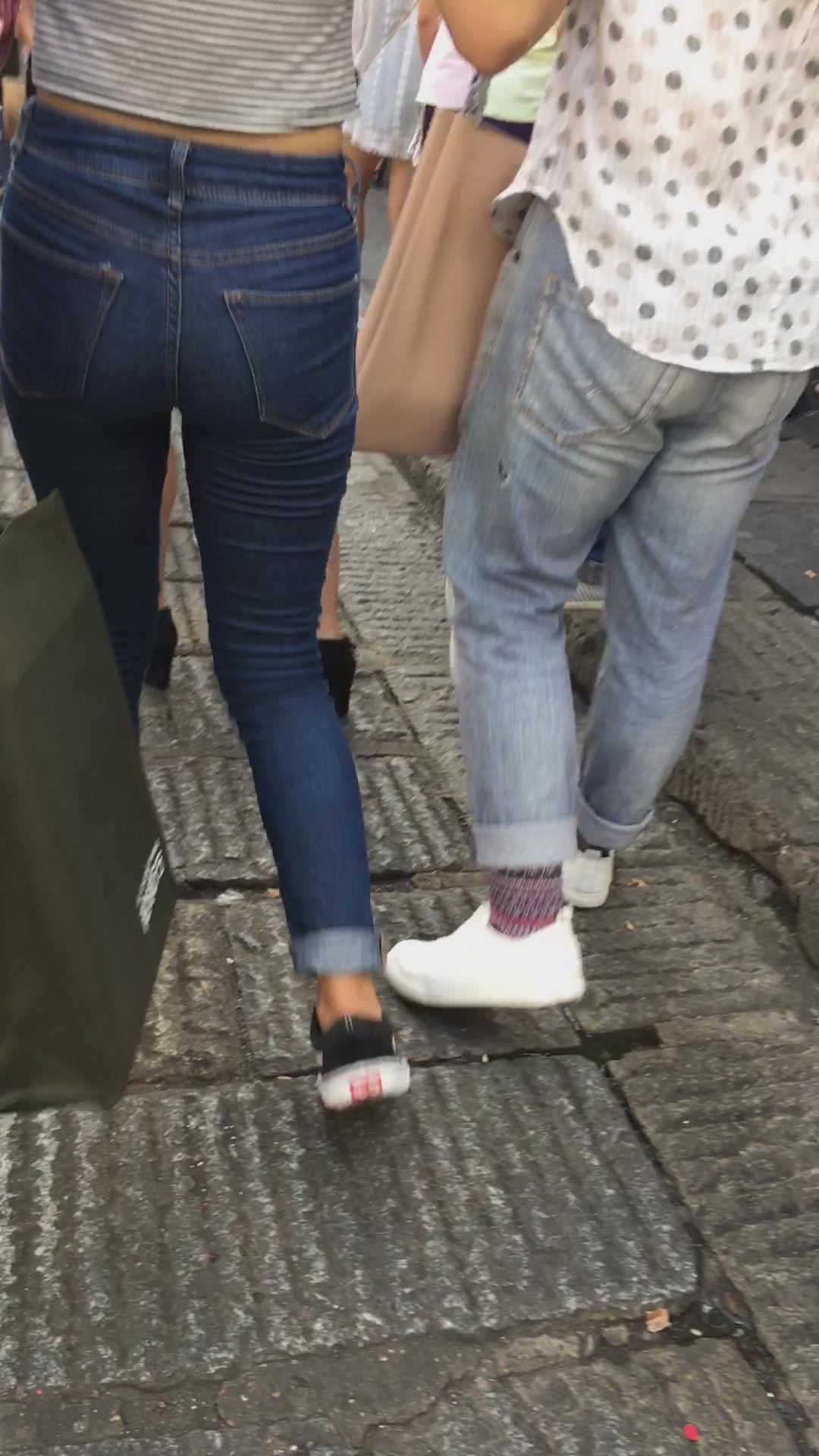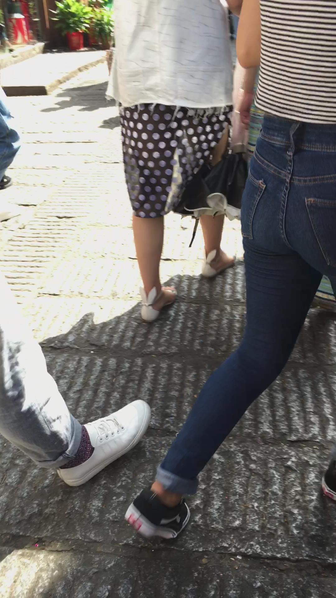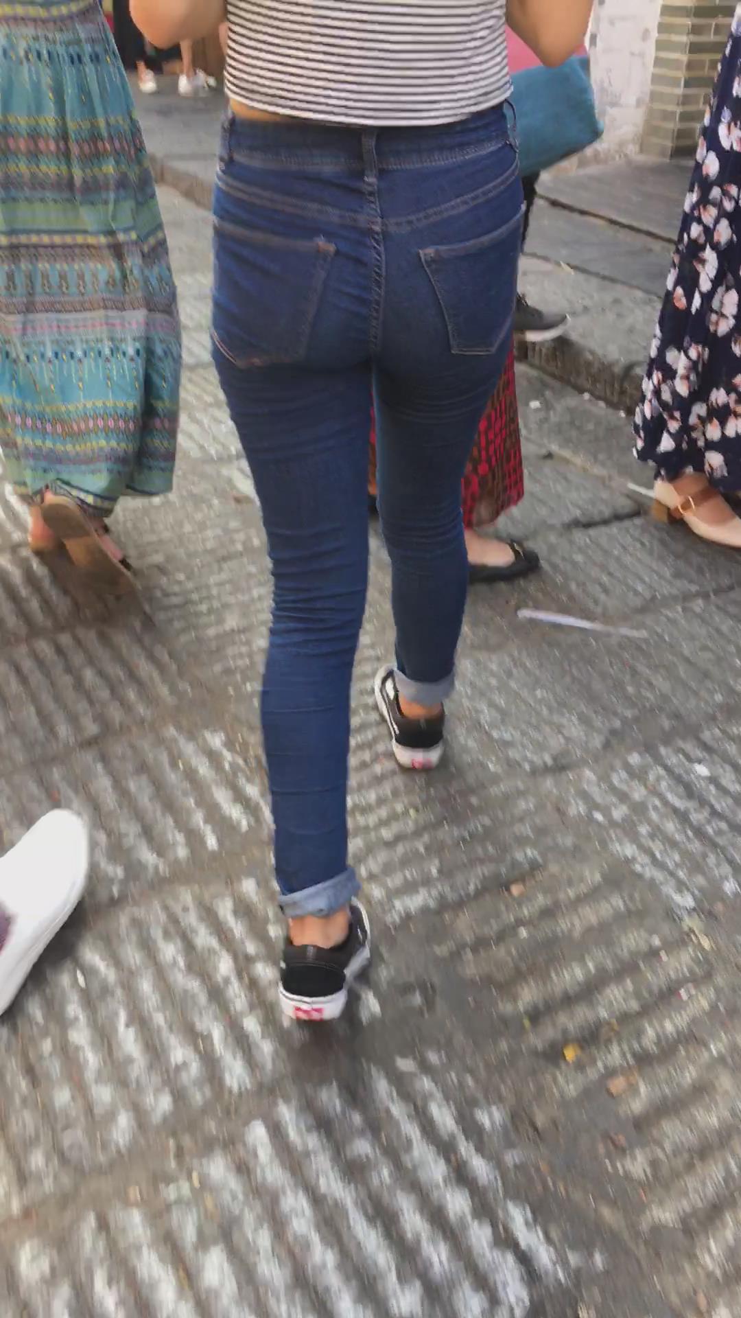 街拍圆臀紧身蓝色牛仔裤美眉 编号5381 |