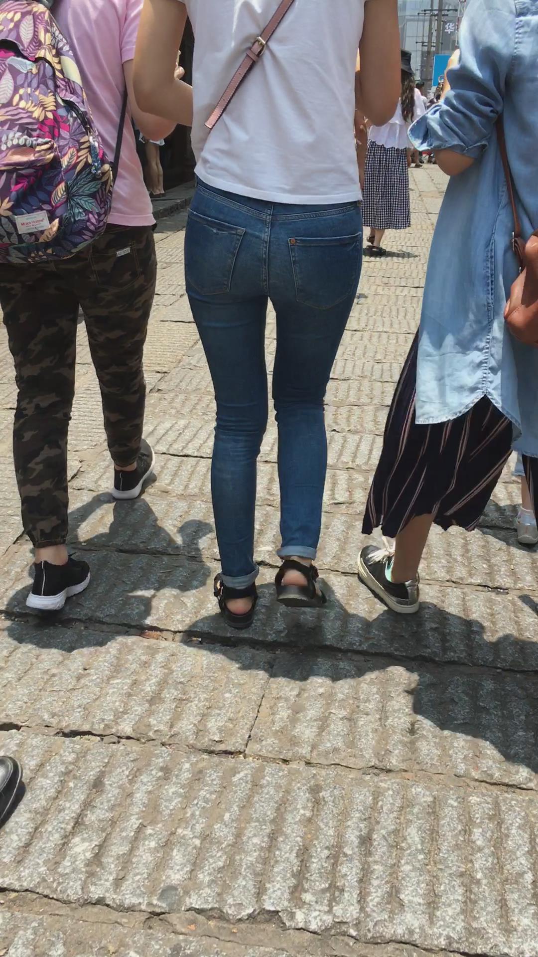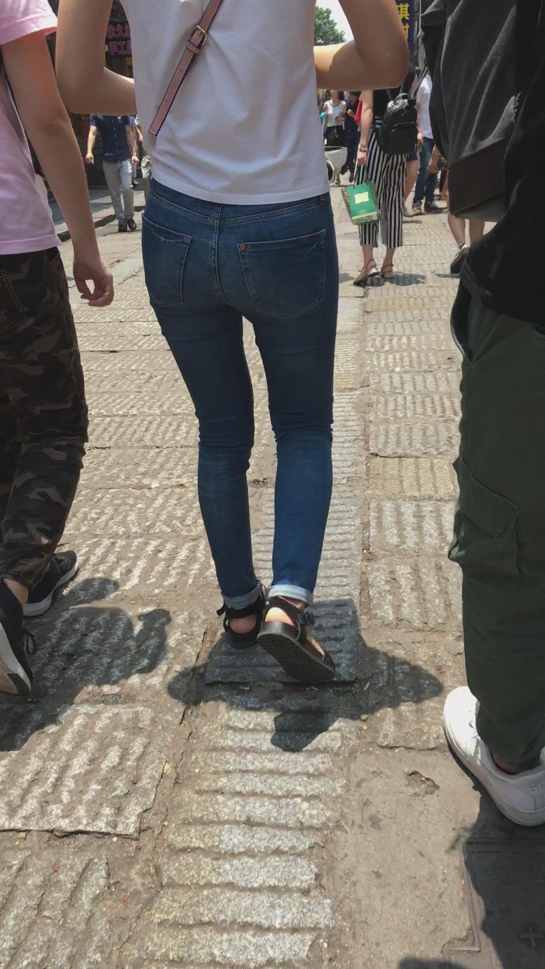 街拍圆润紧身蓝色牛仔裤美眉 编号5429 |