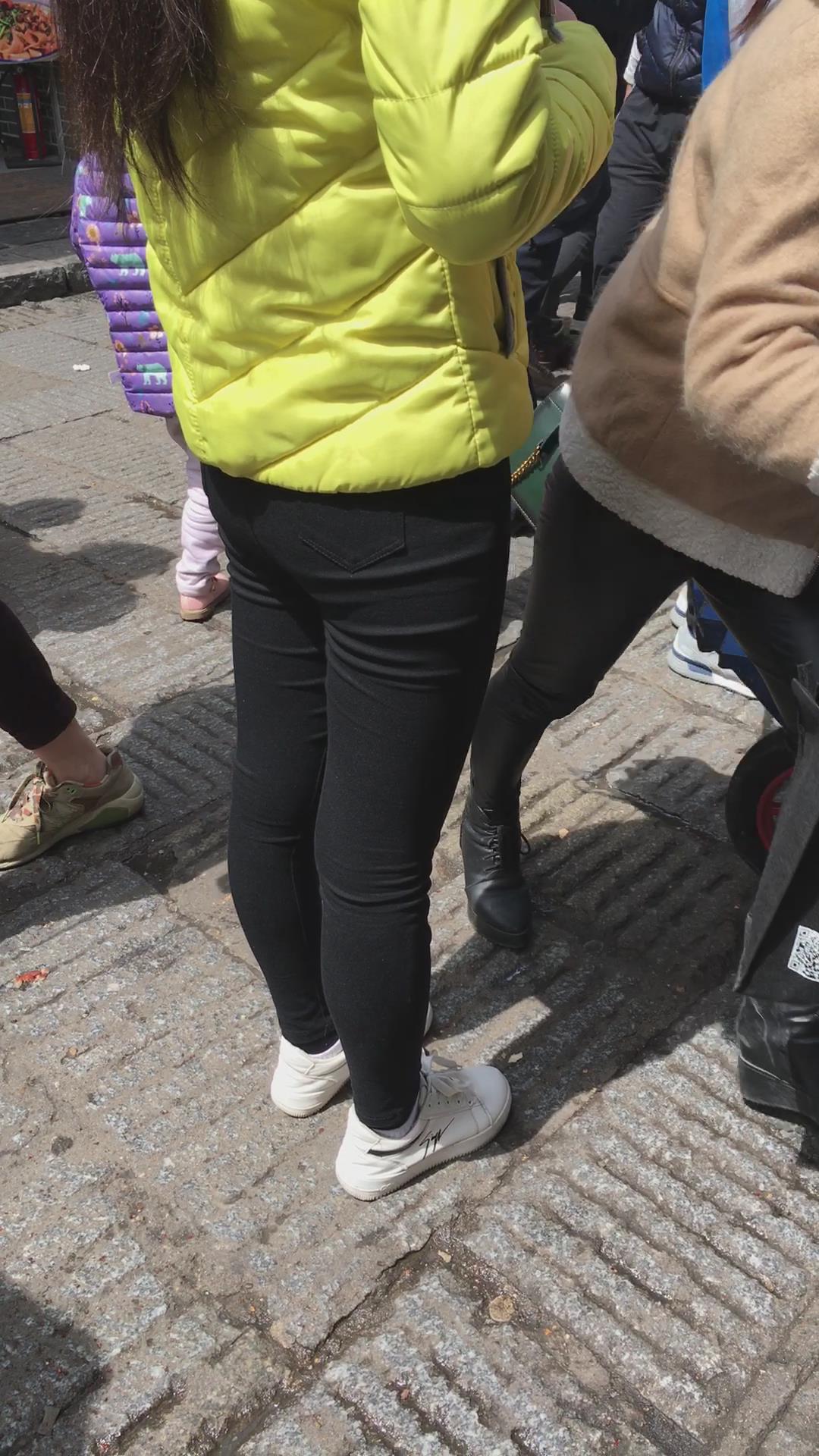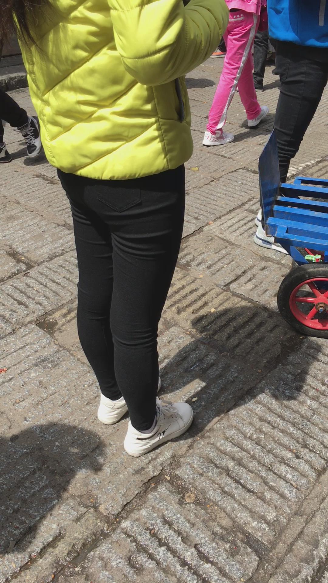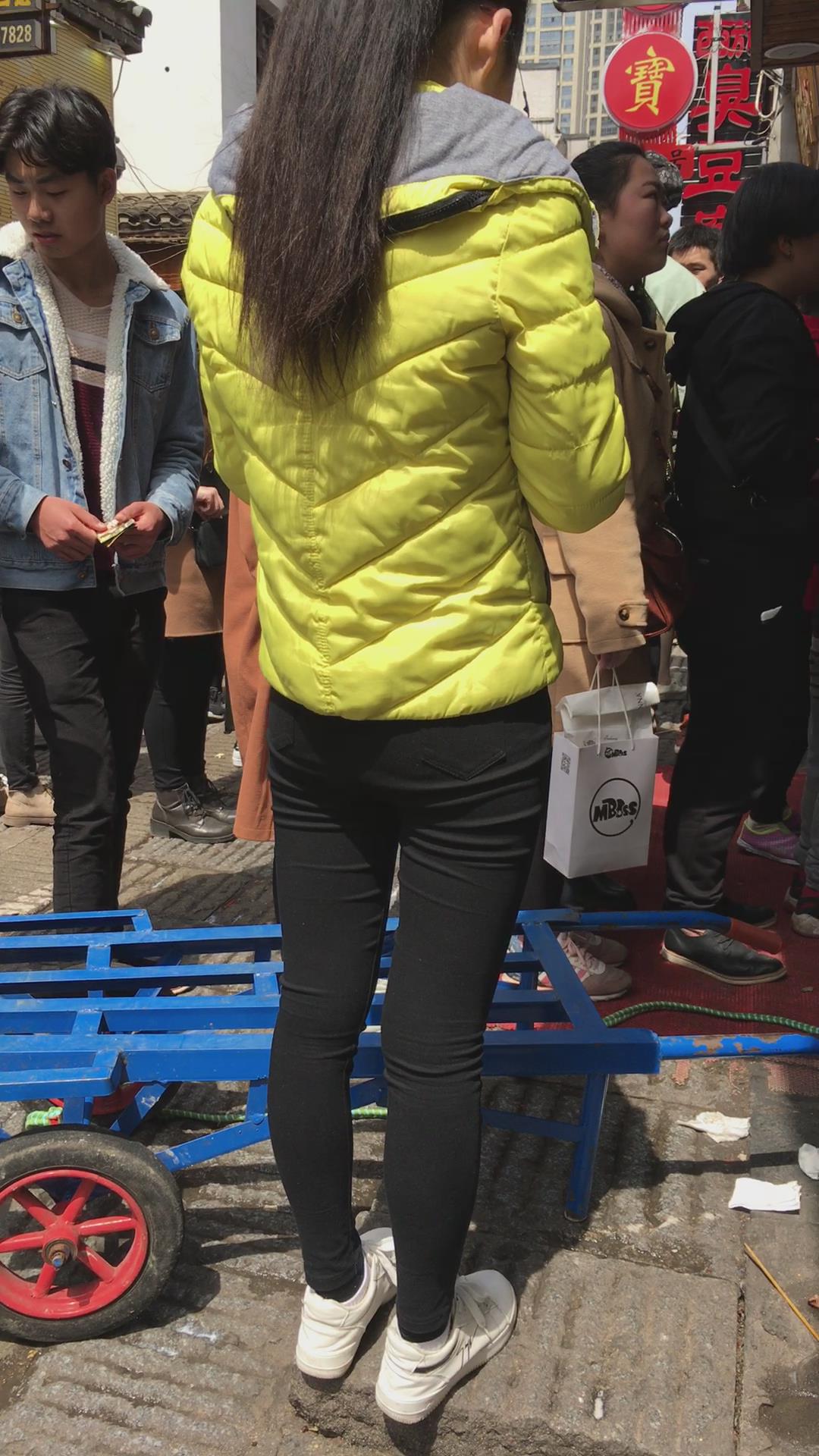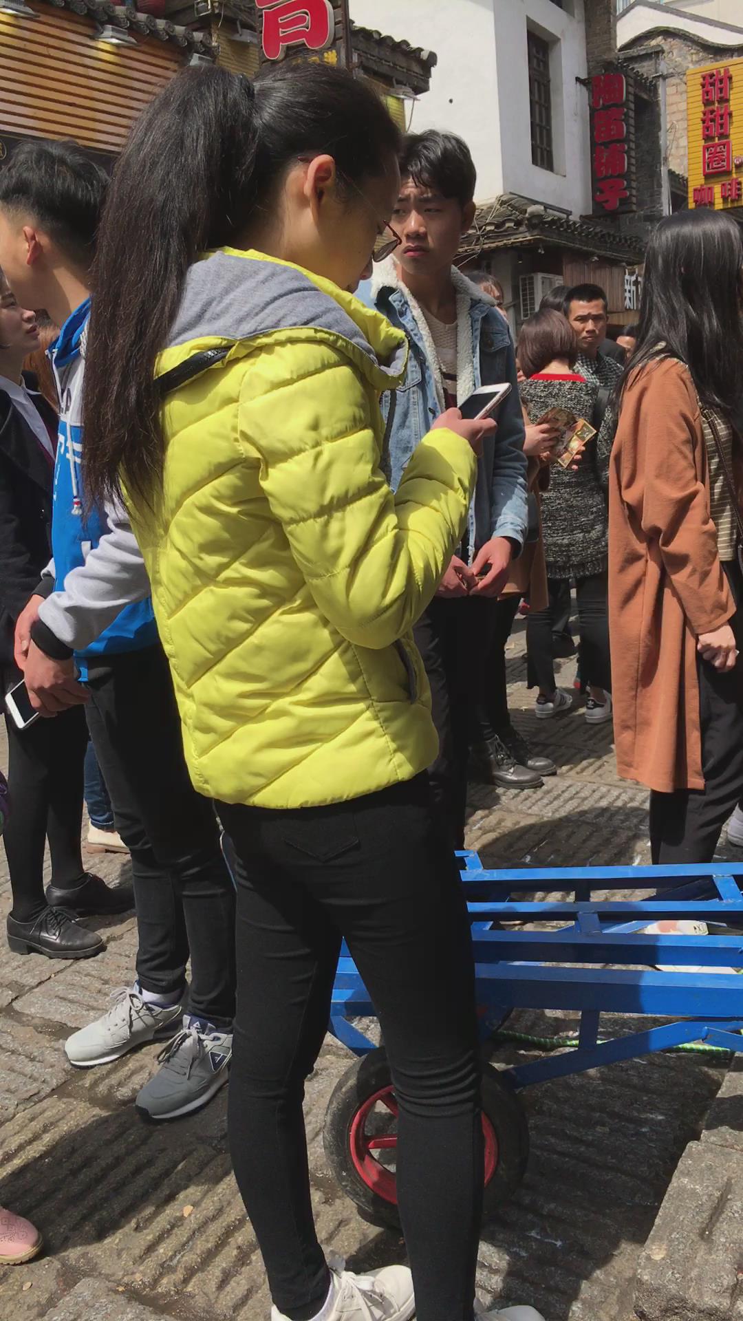羽绒服黑色紧身裤,清纯马尾辫女孩 编号5431 |