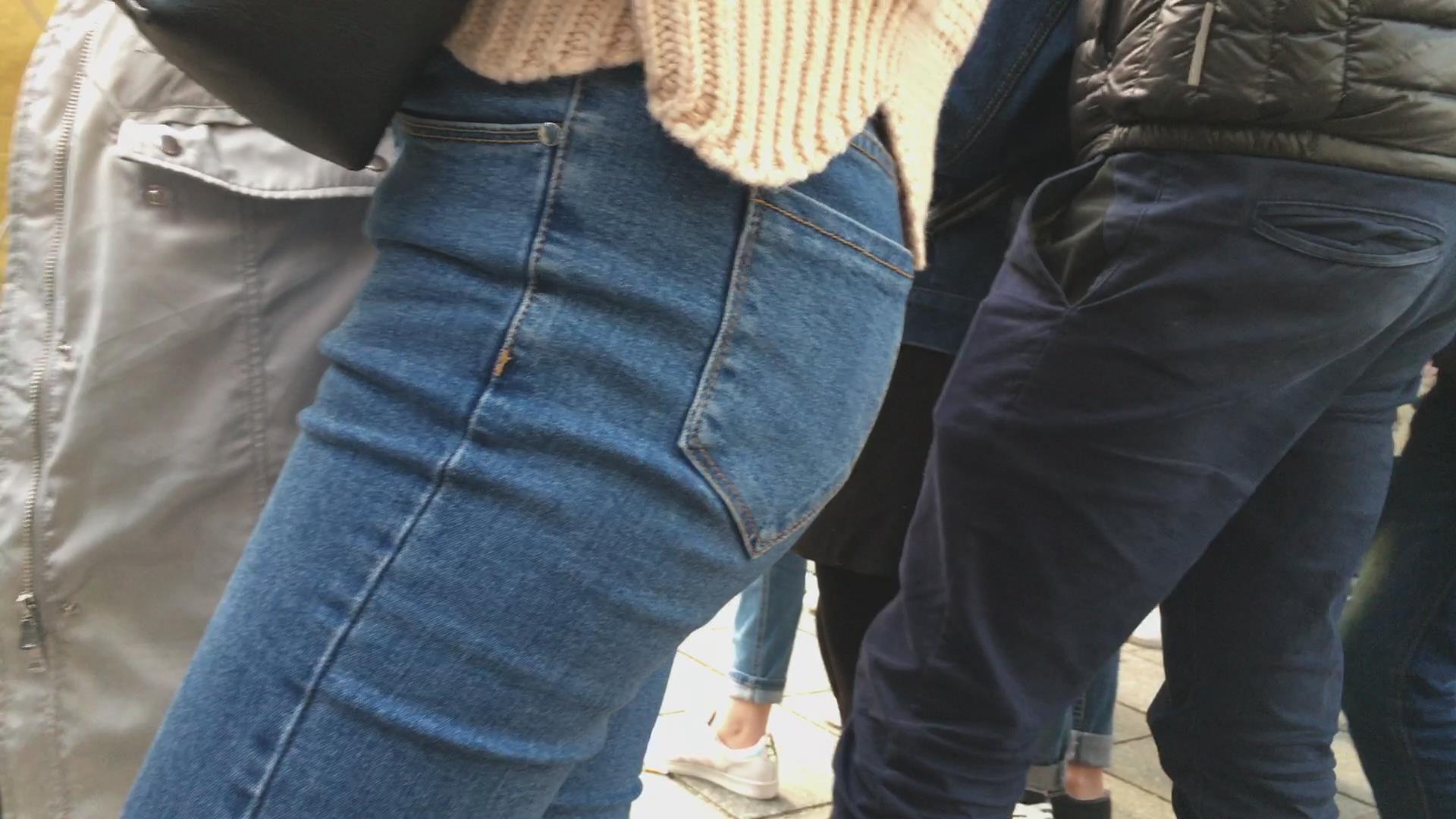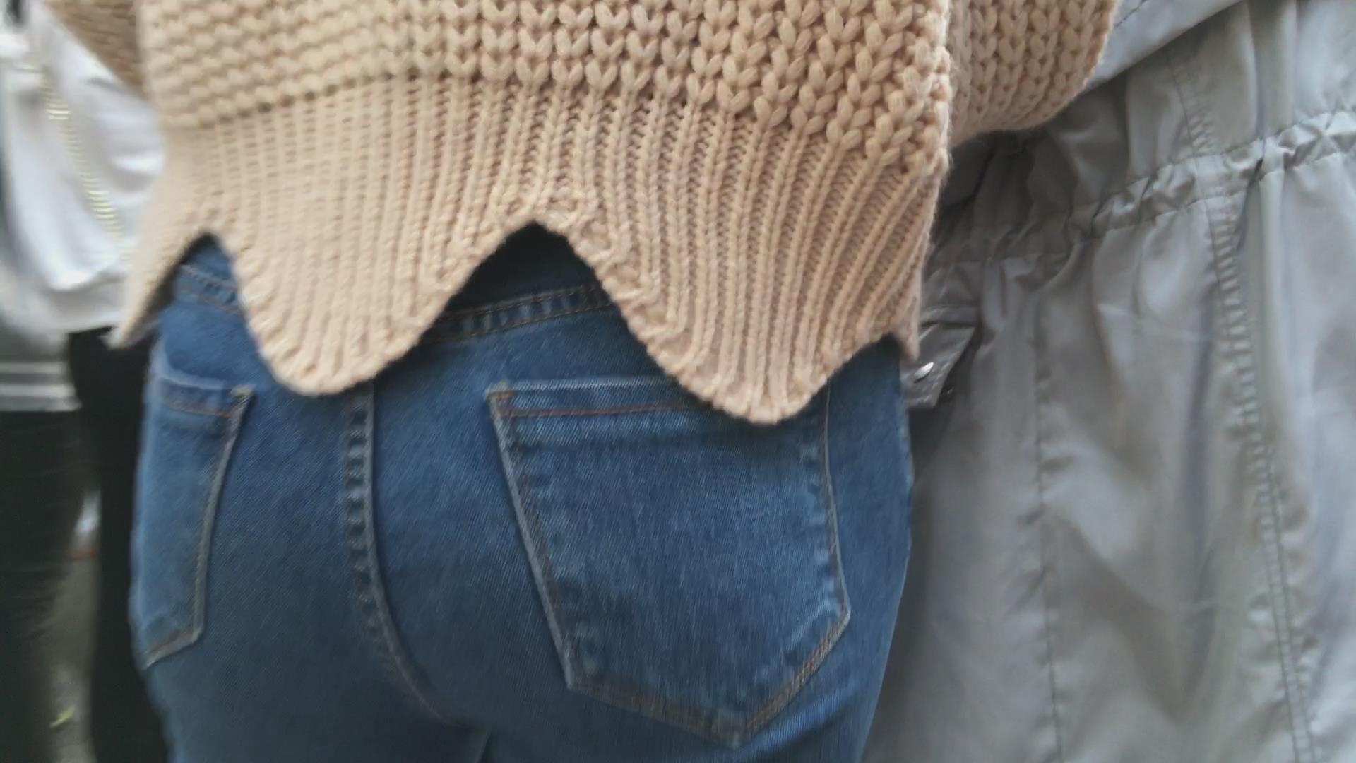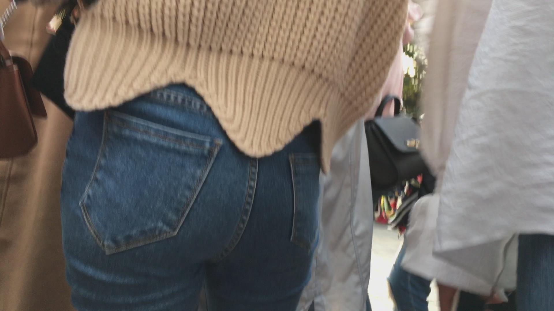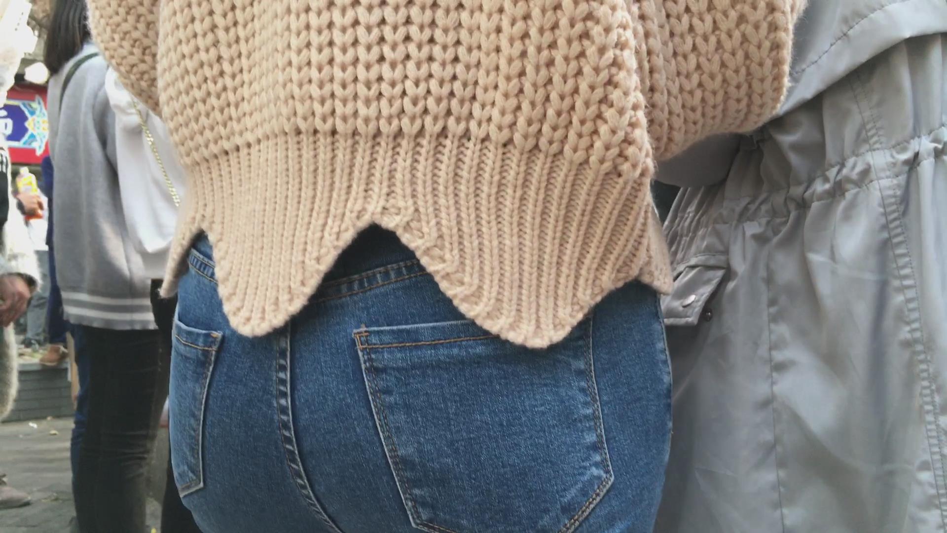 街拍圆润苹果臀紧身牛仔裤美眉 编号5432 |