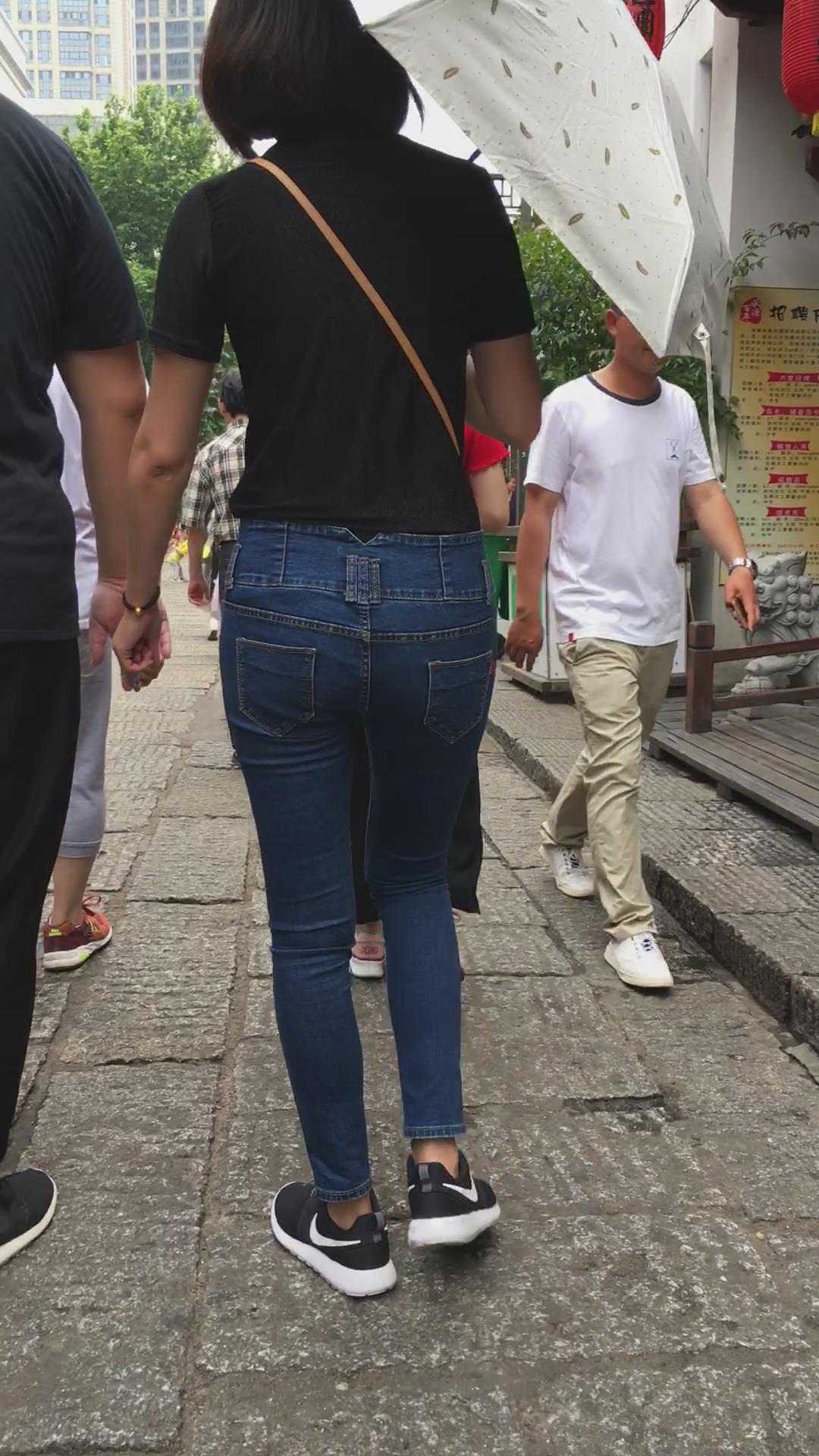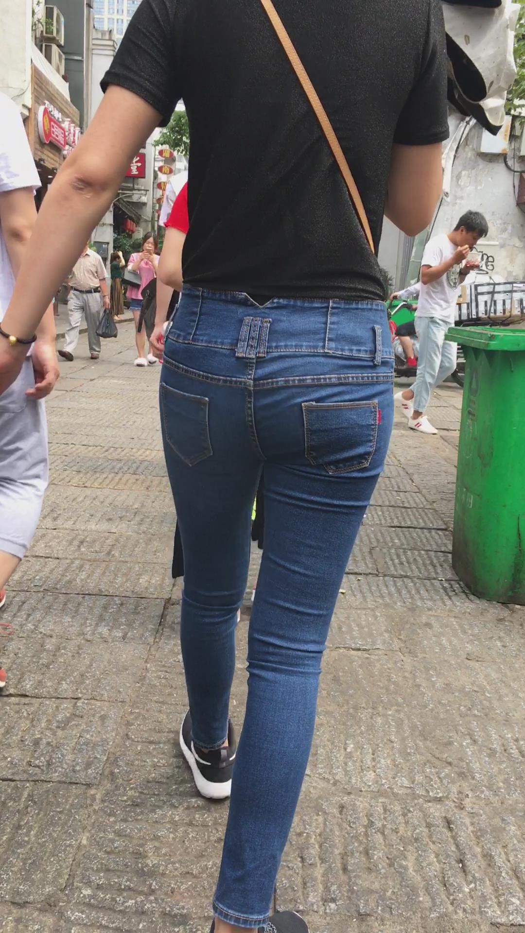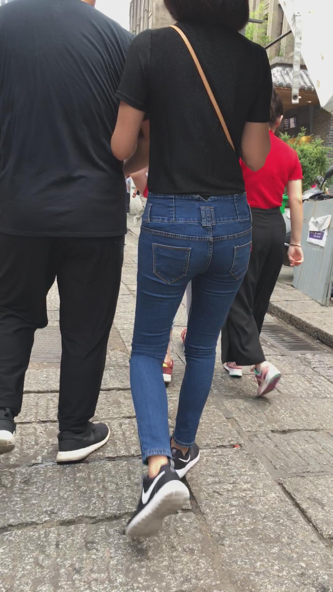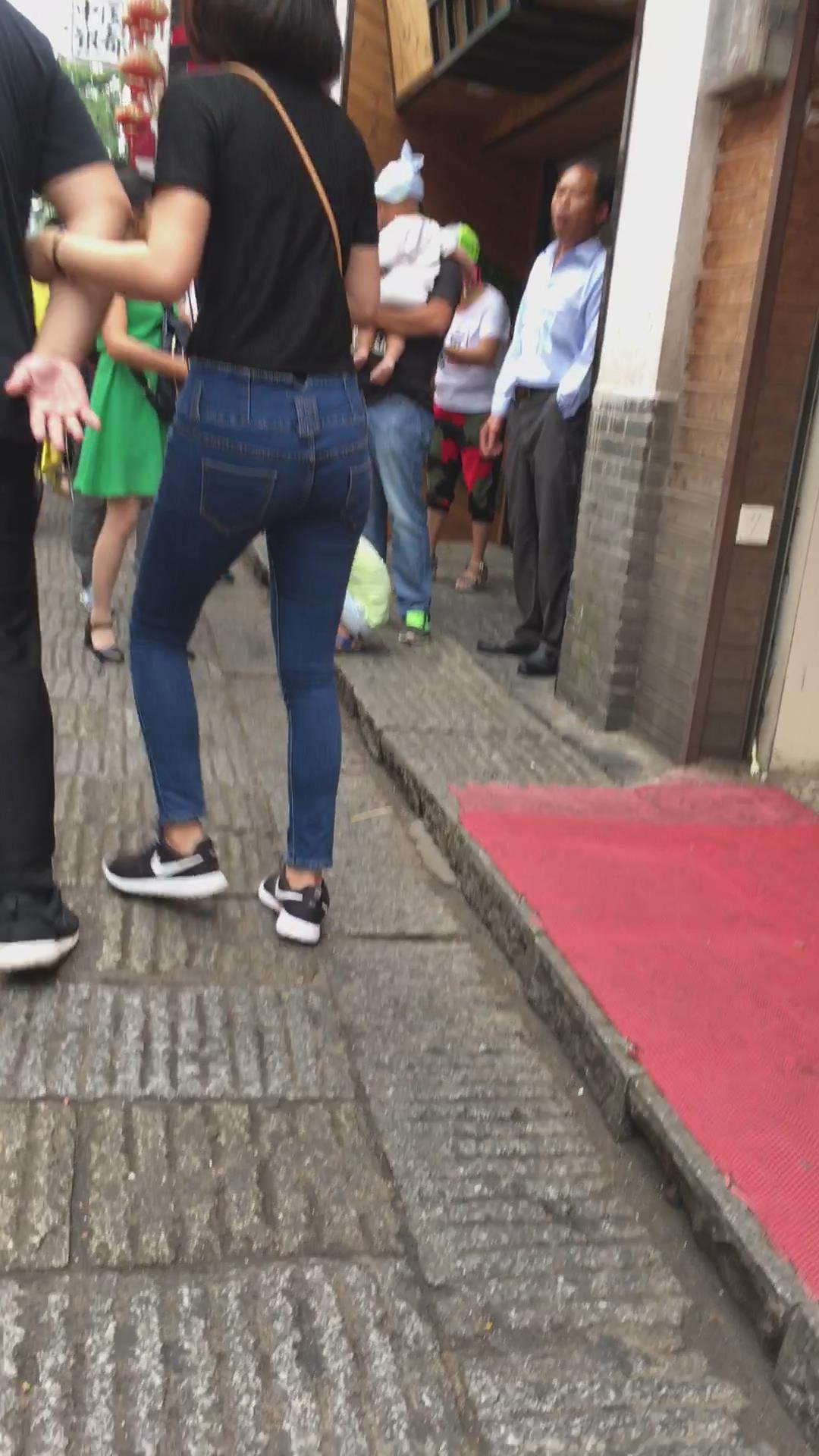 跟拍紧身蓝牛短发运动鞋美眉 编号5441 |
