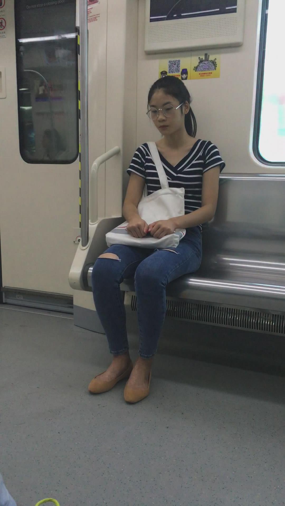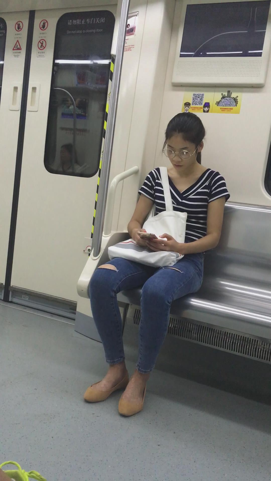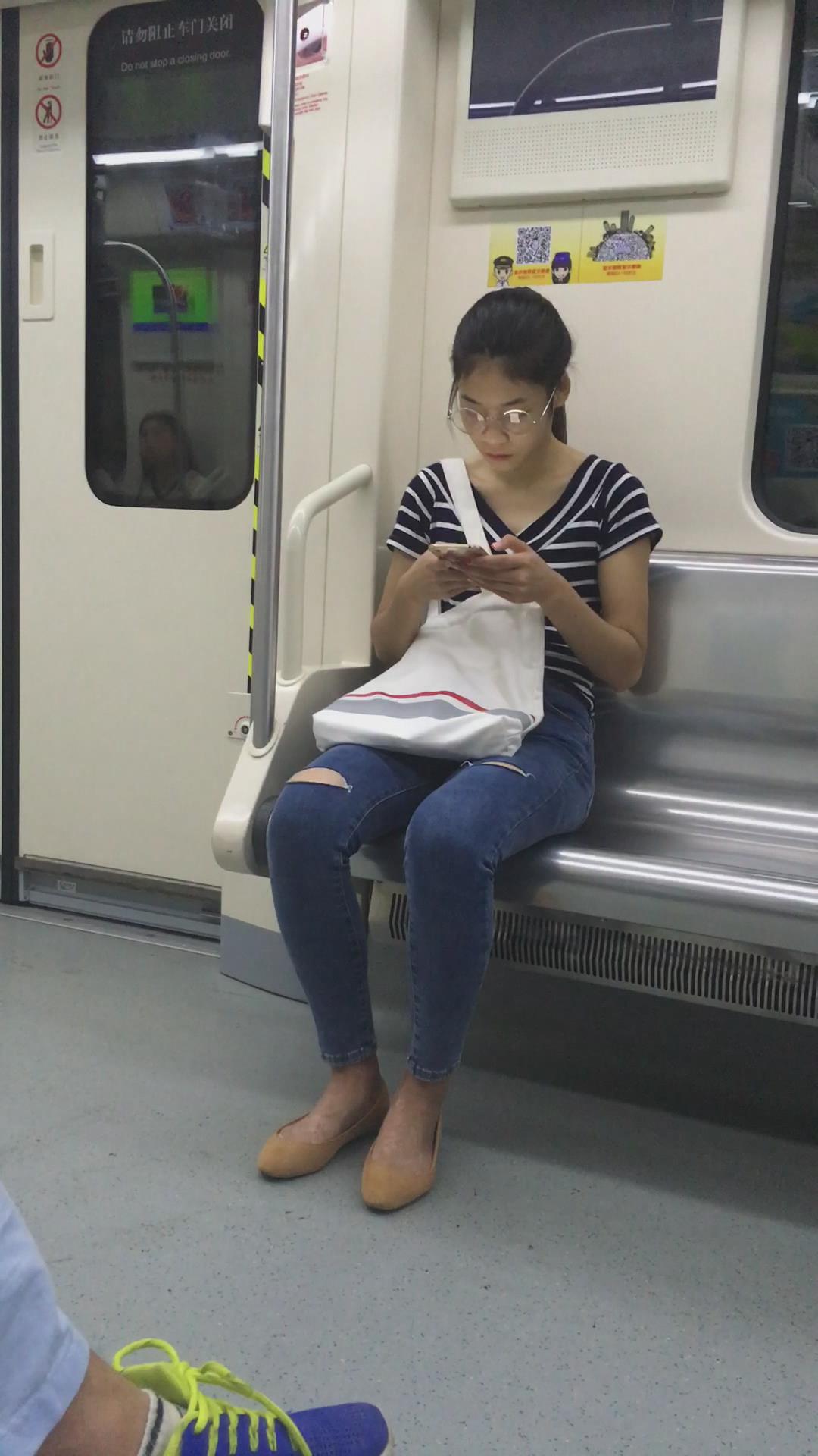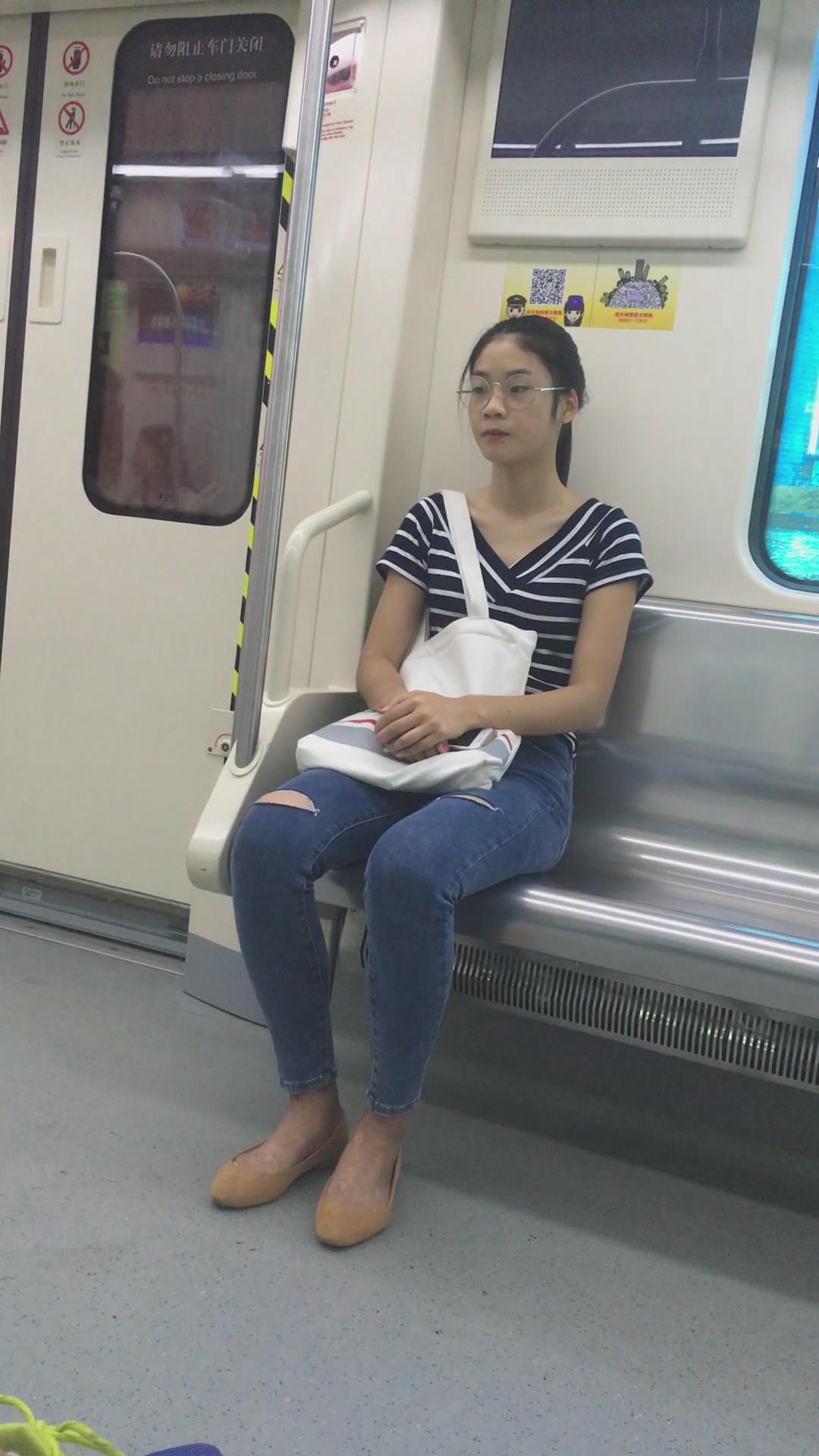 地铁上的眼镜蓝色牛仔裤美眉 编号5454 |
