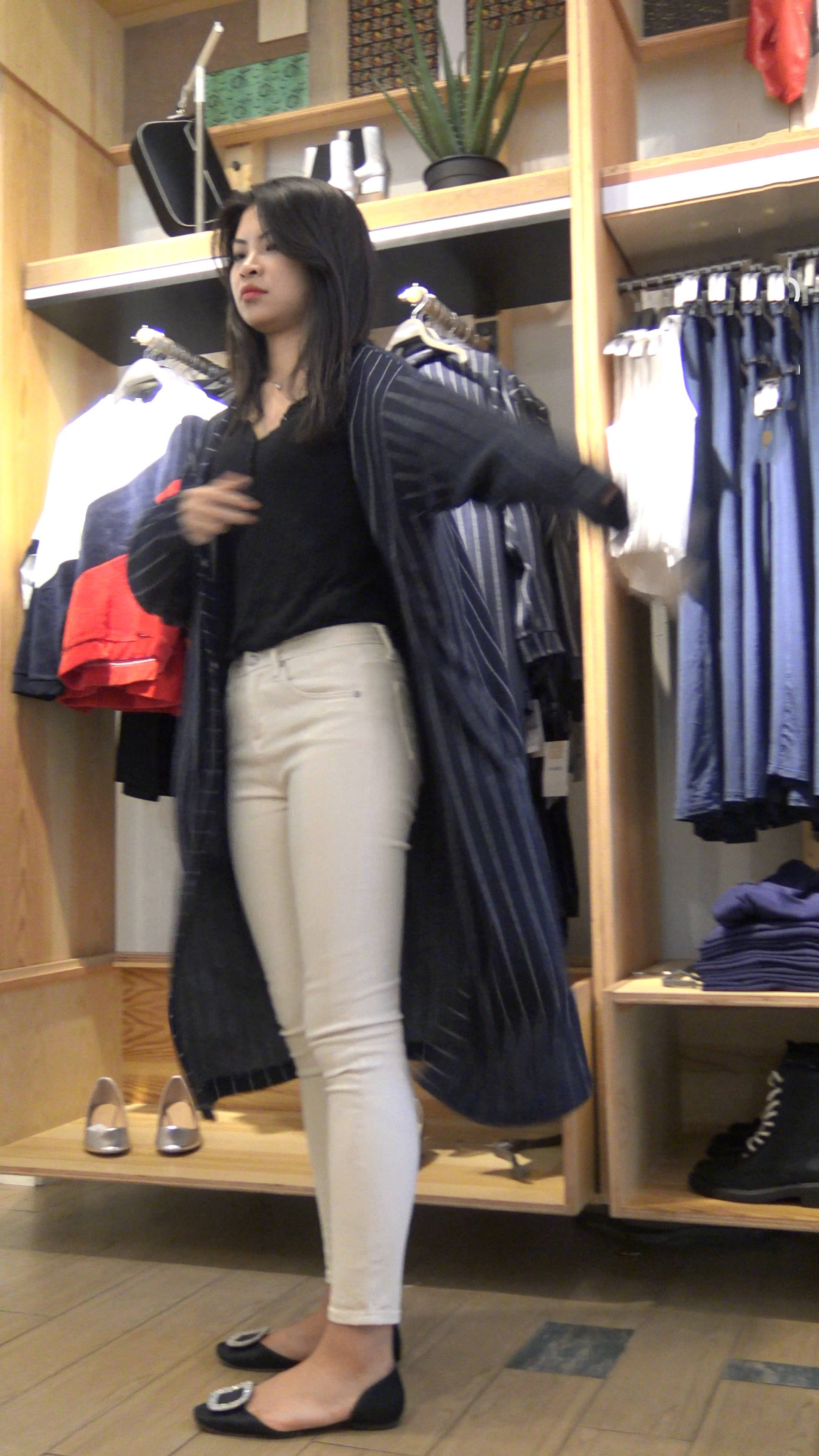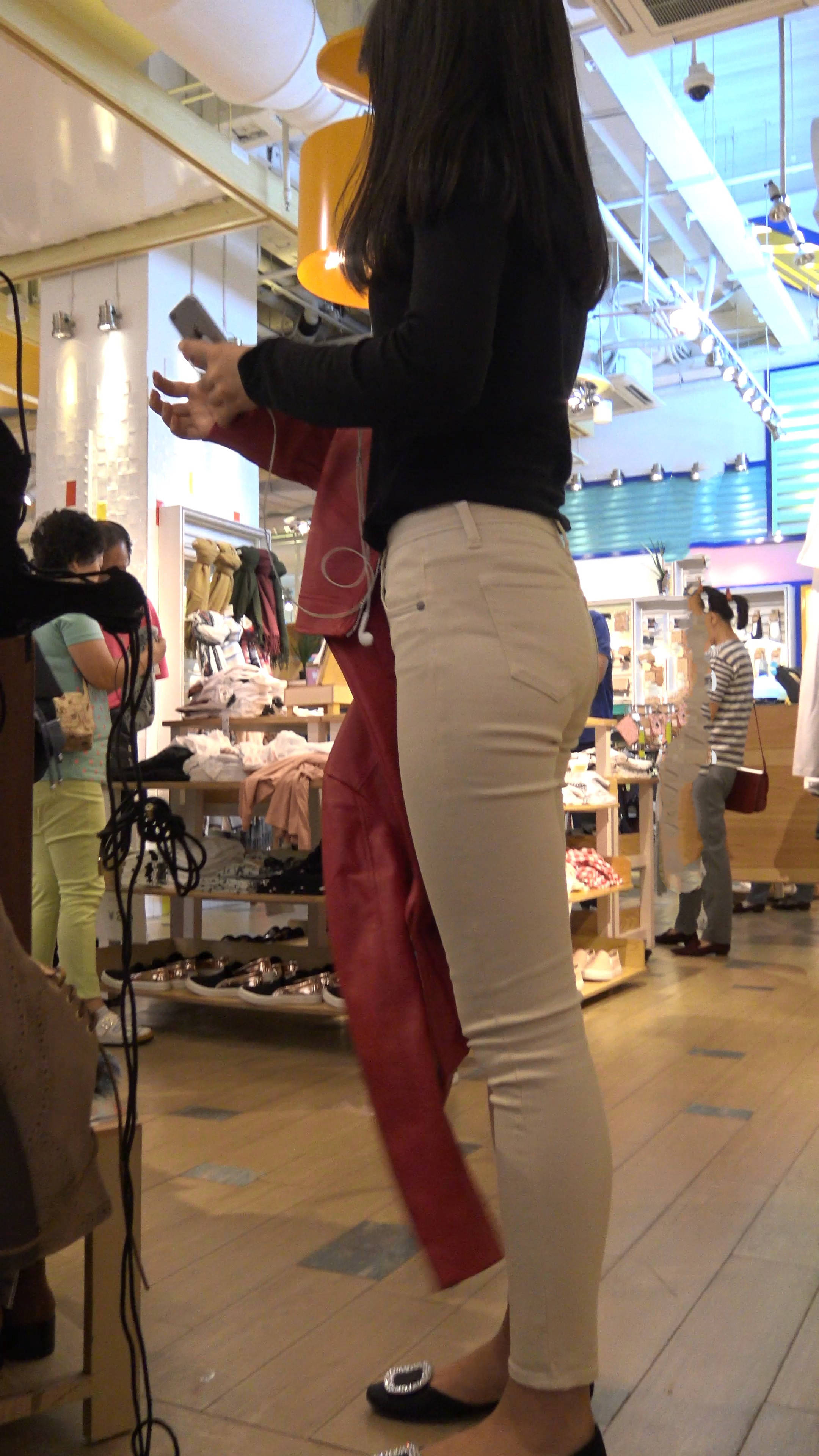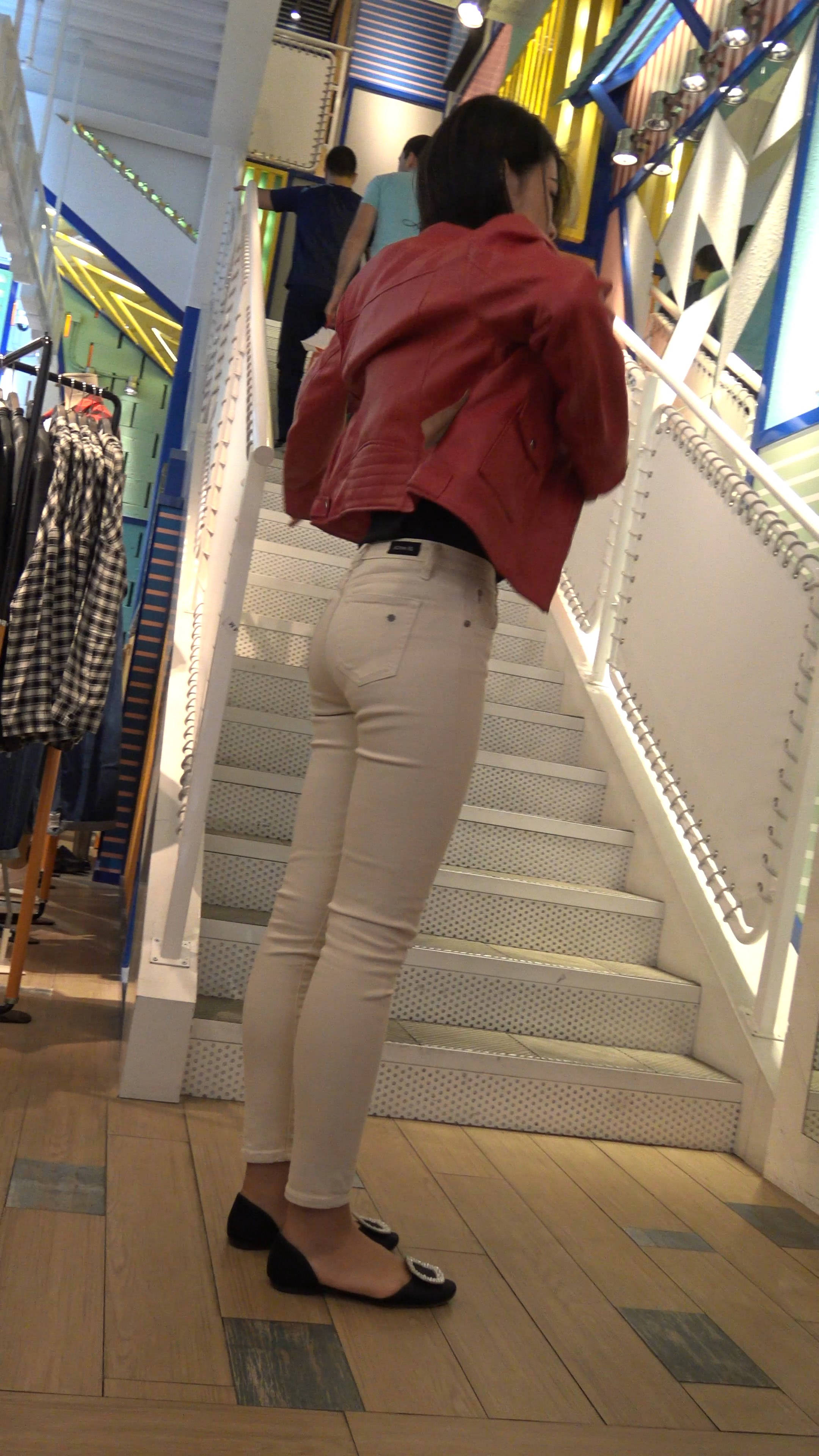 | 4k-服装店试装的紧身白裤平底鞋小姐姐 编号7949 |