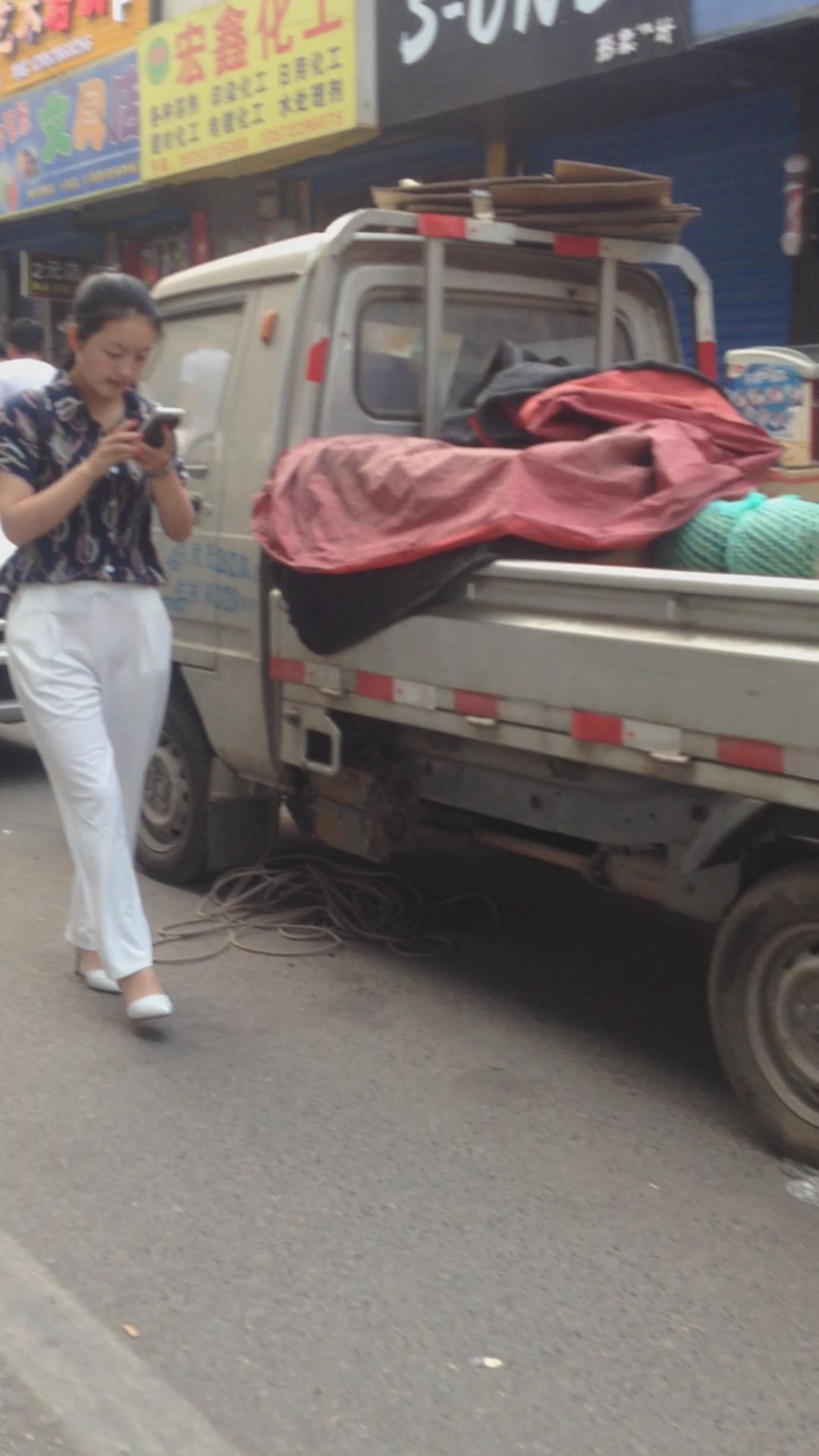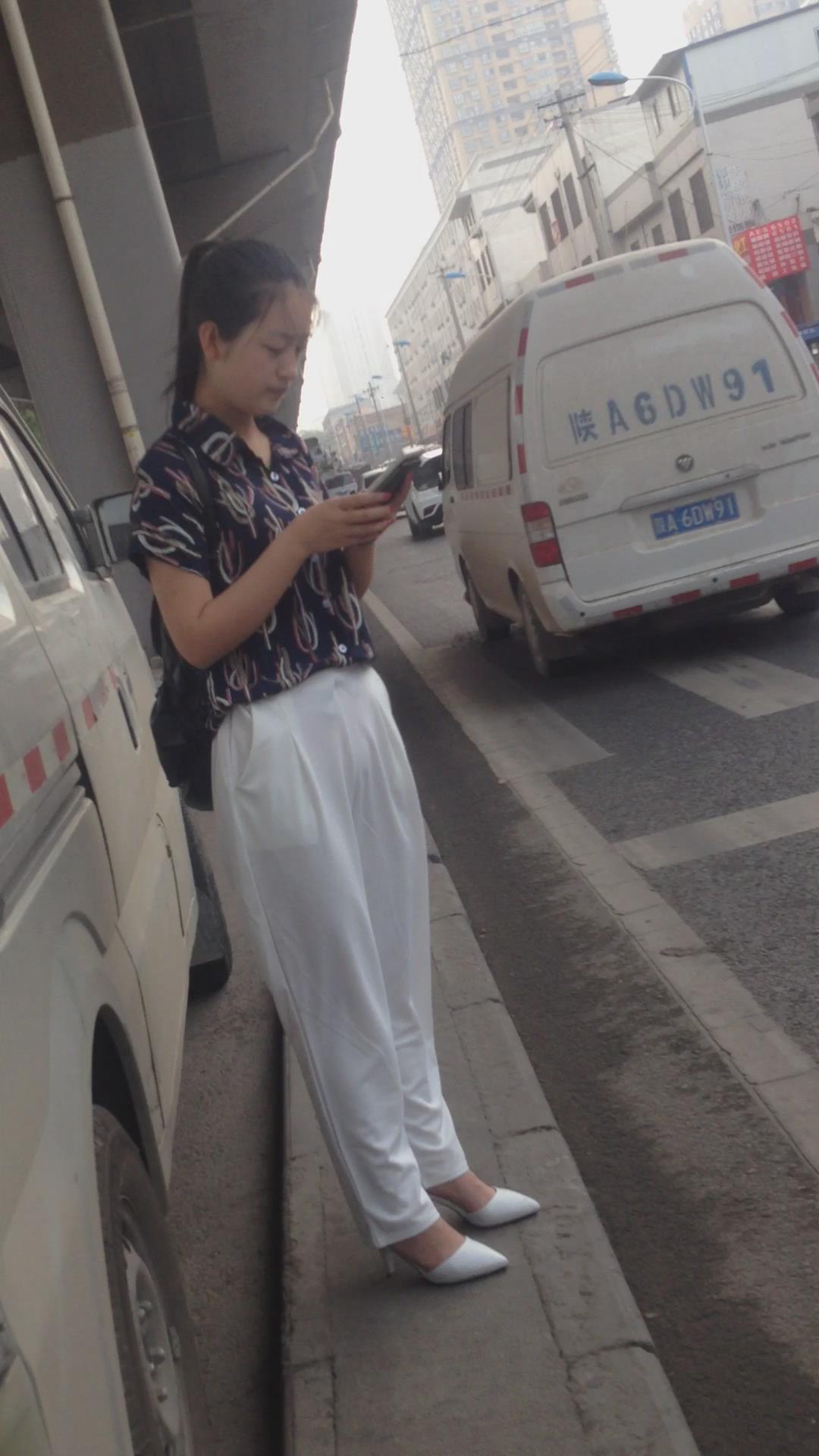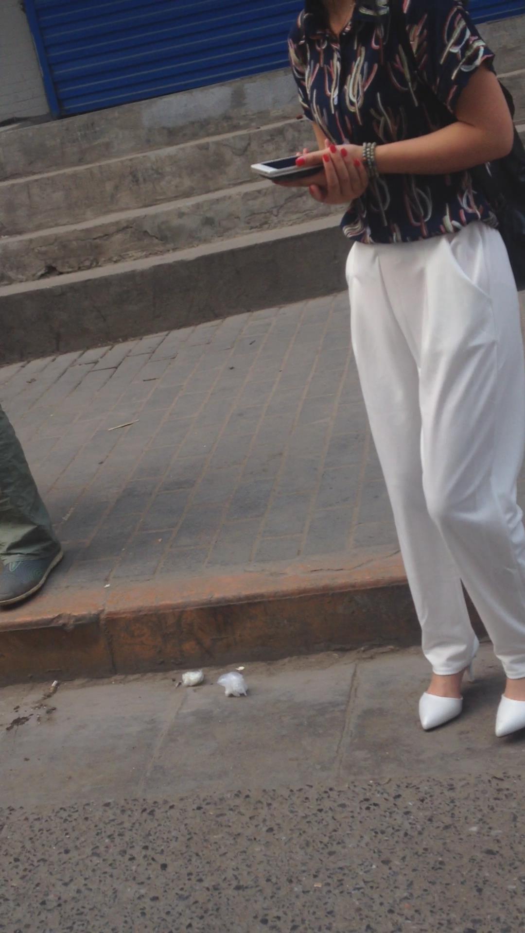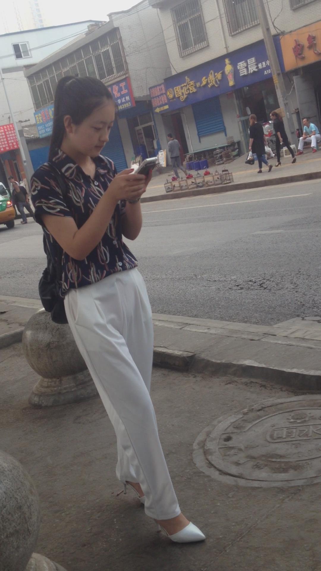 走路只顾着低头玩手机的气质白裤高跟鞋美女 编号5515 |